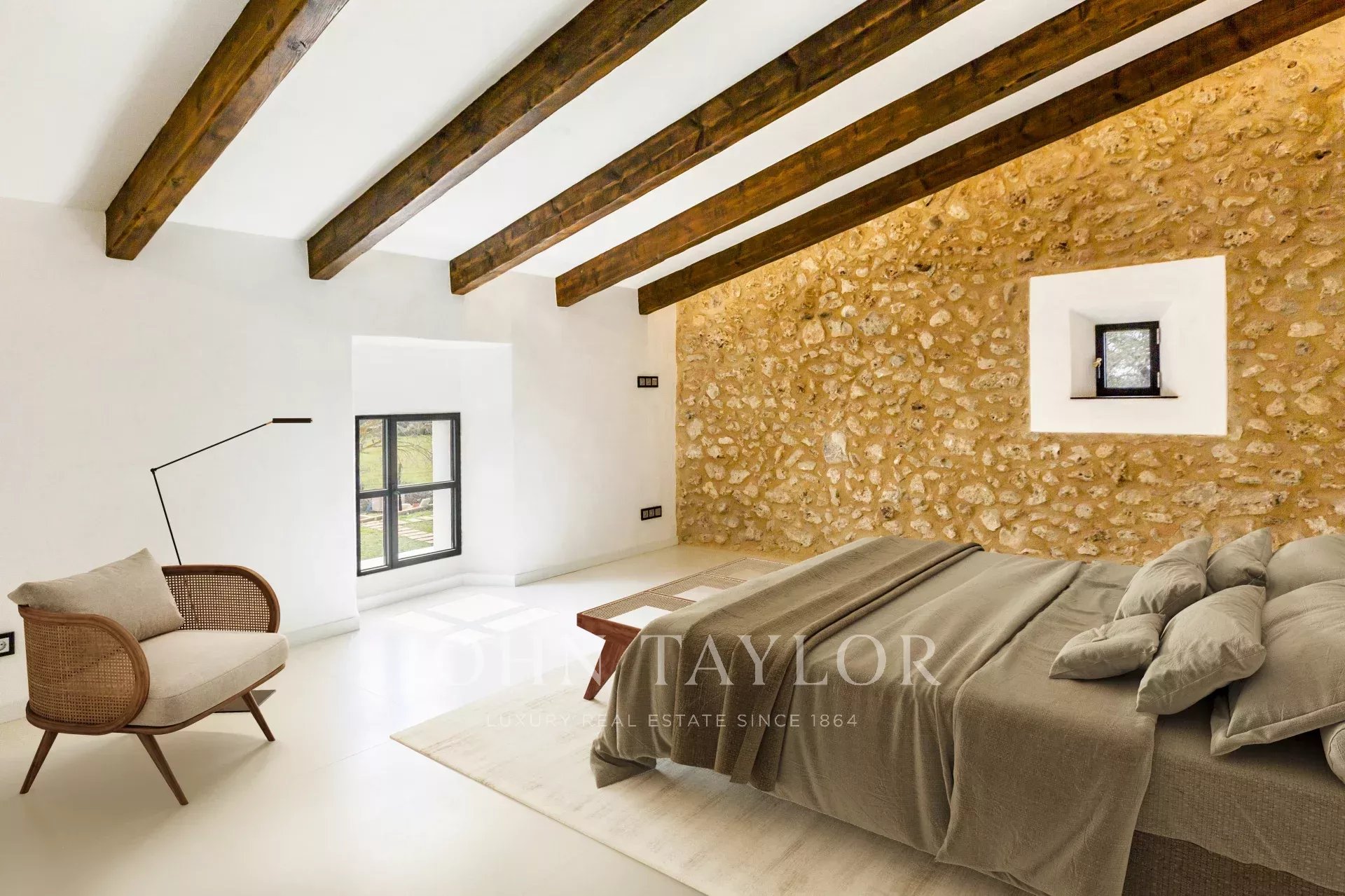 Esta impresionante propiedad ofrece historia, naturaleza, silencio y espacio nada más entrar. Se remonta al siglo XVI, la finca completamente reformada ofrece un salón/comedor de planta abierta que incluye una acogedora chimenea, una cocina hecha a medida y totalmente equipada con electrodomésticos Gaggenau. Toda la planta baja conduce al porche cubierto, a las terrazas abiertas y a la zona de jardín. La casa principal ofrece 4 dormitorios con baños en suite, posibilidad de añadir un quinto dormitorio si se requiere. Uno de los edificios exteriores incluye un spa finlandés y una sauna y el segundo edificio exterior es ideal para ser convertido según los deseos de los nuevos propietarios. El porche exterior cubierto incluye una zona de cocina exterior con horno de pizza. Las grandes terrazas abiertas y la piscina ofrecen vistas abiertas al campo.