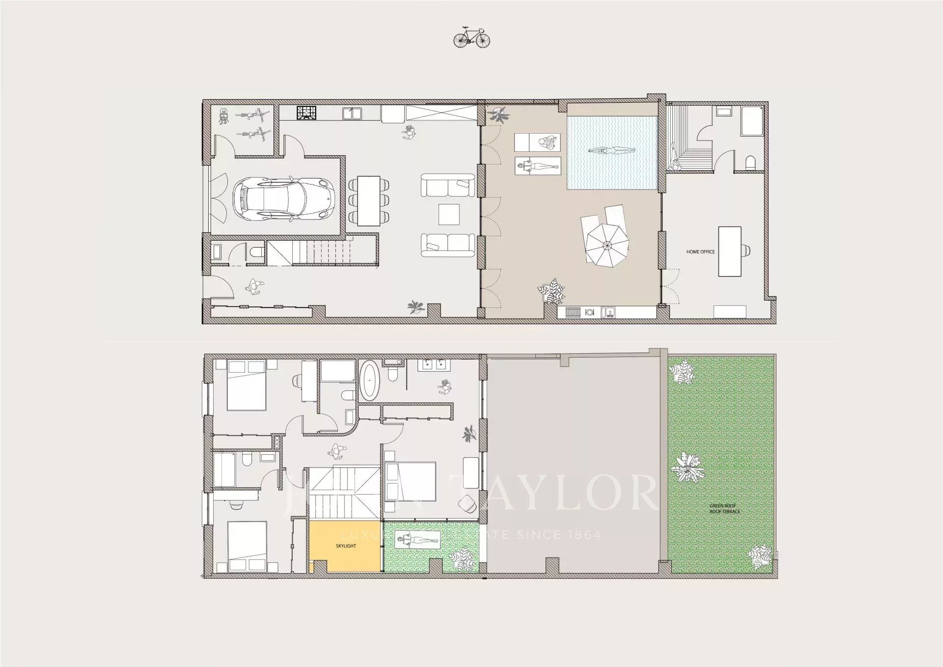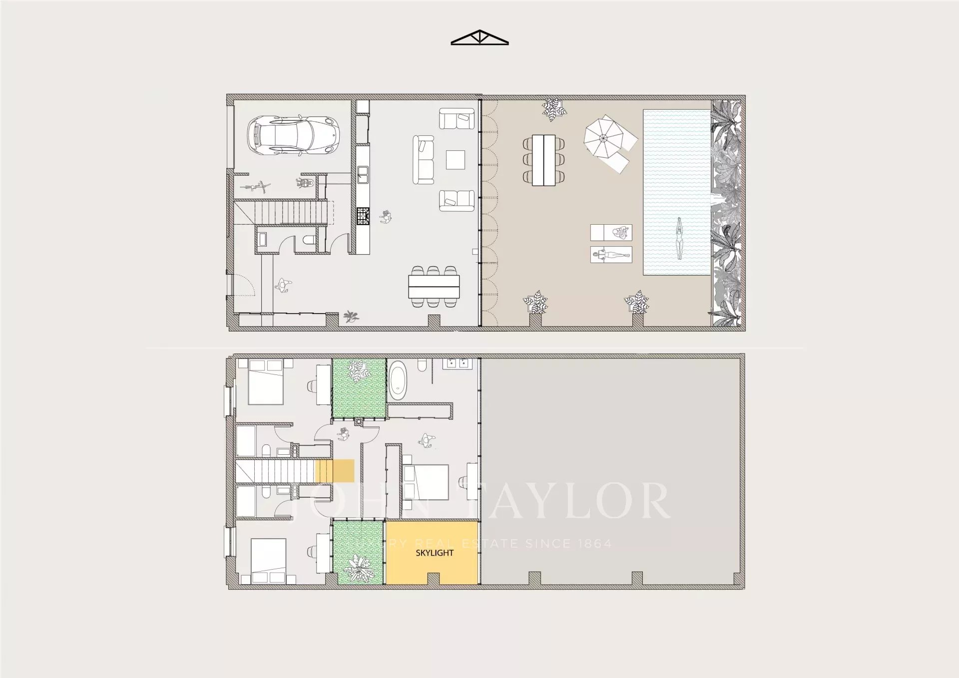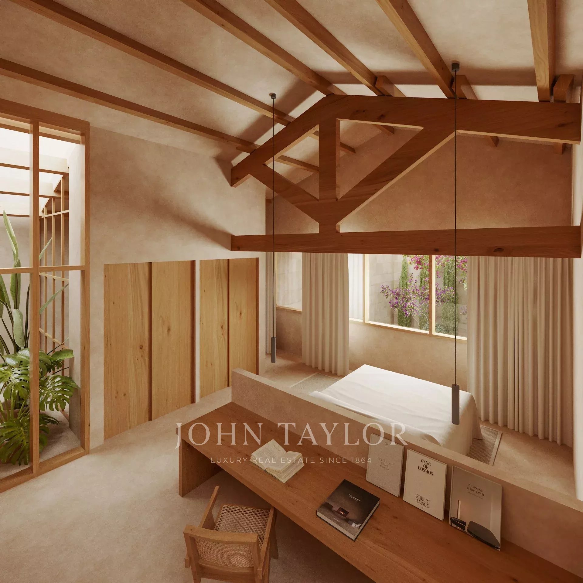 Loft: 259 m2 superficie interior, 121 m2 exterior, 3 suites, 4 baños, piscina, parking privado, jardín Oasis, Patio, techos de 7m de altura, gimnasio, sauna, y bodega.