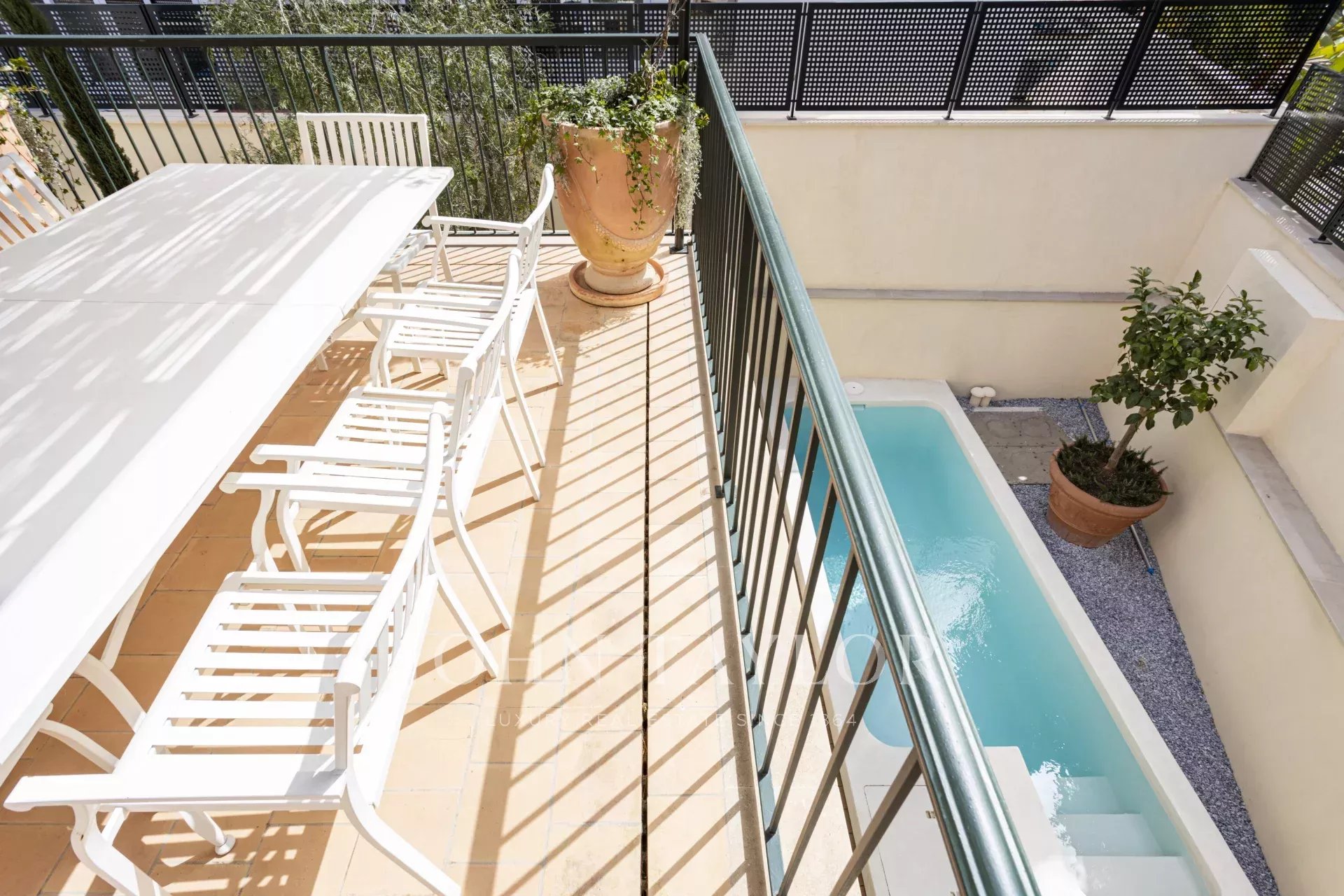 Esta espectacular casa en San Agustín, Palma de Mallorca, ha sido completamente reformada con los más altos estándares de calidad. Situada junto al Hotel Maricel, una de las ubicaciones más exclusivas de la ciudad, esta propiedad ofrece una combinación perfecta de lujo, confort y tecnología avanzada. Con 297 m² de espacio habitable completamente renovado, la casa cuenta con 2 habitaciones dobles y 1 habitación individual, todas con acabados de lujo. Además, dispone de dos amplios y luminosos salones diseñados para el confort y la elegancia, uno de ellos con la cocina abierta integrada. El gran garaje de 54 m² se puede utilizado como tal o como gimnasio, spa, sala de cine o cualquier espacio adicional según sus necesidades porque cuenta con una entrada adicional para coche y aparcamiento privado. La propiedad también cuenta con dos terrazas exteriores y una en la azotea, esta última con vistas parciales al mar, así como una preciosa piscina salina de microcemento en la planta baja, que ofrece un oasis privado. La casa ha sido diseñada utilizando materiales naturales de alta gama como madera de alerce e iroco, mármol perlino y piedra de Santanyi y Binissalem. Los alicatados de los baños, pintados a mano en Italia, junto con el uso de microcemento, aportan un toque de sofisticación y estilo. En cuanto a confort y tecnología, la vivienda dispone de un sistema de suelo radiante y aire acondicionado por conductos para garantizar una temperatura perfecta en cualquier época del año. La eficiencia energética está optimizada con ACS por bomba de calor, descalcificador y grupo de presión propio. Además, la propiedad incluye un avanzado sistema de domótica para la iluminación y la climatización, así como preinstalación de alarma, cargador eléctrico y riego automático para mantener el jardín perfectamente cuidado.