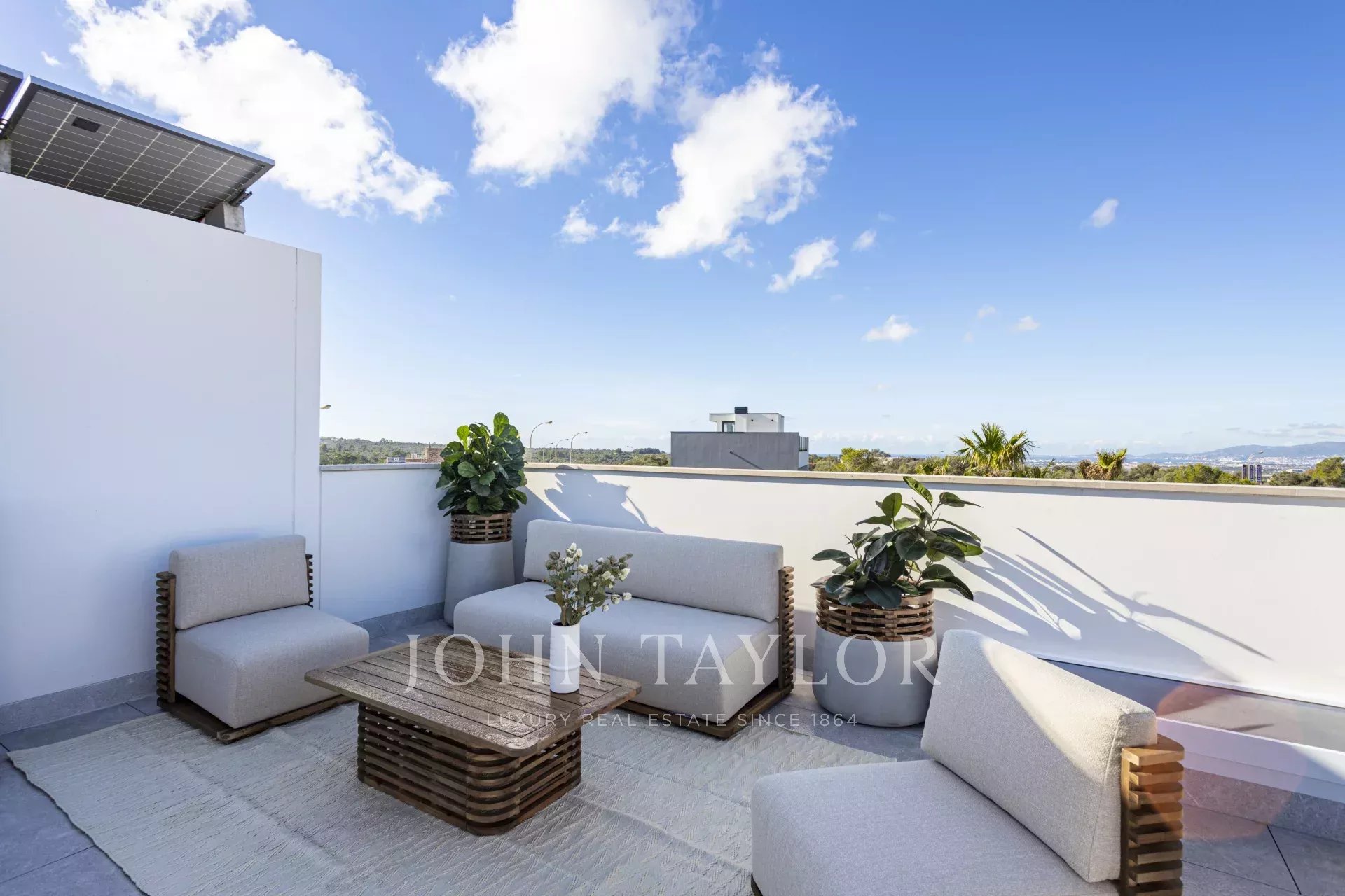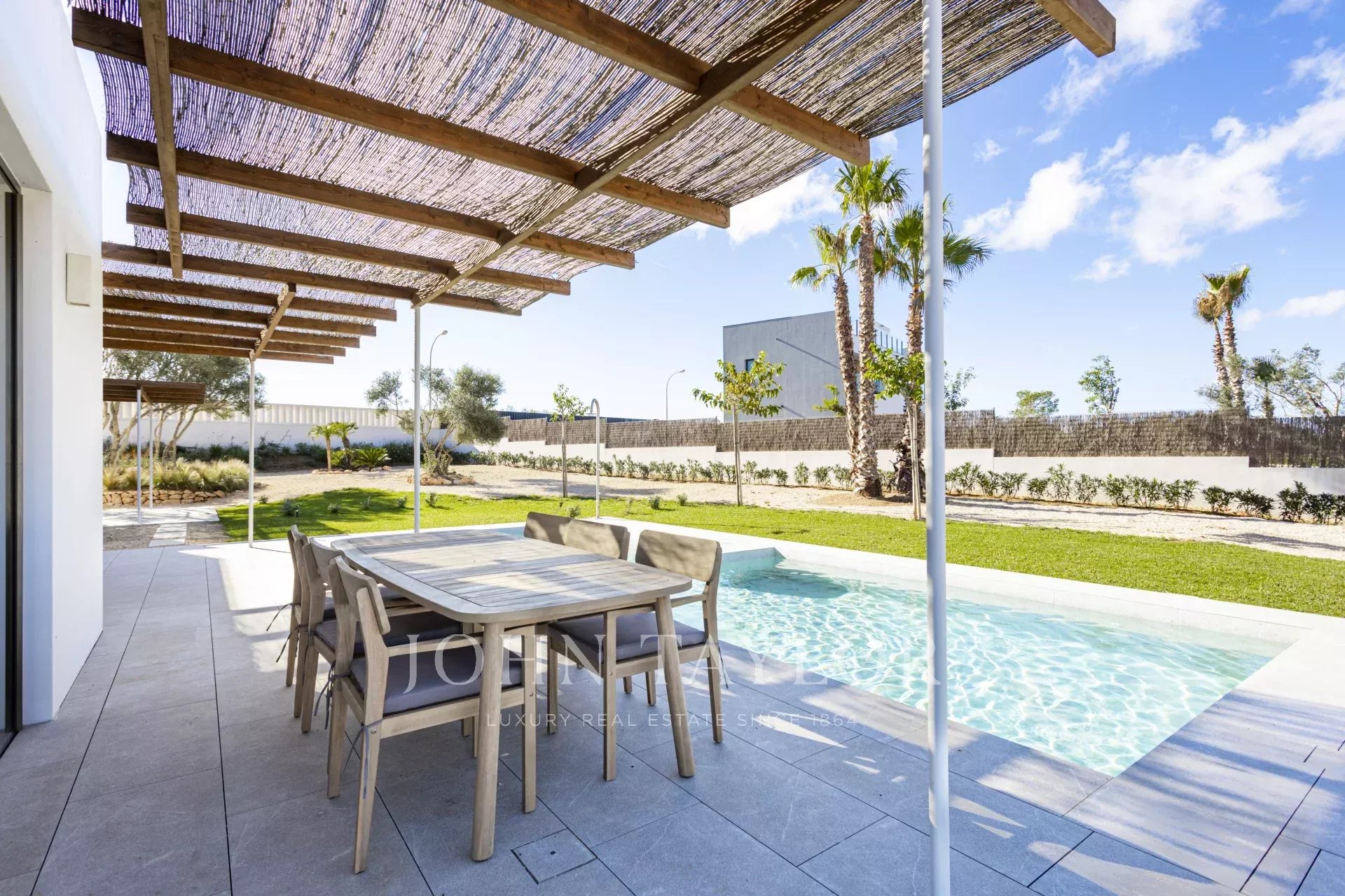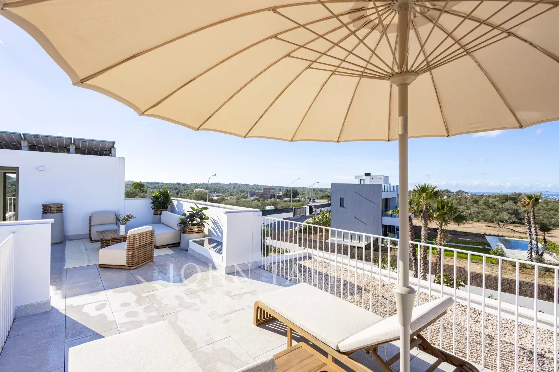 Descubra el lujo moderno en Son Gual, Mallorca, con esta impresionante villa de nueva construcción. Ubicada en una espaciosa parcela de 2001m², esta villa de 396m² cuenta con 4 lujosos dormitorios, 3 elegantes baños y un amplio salón-comedor de planta abierta con cocina integrada. Disfrute de la vida interior-exterior sin fisuras con 121m² de terrazas, una piscina privada y una ducha al aire libre, perfecto para disfrutar del hermoso clima de Mallorca.