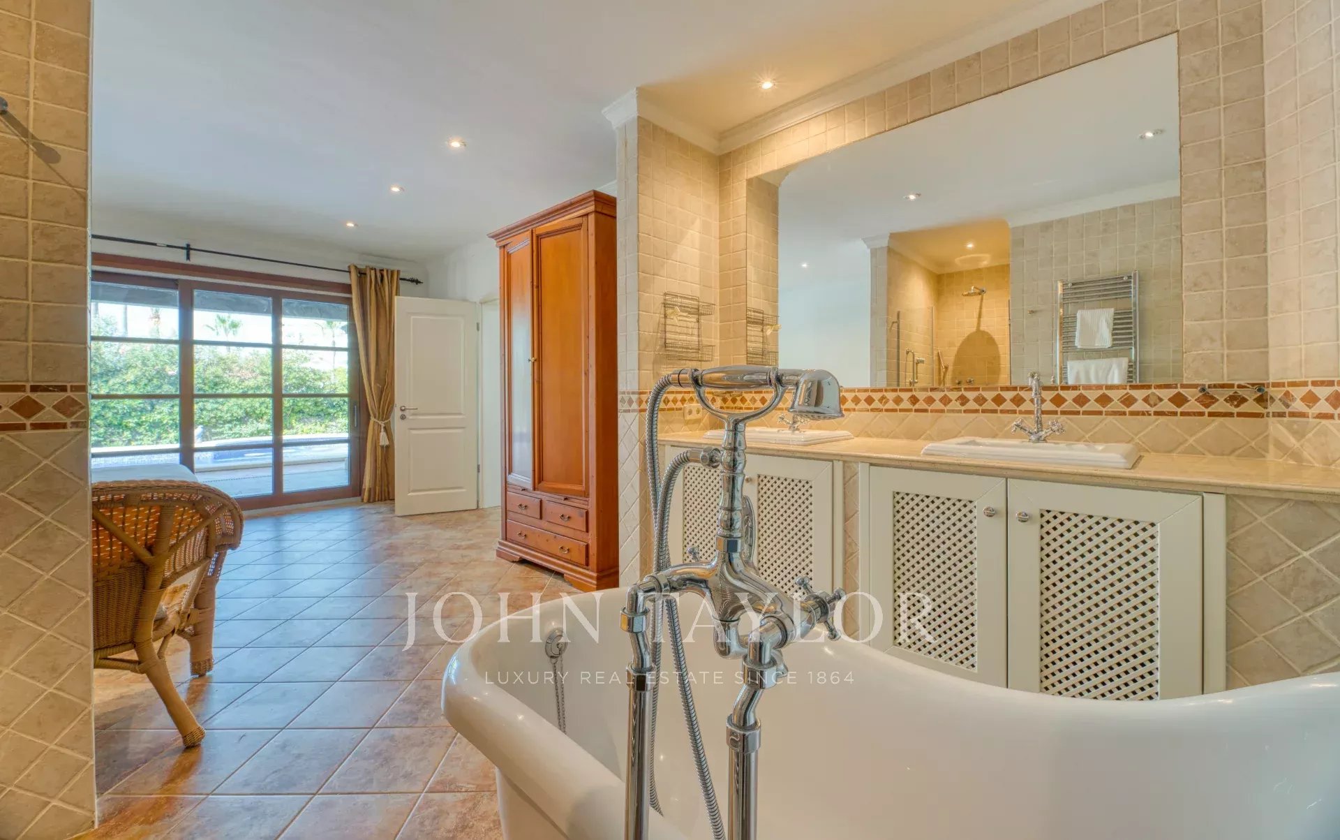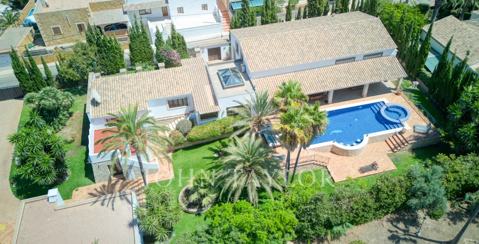El exterior es igual de impresionante, con un amplio jardín llano dotado de sistema de riego, terrazas soleadas y una piscina que invita a disfrutar del clima mediterráneo.
