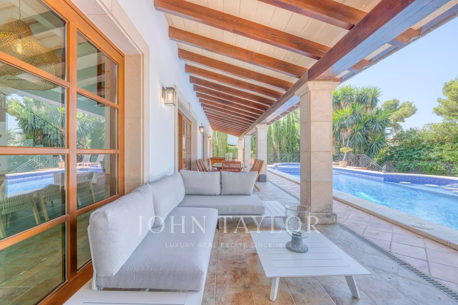 Les ofrecemos esta impresionante villa de 751 m² en una zona residencial tranquila cerca de la playa en Palmanova. Es la propiedad ideal para una familia grande con niños en edad escolar que busca espacio y comodidad a poca distancia de colegios. La propiedad cuenta con un amplio salón con techos altos, un gran comedor y una cocina completamente equipada. Además ofrece seis amplios dormitorios, perfectos para hospedar a toda la familia y recibir invitados o para instalar incluso un despacho para trabajar desde casa.