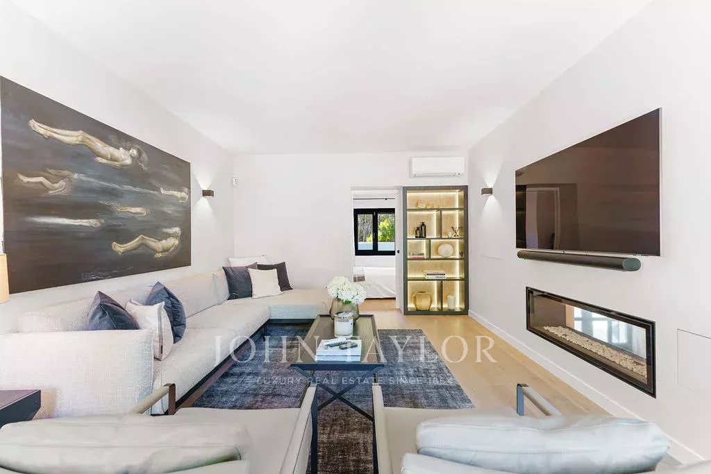 Esta residencia por excelencia es la encarnación del lujo y la vida moderna, con un estilo de diseño excepcional que combina a la perfección elegancia y confort. Los interiores de la villa emiten un ambiente cálido y acogedor, adornado con mobiliario de última generación e impecables acabados de madera. La abundante luz natural que se filtra por los amplios ventanales realza el ambiente relajado, convirtiéndolo en el refugio perfecto. La finca es una rara joya que combina armoniosamente el lujo moderno con un sereno entorno mallorquín. Su ubicación exclusiva y diseño distintivo la distinguen como una oportunidad excepcional para experimentar el epítome de la elegancia y sofisticación mallorquinas. Entre las características más cautivadoras de la villa se encuentran sus espacios exteriores privados y tranquilos. Los exuberantes jardines y los serenos alrededores, cuidadosamente diseñados para ofrecer el máximo aislamiento, invitan a los residentes a relajarse y escapar del ajetreo y el bullicio de la vida cotidiana. Un oasis de calma aguarda en la zona separada de la piscina, que ofrece impresionantes vistas de las majestuosas montañas de Cala Moragues. En el interior, "Serenity Palms" ofrece cuatro lujosos dormitorios, cada uno con baño privado para mayor comodidad y privacidad. El dormitorio principal está oculto dentro de una encantadora torre mallorquina redonda, que se erige como un elemento notable y distintivo de esta propiedad, ¡evocando un encanto encantador! Meticulosamente elaborada con un enfoque de diseño, la villa utiliza sólo los mejores materiales, creando un ambiente de sofisticación y refinamiento que eleva la experiencia de vida a niveles extraordinarios. Fotografo: Dream Destination Films