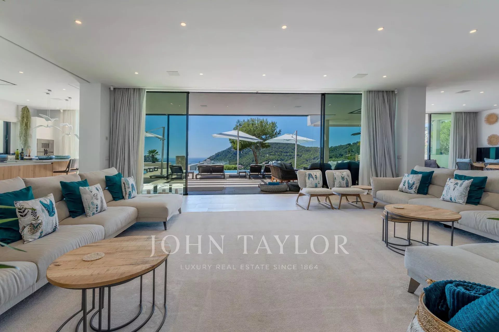 La propiedad cuenta con una excepcional residencia principal con impresionantes vistas al puerto y al mar, complementada por una casa de invitados integrada conectada por un puente que cuenta con un cine, sala de juegos y dos amplios dormitorios. La casa principal tiene 1.079 metros cuadrados construidos y la casa de invitados conectada tiene 301 metros cuadrados construidos. La villa cuenta con 6 dormitorios y la casa de invitados con 2 dormitorios.