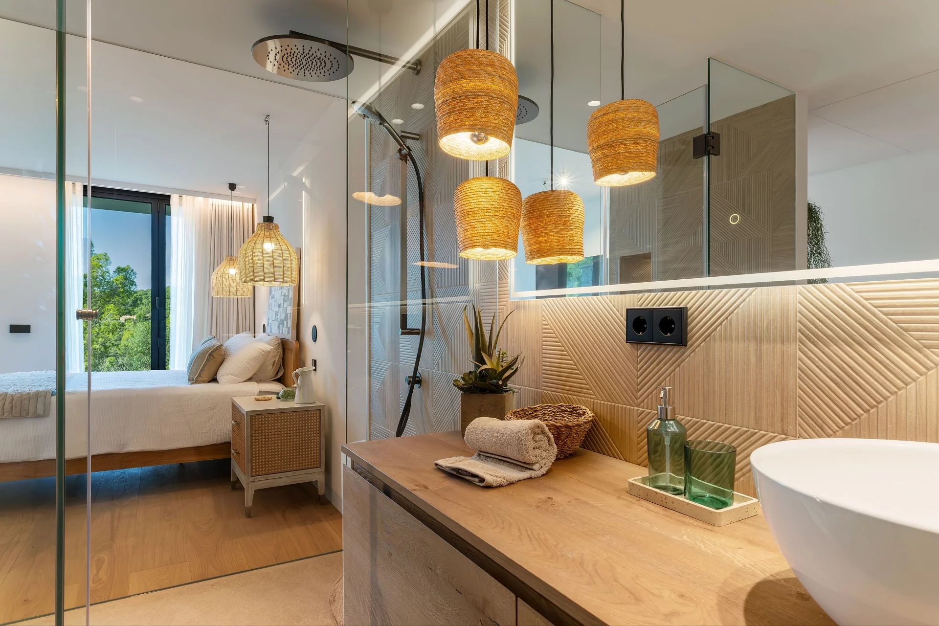 El interior, diseñado por un reconocido interiorista local, cuenta con cuatro amplios dormitorios en suite, algunos de los cuales regalan vistas impresionantes tanto al mar como a las montañas, garantizando privacidad y tranquilidad. El elegante salón familiar, con su ambiente cálido y vistas panorámicas, se convierte en el escenario ideal para reuniones íntimas o celebraciones memorables, mientras que la cocina de última generación, equipada con electrodomésticos premium y una gran isla central, invita a los amantes de la gastronomía a explorar nuevos horizontes culinarios.