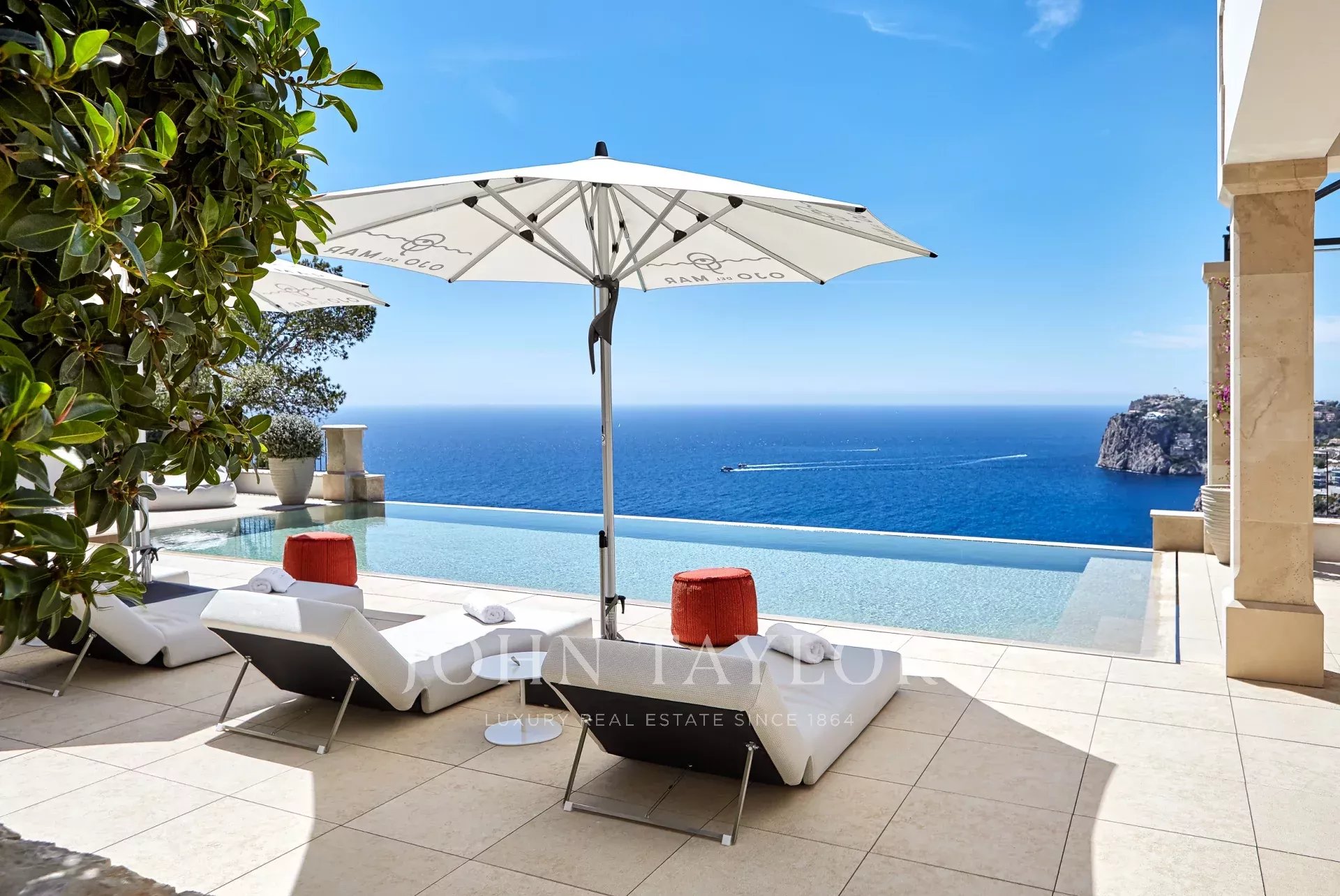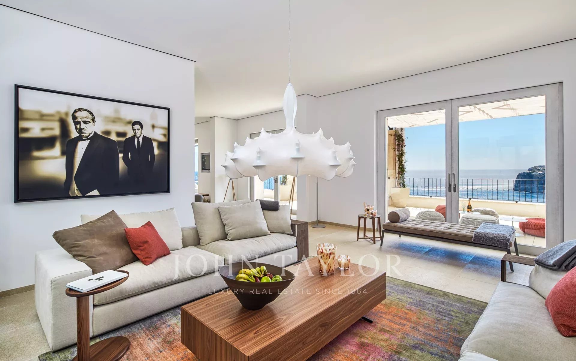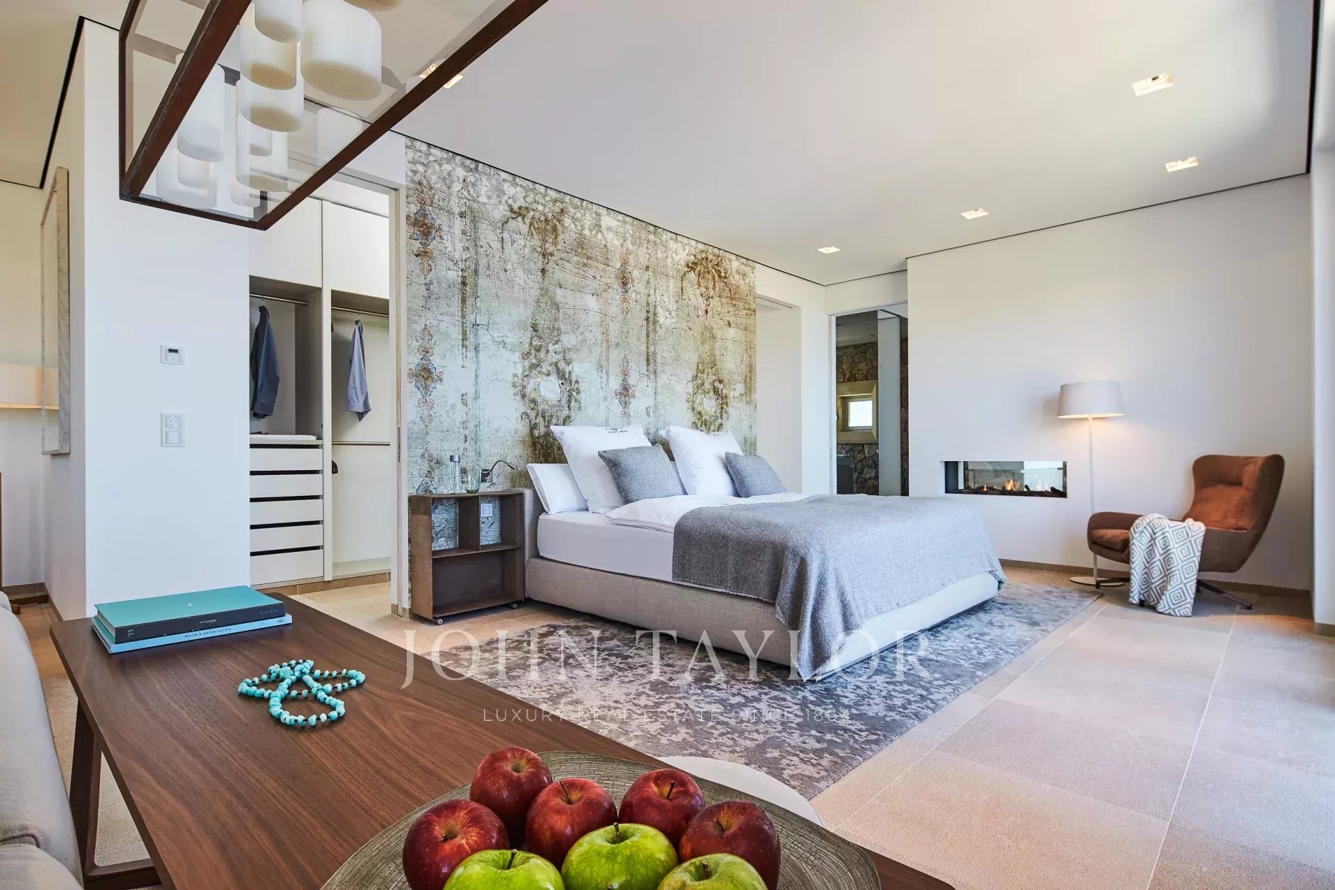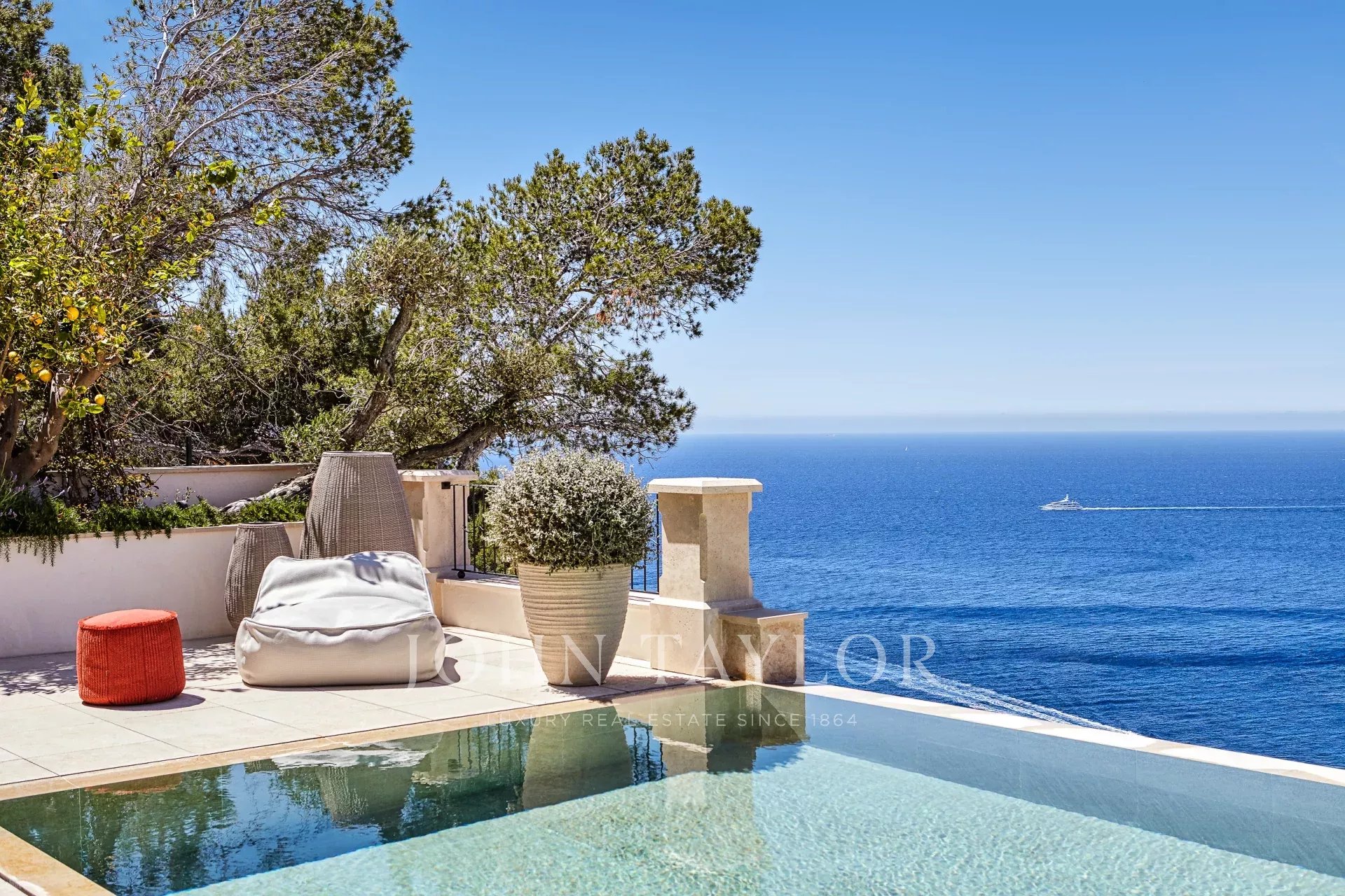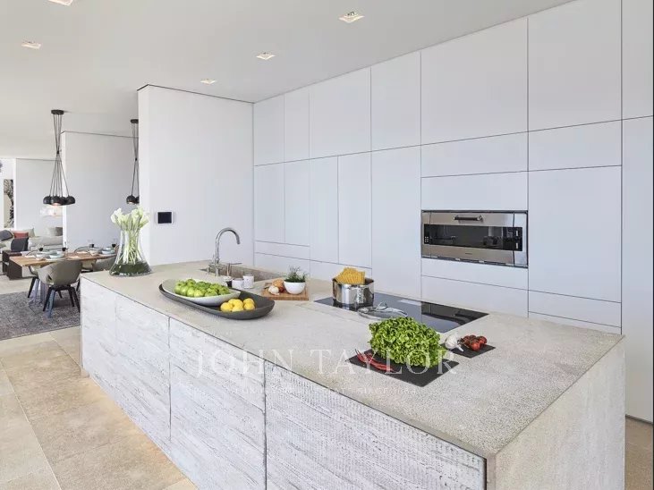 Esta lujosa propiedad está situada en un lugar codiciado por encima de la bahía de Cala Llamp y ofrece impresionantes vistas panorámicas al mar. La villa tiene una superficie construida de 700m2 en tres niveles. En la planta baja, hay un elegante hall de entrada que conduce a la sala de TV, sala de estar, comedor y cocina. La espaciosa zona de estar se extiende a través de las pérgolas hasta las terrazas, donde hay dos cocinas exteriores con parrillas de barbacoa y una gran mesa de comedor, así como un cuarto de baño. Otro punto a destacar es la piscina infinita de 60m2. La zona exterior está diseñada para disfrutar perfectamente del clima mediterráneo. Se puede acceder a la planta superior a través del ascensor o de la escalera elegantemente iluminada, donde se encuentra la zona de dormitorios. Ésta consta de dos dormitorios con baños en suite y una cómoda suite principal. Ésta consta de una antesala, una amplia zona de dormitorio y un lujoso cuarto de baño con bañera en el mirador. En el sótano, además del garaje de 100m2, que ofrece espacio para al menos 5 coches, hay una bodega, un gimnasio con sauna, una sala de cine, un dormitorio de servicio con baño en-suite, otro baño, una lavandería, un lavadero y un trastero. La propiedad se vende con muebles incluidos.