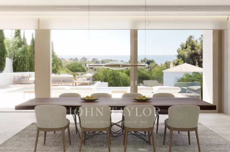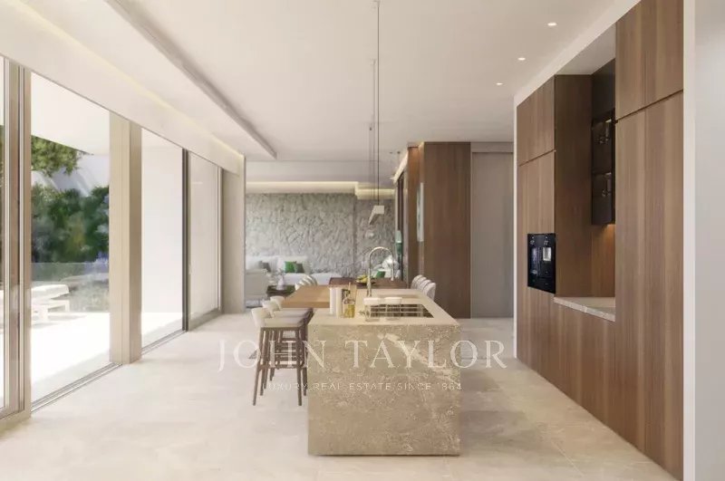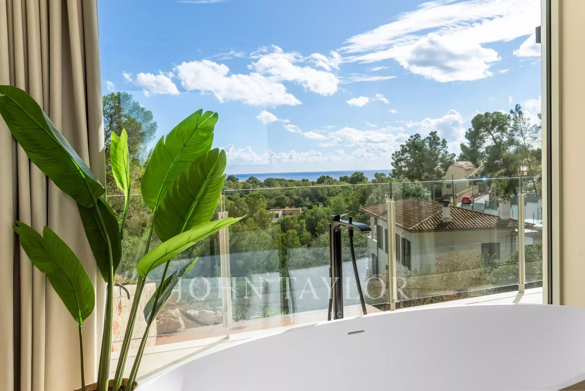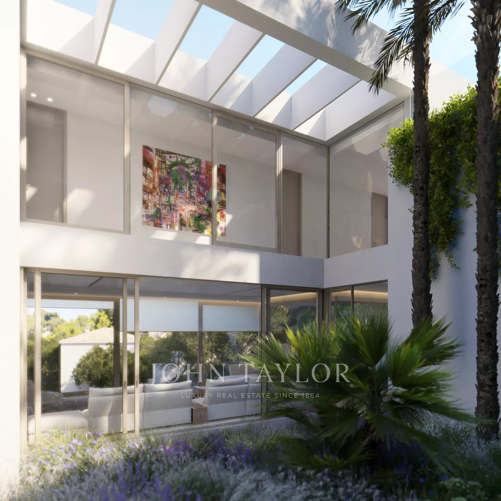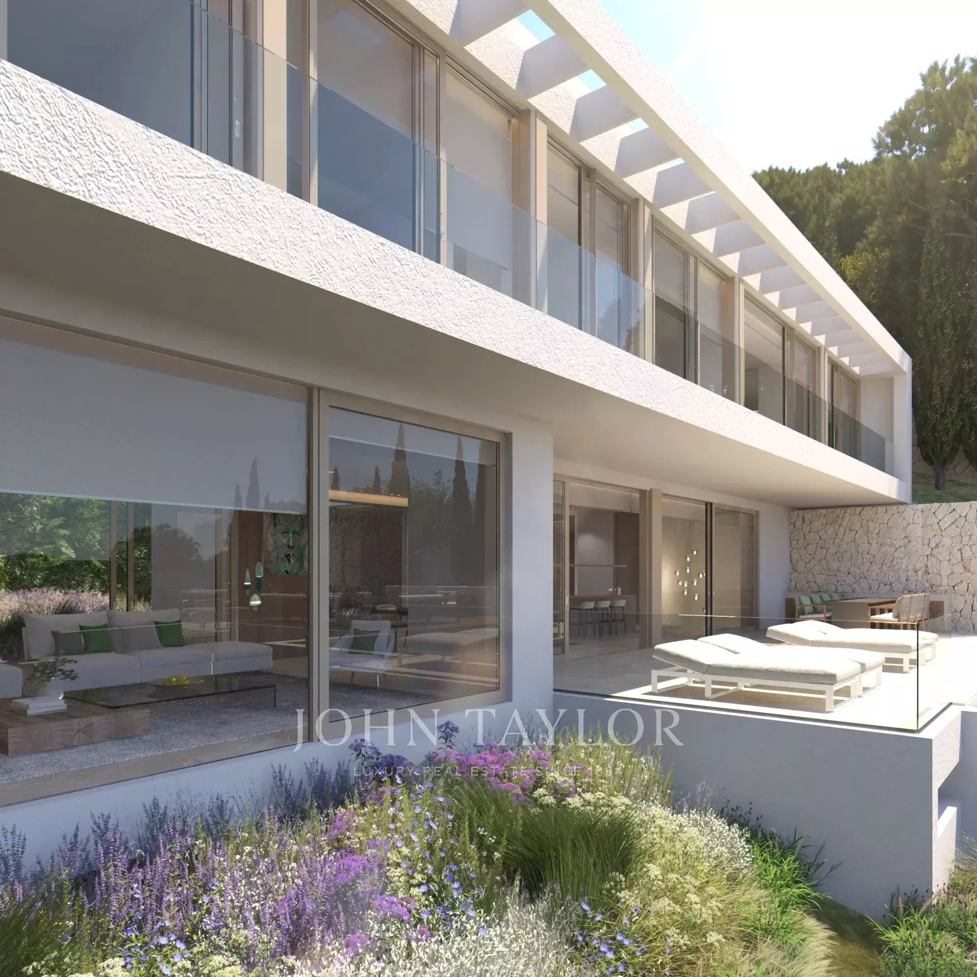 Le presentamos esta exclusiva villa de diseño contemporáneo, ubicada en la zona más codiciada de Puerto Portals y lista para entrar a vivir. Una residencia excepcional que combina arquitectura moderna, elegancia mediterránea y vistas panorámicas al mar, ofreciendo el máximo confort en un entorno privilegiado. Sobre un terreno de aproximadamente 1.328 m², esta villa se alza con una superficie habitable de unos 680 m², distribuidos con estilo y luminosidad. En la planta principal se encuentra la zona de entrada y cinco amplios dormitorios en suite, todos con impresionantes vistas al mar y acceso directo a terrazas privadas. En la planta alta 5 dormitorios en suite. La planta baja ofrece un elegante espacio de estar de concepto abierto, una cocina de diseño totalmente equipada con materiales de primera calidad y zona de comedor, una segunda cocina auxiliar, un aseo de invitados y un dormitorio con baño en suite. Las amplias terrazas y la piscina infinita crean el escenario perfecto para disfrutar del estilo de vida mallorquín al aire libre durante todo el año. En el nivel inferior, la villa cuenta con una sala de cine privada, un gimnasio, una lavandería y una sala técnica, además de un garaje para varios vehículos. Entre sus múltiples características destacan la calefacción por suelo radiante, el aire acondicionado, un sistema de tratamiento de agua, ascensor, domótica avanzada, un cuidado diseño de iluminación LED, sistema de riego automático, acristalamiento aislante de alta calidad, además de una piscina espectacular y gimnasio privado. Una villa donde el lujo, la privacidad y el diseño se fusionan para ofrecer una experiencia residencial única en uno de los lugares más exclusivos de Mallorca.