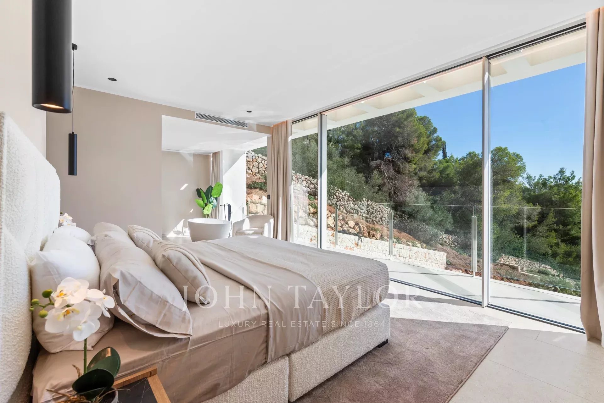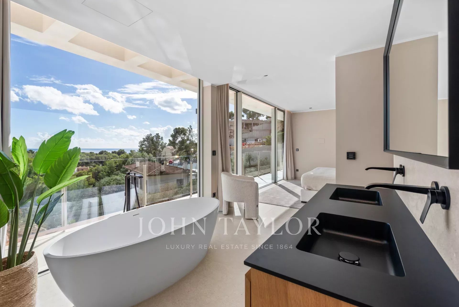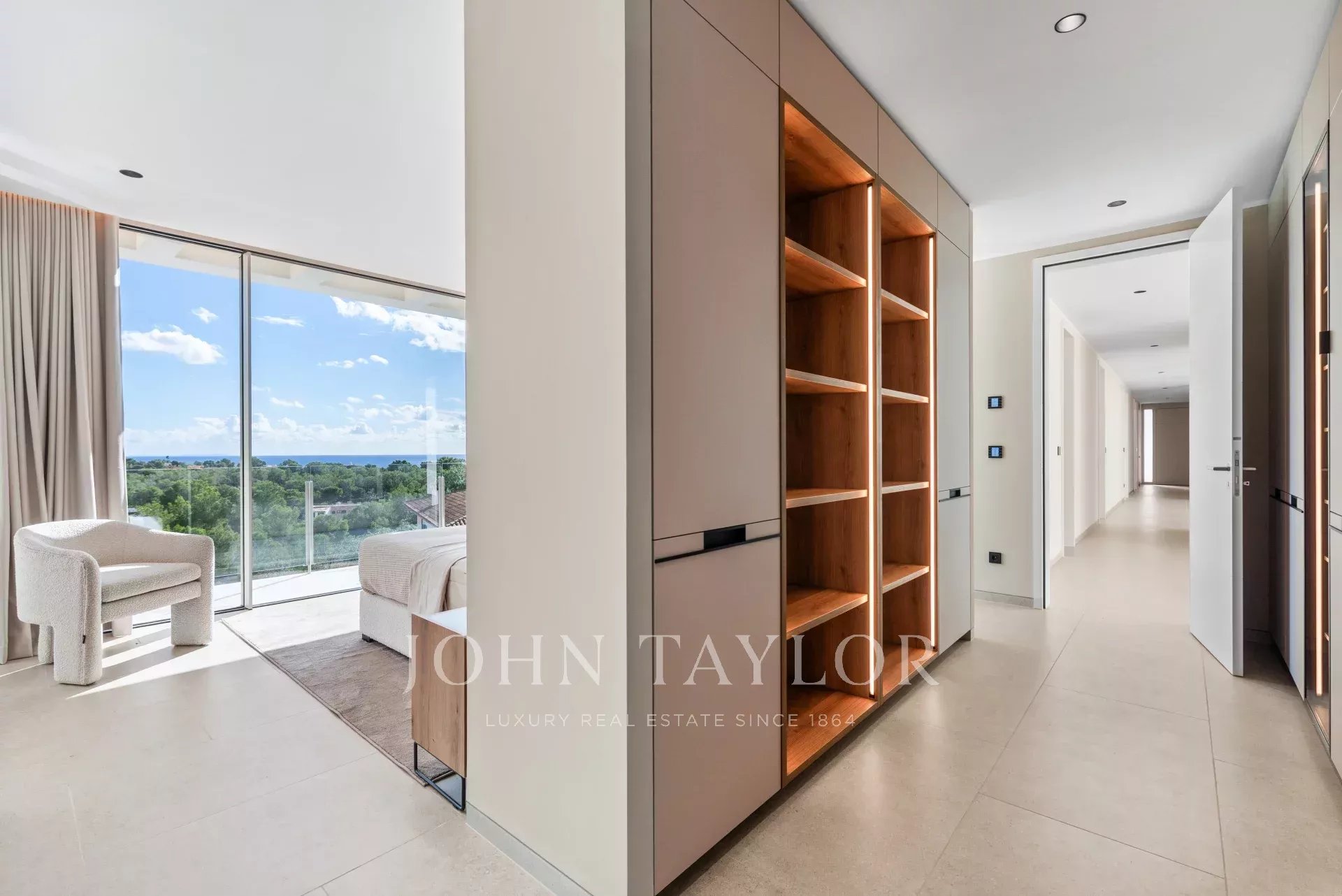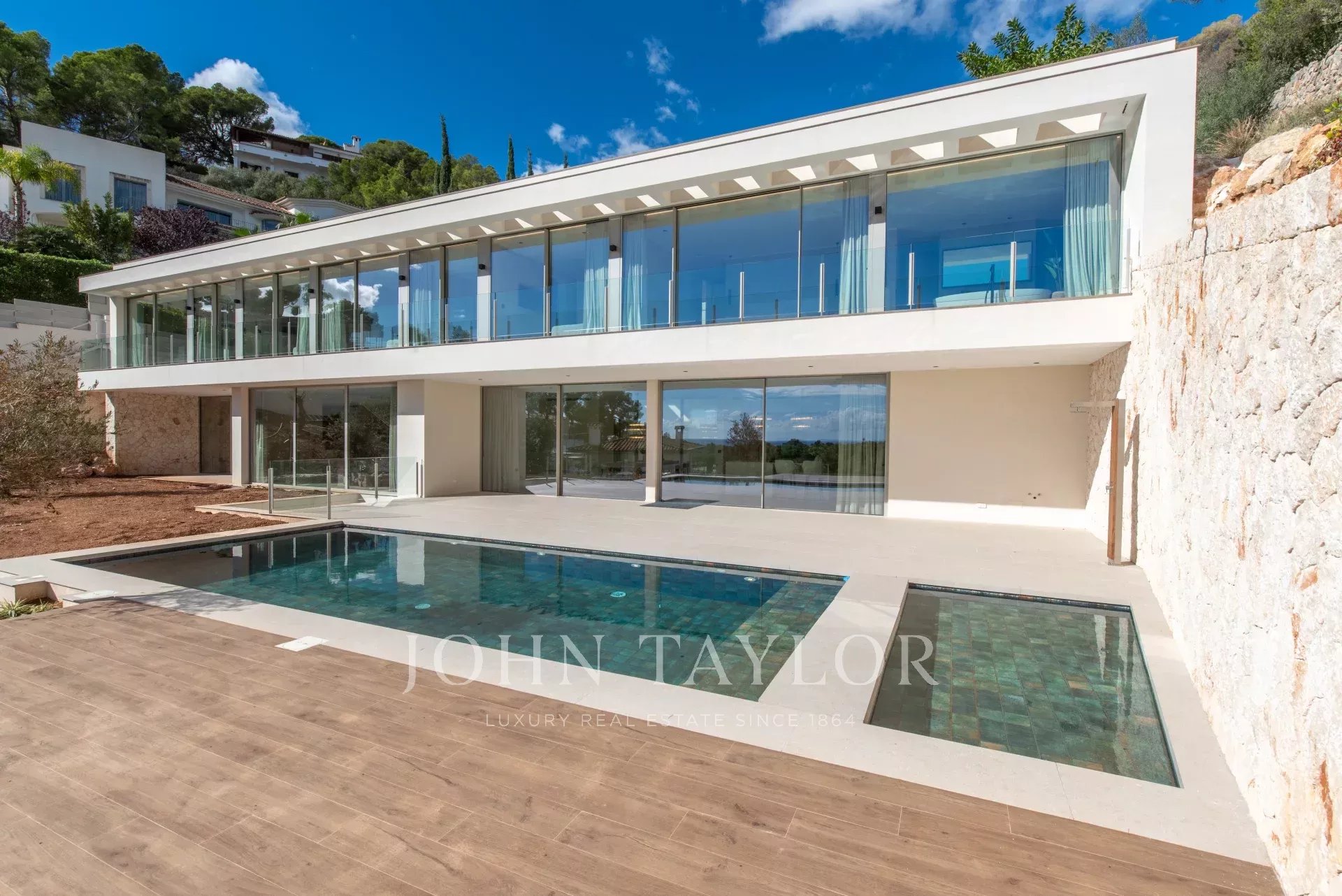 Le presentamos esta exclusiva villa de diseño contemporáneo, ubicada en la zona más codiciada de Puerto Portals y lista para entrar a vivir. Una residencia excepcional que combina arquitectura moderna, elegancia mediterránea y vistas panorámicas al mar, ofreciendo el máximo confort en un entorno privilegiado. Sobre un terreno de aproximadamente 1.328 m², esta villa se alza con una superficie habitable de unos 680 m², distribuidos con estilo y luminosidad. En la planta principal se encuentra la zona de entrada y cinco amplios dormitorios en suite, todos con impresionantes vistas al mar y acceso directo a terrazas privadas. En la planta alta 5 dormitorios en suite. La planta baja ofrece un elegante espacio de estar de concepto abierto, una cocina de diseño totalmente equipada con materiales de primera calidad y zona de comedor, una segunda cocina auxiliar, un aseo de invitados y un dormitorio con baño en suite. Las amplias terrazas y la piscina infinita crean el escenario perfecto para disfrutar del estilo de vida mallorquín al aire libre durante todo el año. En el nivel inferior, la villa cuenta con una sala de cine privada, un gimnasio, una lavandería y una sala técnica, además de un garaje para varios vehículos. Entre sus múltiples características destacan la calefacción por suelo radiante, el aire acondicionado, un sistema de tratamiento de agua, ascensor, domótica avanzada, un cuidado diseño de iluminación LED, sistema de riego automático, acristalamiento aislante de alta calidad, además de una piscina espectacular y gimnasio privado. Una villa donde el lujo, la privacidad y el diseño se fusionan para ofrecer una experiencia residencial única en uno de los lugares más exclusivos de Mallorca.
