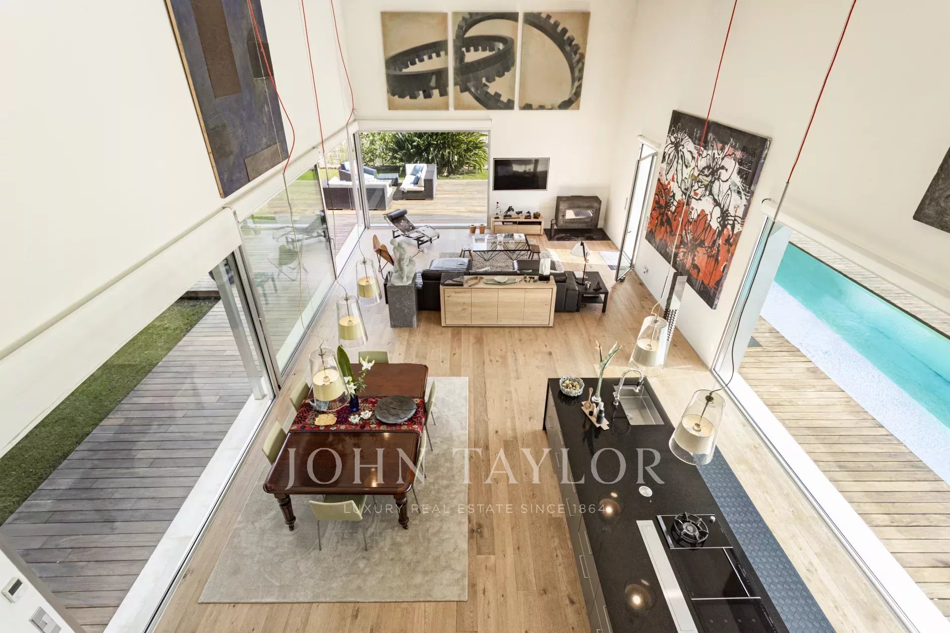 En el nivel inferior, hay un lavadero, una despensa, una bodega, un amplio almacén que puede convertirse en gimnasio privado y un garaje con capacidad para tres vehículos y una estación de carga eléctrica. En el exterior, una piscina climatizada de 25 metros se convierte en la pieza central, acompañada de un majestuoso olivo milenario que realza la esencia mediterránea de la propiedad. La casa está equipada con calefacción por suelo radiante y aire acondicionado por conductos, lo que garantiza un ambiente confortable durante todo el año.