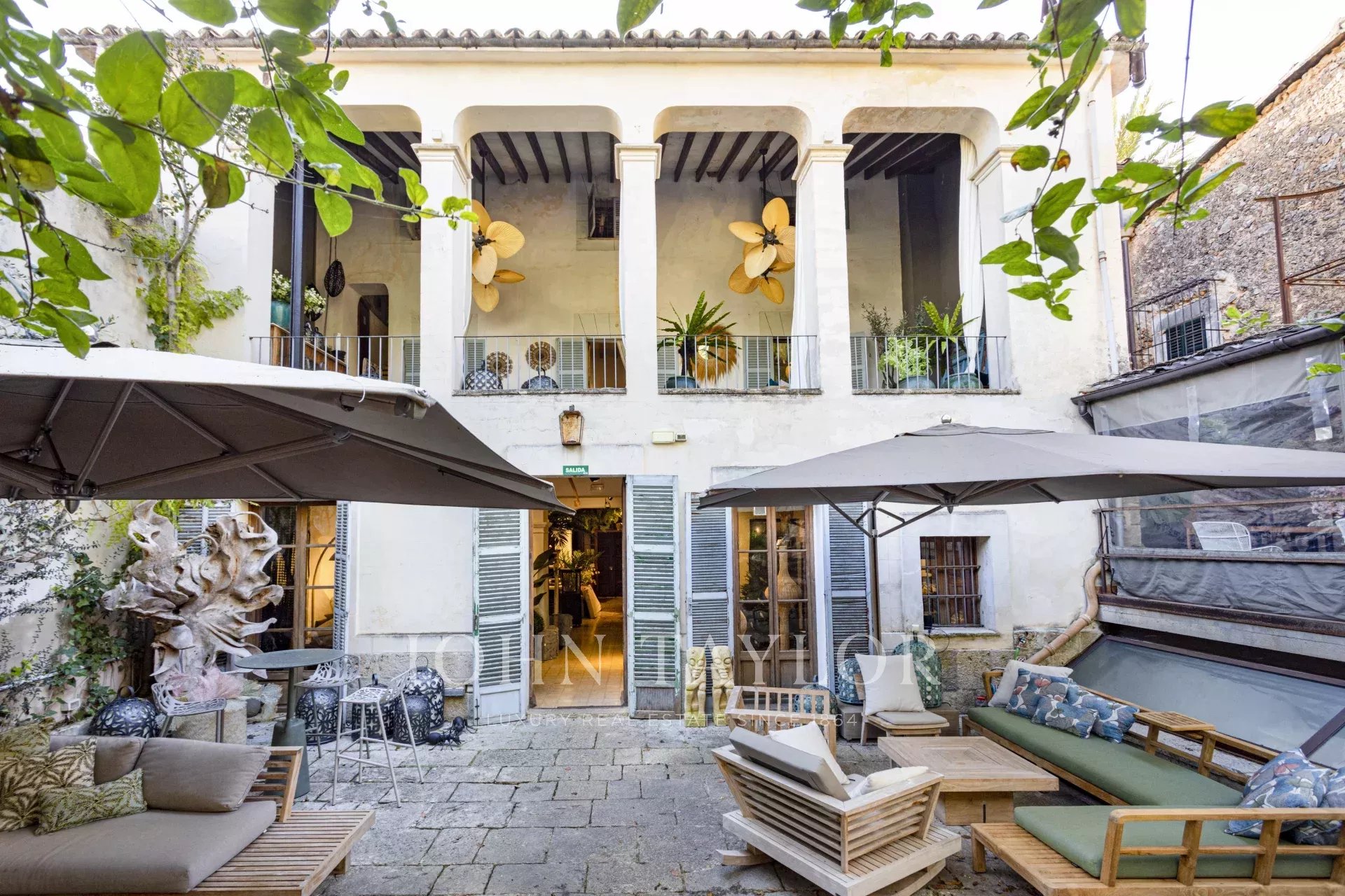 Situada en el corazón del pueblo, esta imponente propiedad histórica se utiliza actualmente como tienda de diseño de interiores y restaurante con jardín. La propiedad ofrece características originales en muchas zonas, empezando por su fachada protegida. El edificio ofrece varias opciones para su próximo propietario, dependiendo de cómo le gustaría vivir. Construido en tres plantas, cuenta con techos altos, mucha luz natural, y su punto culminante es sin duda el amplio jardín en diferentes niveles, creando a la vez una zona acogedora y relajante, un verdadero oasis. Sin duda una oportunidad de inversión única en la vida en uno de los lugares más populares del país, a 20 minutos de la capital, Palma.