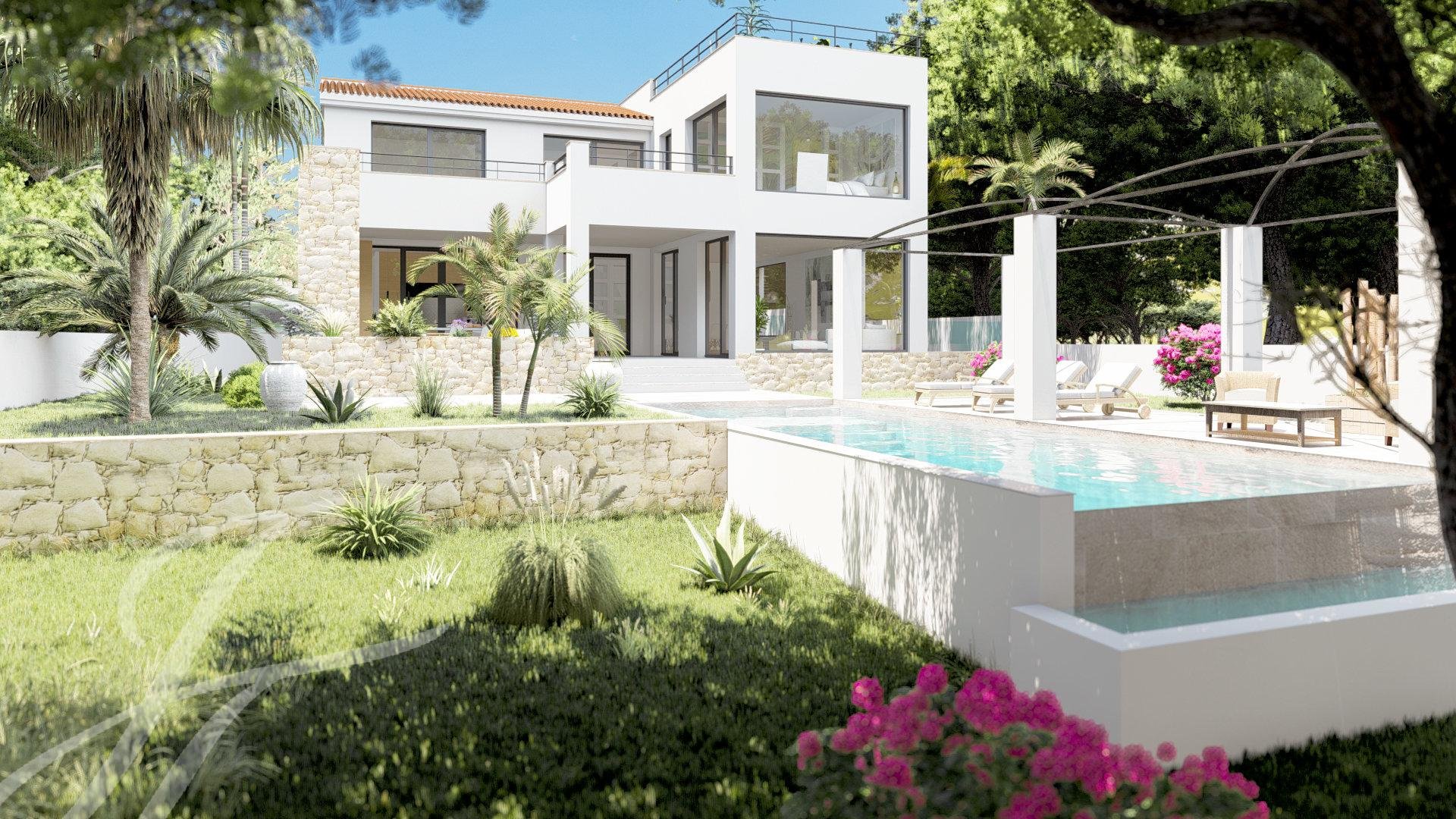 Villa de calidad en una excelente ubicación en Santa Ponsa. Esta villa se construirá en un solar de 1012 m² en una ubicación privilegiada, en Nova Santa Ponsa, a poca distancia del conocido Port Adriano. El permiso de construcción para una villa de 2 plantas y un total de 430 m² ya ha sido recibido y las obras se iniciarán en noviembre 2025 para poder entregar la vivienda en primavera 2027.
