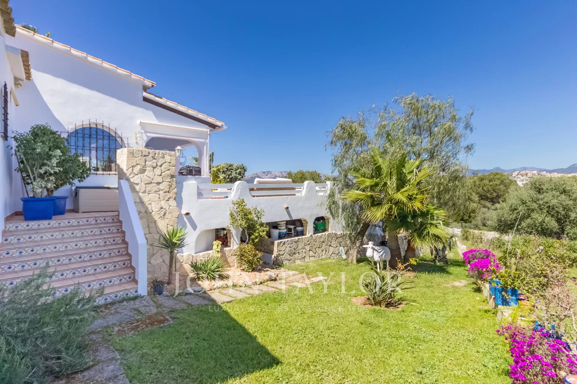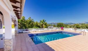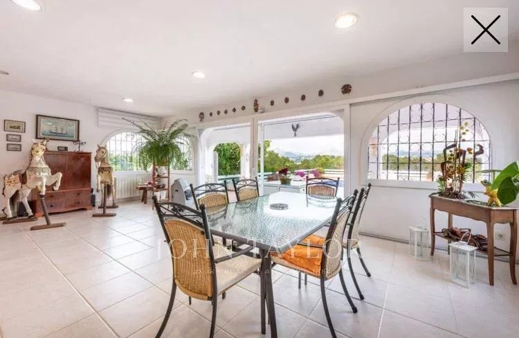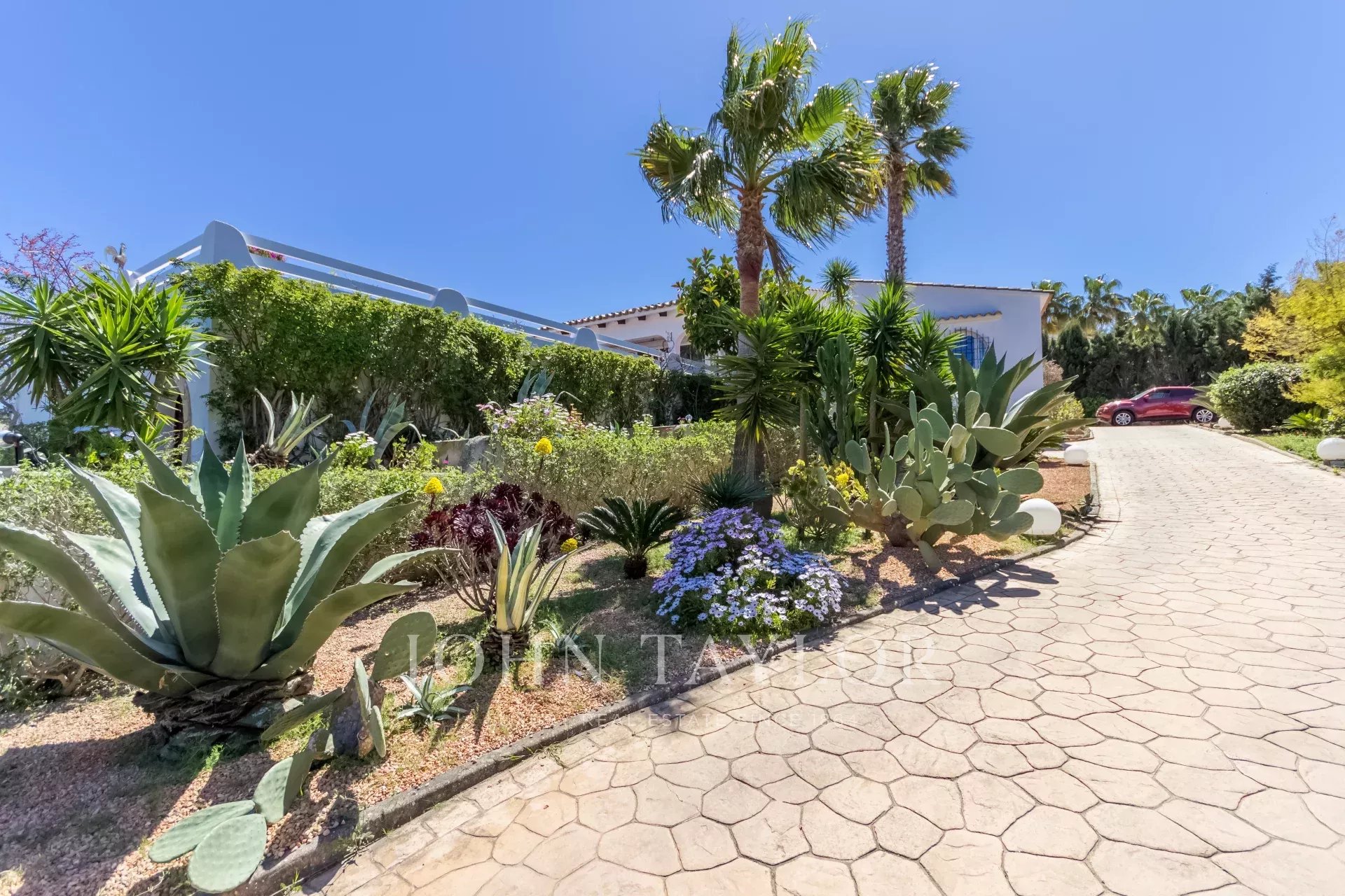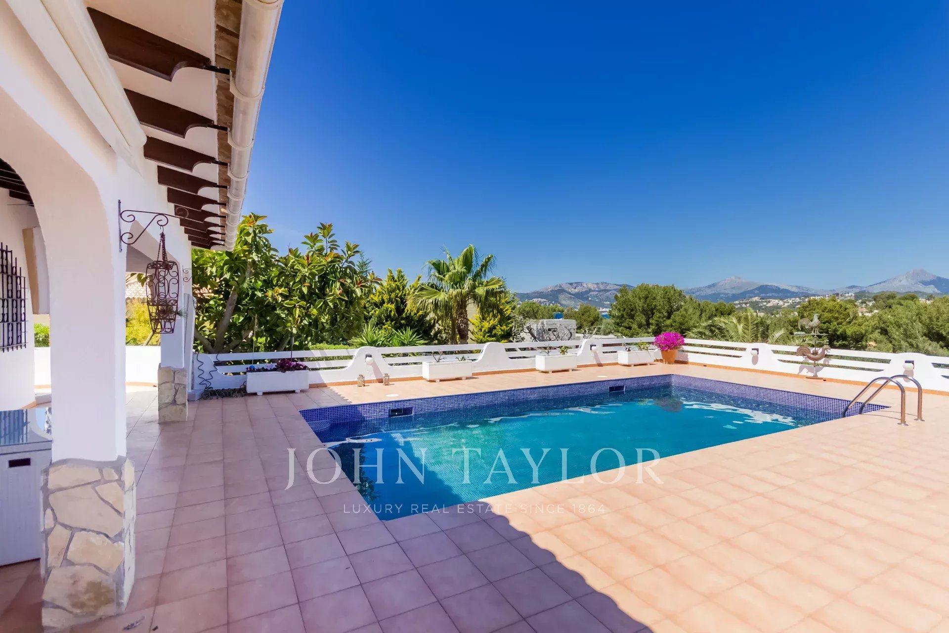 Esta singular propiedad familiar sin escasez de espacio interior como exterior fue construida en 1985 y se sitúa en la zona codiciada y céntrica de Nova Santa Ponsa. Con un poco de restauración esta propiedad representa una excelente oportunidad para vivir en solo un nivel. La villa consta de 3 a 4 dormitorios con armarios empotrados y 4 cuartos de baño de los cuales 3 son en suite. La propiedad se encuentra sobre un solar de aprox. 1370 m2 con una superficie habitable de casi 310 metros cuadrados, que ofrece suficiente espacio para toda la familia. El amplio y precioso salón-comedor se ha construido de forma circular, alcanzando una gran superficie de aprox. 135 m2 que ofrece acceso a los dormitorios, cocina, la terraza y la zona de terraza con la piscina desde donde podrá disfrutar de unas vistas espectaculares hasta el mar y las montañas. En la parte inferior del chalet se encuentra una estancia a reformar que podría estar destinada para un apartamento de invitados si se desea. También, existe la posibilidad de ampliar la casa - planta superior - con proyecto aceptado por las autoridades.