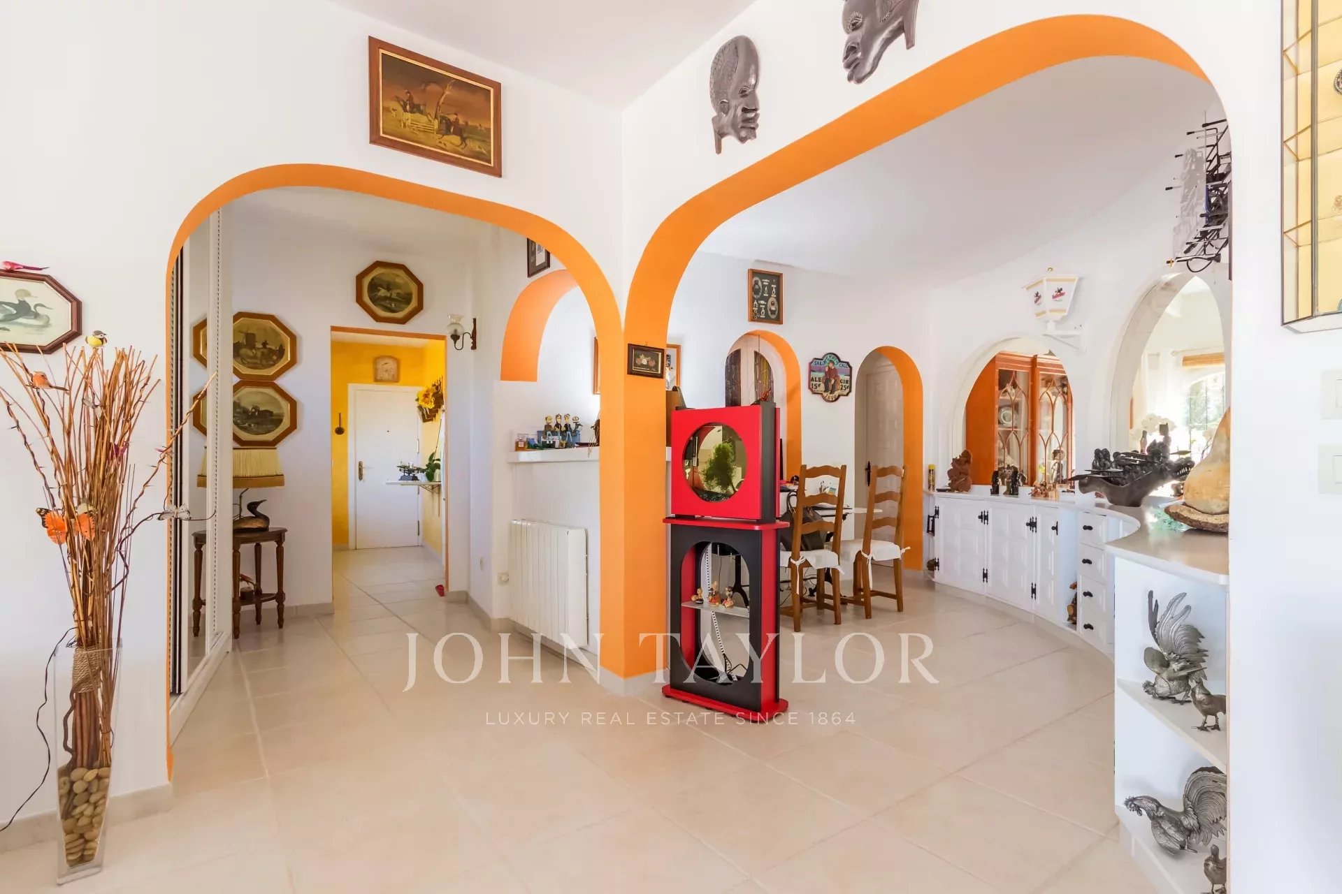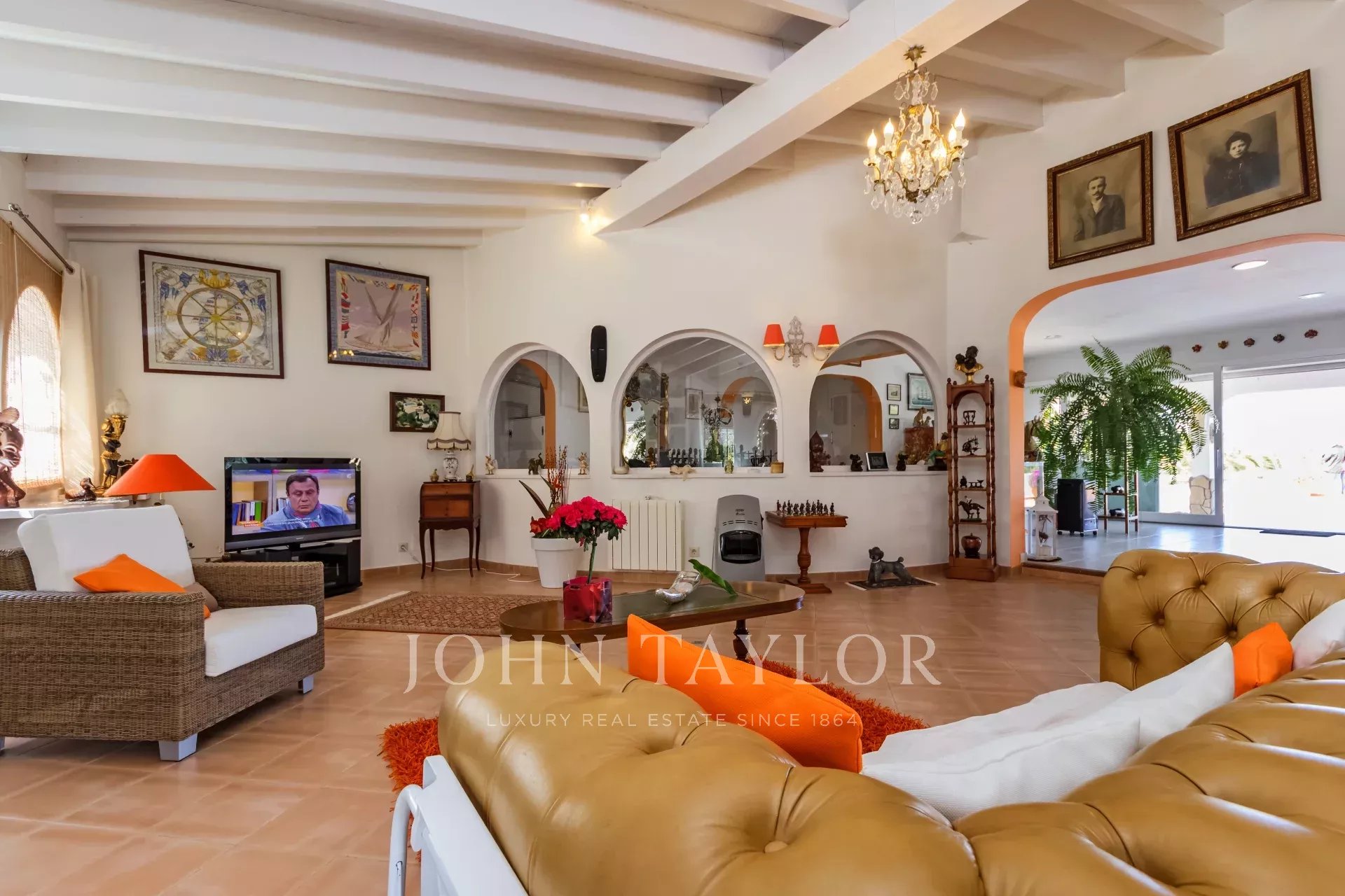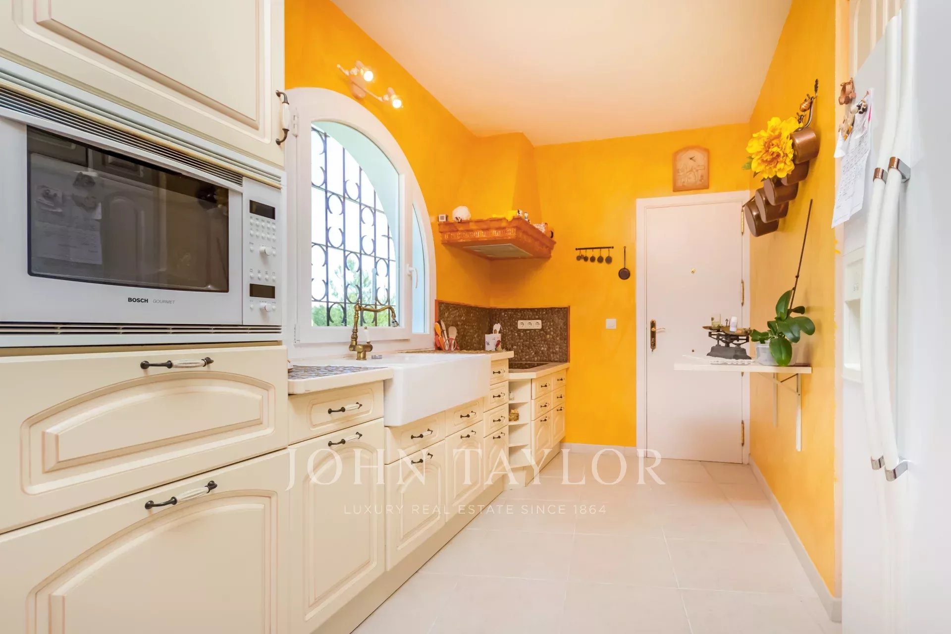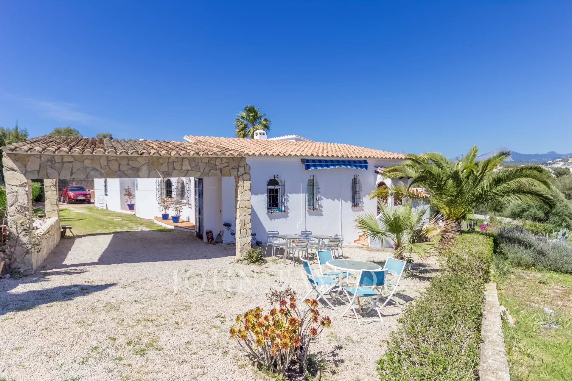 Esta singular propiedad familiar sin escasez de espacio interior como exterior fue construida en 1985 y se sitúa en la zona codiciada y céntrica de Nova Santa Ponsa. Con un poco de restauración esta propiedad representa una excelente oportunidad para vivir en solo un nivel. La villa consta de 3 a 4 dormitorios con armarios empotrados y 4 cuartos de baño de los cuales 3 son en suite. La propiedad se encuentra sobre un solar de aprox. 1370 m2 con una superficie habitable de casi 310 metros cuadrados, que ofrece suficiente espacio para toda la familia. El amplio y precioso salón-comedor se ha construido de forma circular, alcanzando una gran superficie de aprox. 135 m2 que ofrece acceso a los dormitorios, cocina, la terraza y la zona de terraza con la piscina desde donde podrá disfrutar de unas vistas espectaculares hasta el mar y las montañas. En la parte inferior del chalet se encuentra una estancia a reformar que podría estar destinada para un apartamento de invitados si se desea. También, existe la posibilidad de ampliar la casa - planta superior - con proyecto aceptado por las autoridades.