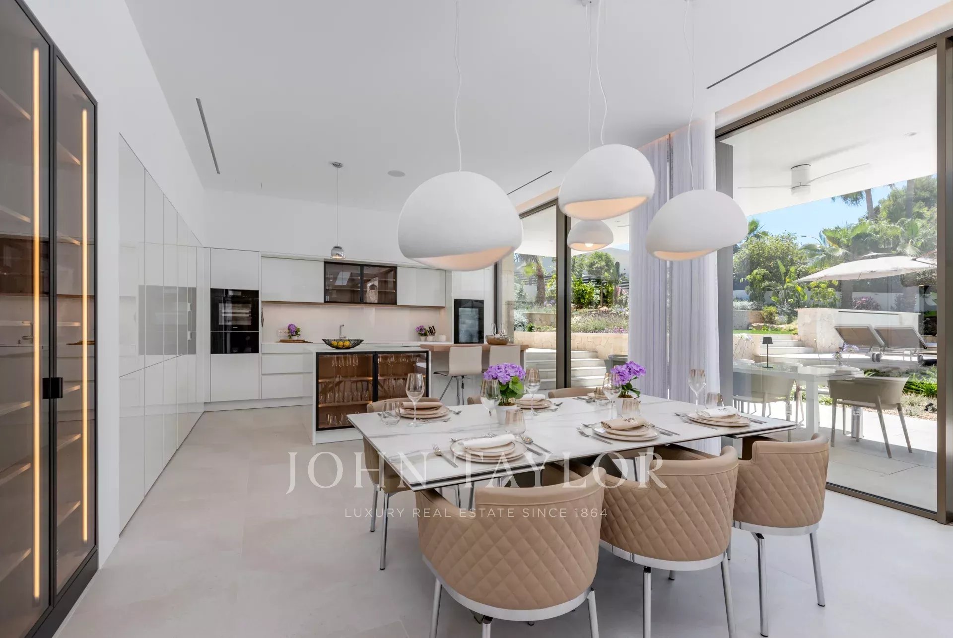 ¡Extraordinaria villa de nueva construcción en Nova Santa Ponsa! Esta joya moderna destaca por su diseño atemporal y detalles locales. Con una parcela de 2.030 m² y 984 m² construidos en 3 niveles, ofrece una experiencia de vida inigualable. Desde la impresionante entrada, accede a un luminoso salón con chimenea y vistas a la piscina y jardín. La cocina abierta con electrodomésticos Miele y una vinoteca es perfecta para cenas inolvidables. Además, cuenta con una cocina exterior ideal para barbacoas.
