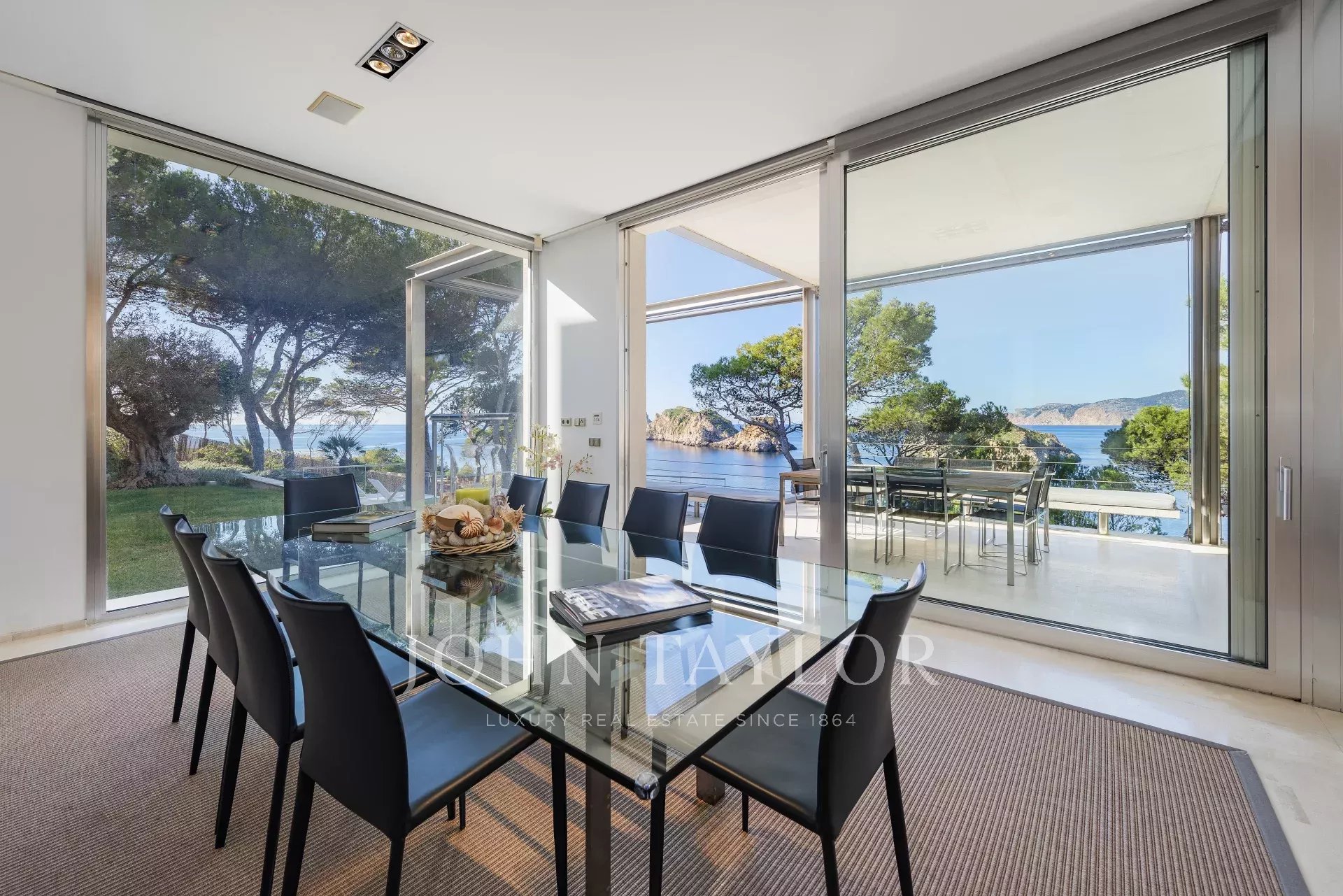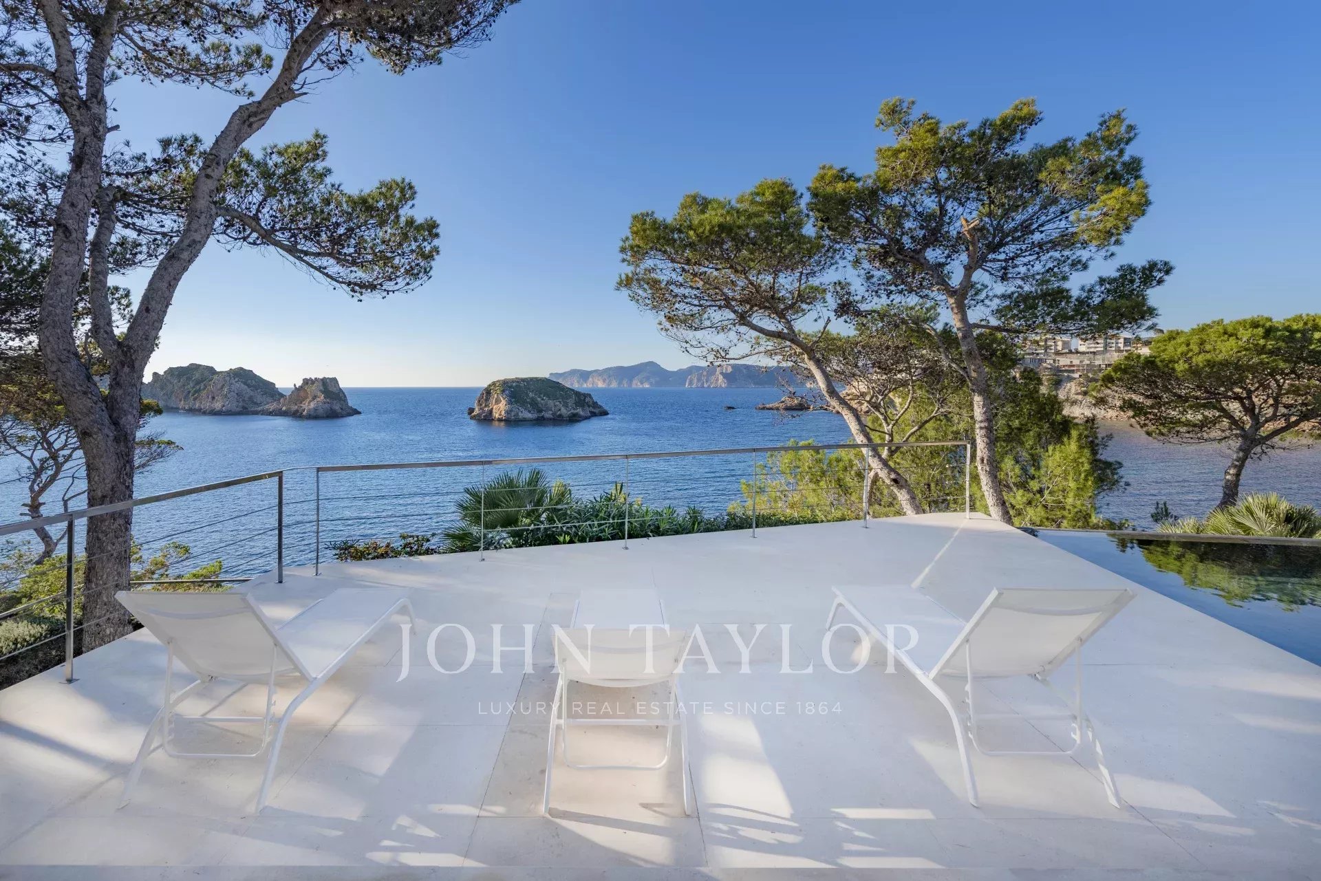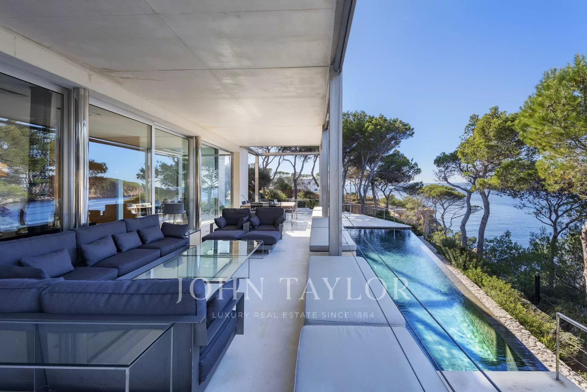 Esta maravillosa villa en primera línea de 770 m2 presenta espectaculares vistas al mar, a las islas de las Malgrats y un acceso directo al mar con una plataforma con concesión de costas de 15 años. La villa se encuentra muy cerca de la súper marina, Port Adriano, de los cuatro campos de golf cercanos y a sólo 25 minutos de la elegante capital y del aeropuerto de Mallorca. El confort óptimo, un montón de espacio, un diseño interior ligero y moderno con áreas de estar y comedor abiertas y transiciones fluidas a las áreas exteriores le dan a la villa un ambiente perfecto para el estilo de vida mediterráneo. En esta villa realmente se pensó en todo: las zonas de estar están convenientemente conectadas. Arriba, además de la generosa suite principal con su propia sala de estar, hay otras cuatro habitaciones con cuarto de baño en suite. Luego en la planta baja hay otra suite completa con con cuarto de baño en suite y dos dormitorios que comparten baño ideal para los empleados. Una cocina amplia, salón de estar y comedor. En total 6 dormitorios con sus cuartos de baño en suite y 2 habitaciones de personal con baño. Si la piscina es demasiado pequeña, puede descender directamente de la casa al mar a través de un acceso costero. ¡En general, una villa que no deja nada que desear!