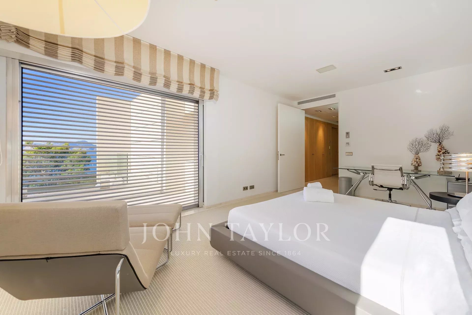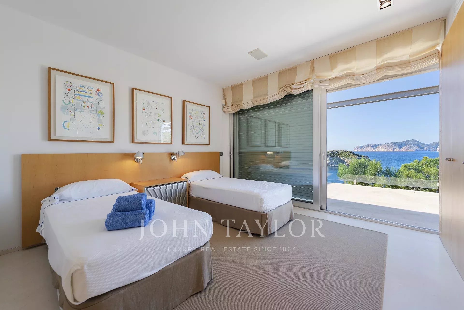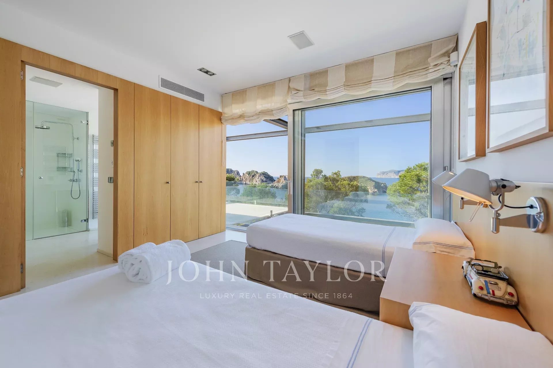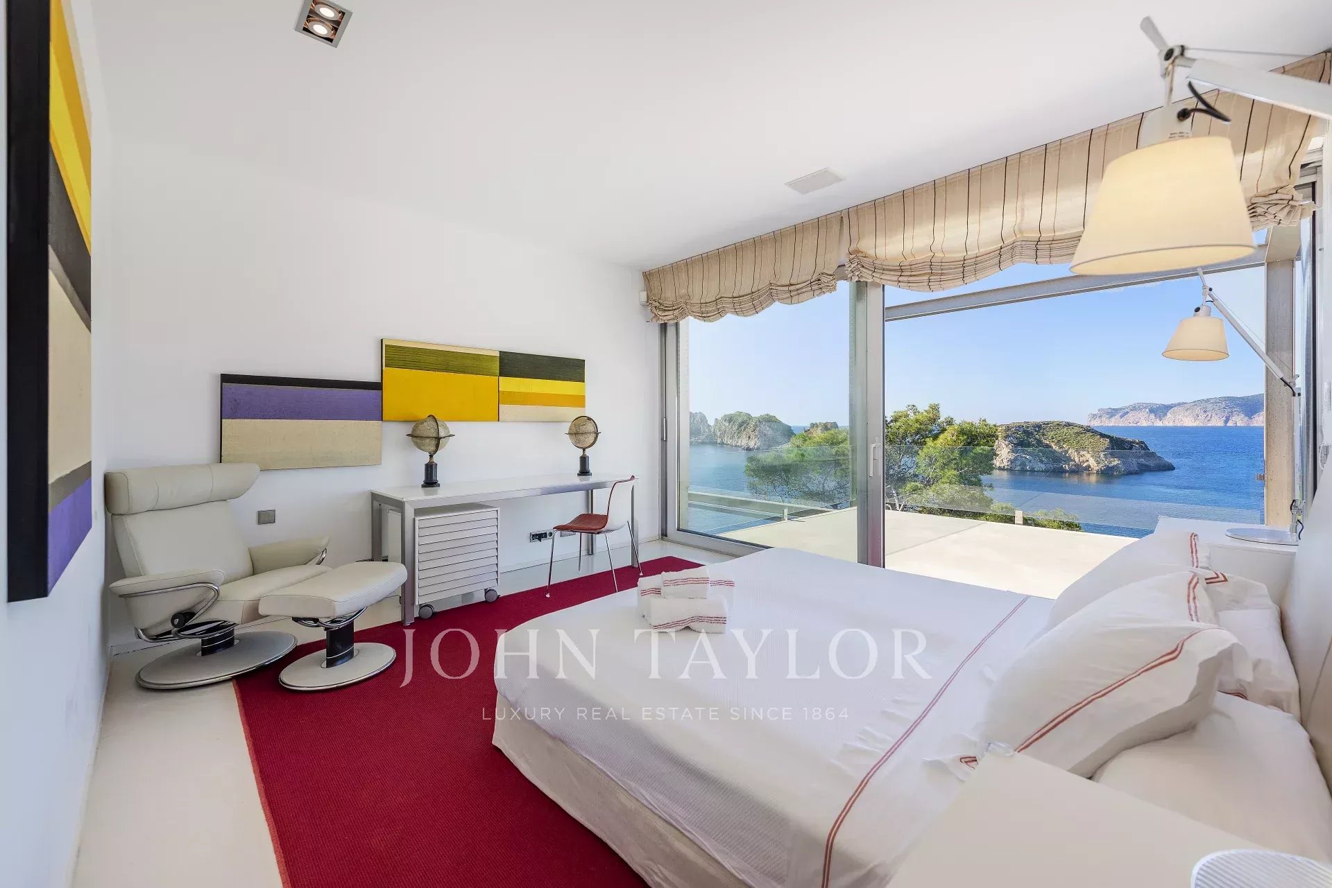 Esta maravillosa villa en primera línea de 770 m2 presenta espectaculares vistas al mar, a las islas de las Malgrats y un acceso directo al mar con una plataforma con concesión de costas de 15 años. La villa se encuentra muy cerca de la súper marina, Port Adriano, de los cuatro campos de golf cercanos y a sólo 25 minutos de la elegante capital y del aeropuerto de Mallorca. El confort óptimo, un montón de espacio, un diseño interior ligero y moderno con áreas de estar y comedor abiertas y transiciones fluidas a las áreas exteriores le dan a la villa un ambiente perfecto para el estilo de vida mediterráneo. En esta villa realmente se pensó en todo: las zonas de estar están convenientemente conectadas. Arriba, además de la generosa suite principal con su propia sala de estar, hay otras cuatro habitaciones con cuarto de baño en suite. Luego en la planta baja hay otra suite completa con con cuarto de baño en suite y dos dormitorios que comparten baño ideal para los empleados. Una cocina amplia, salón de estar y comedor. En total 6 dormitorios con sus cuartos de baño en suite y 2 habitaciones de personal con baño. Si la piscina es demasiado pequeña, puede descender directamente de la casa al mar a través de un acceso costero. ¡En general, una villa que no deja nada que desear!