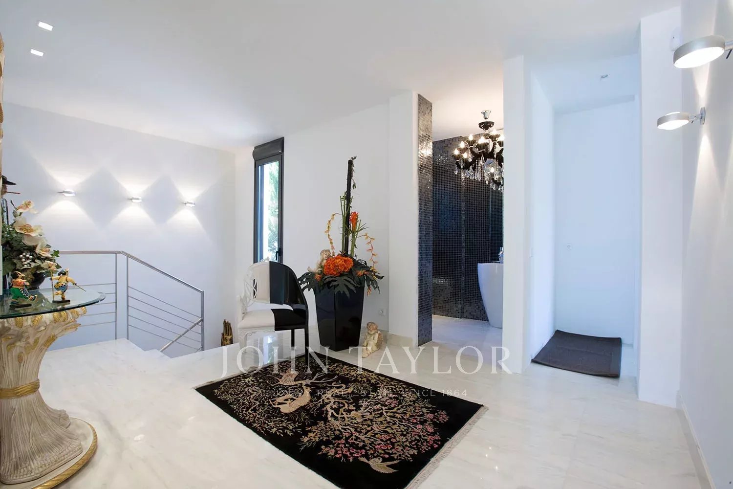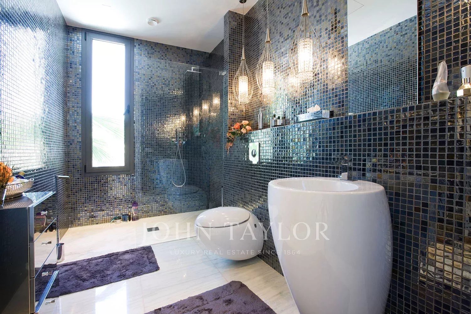 En la planta inferior, conectada mediante ascensor, la villa revela todo su potencial: un amplio garaje para tres vehículos, estancias multifuncionales y espacio más que suficiente para crear un spa privado con sauna, gimnasio o incluso una bodega. Cada detalle refleja calidad y carácter: suelos de mármol, calefacción por suelo radiante, aire acondicionado, chimenea… elementos que hablan de una propiedad construida con sensibilidad, respeto por el diseño y una búsqueda constante de excelencia.