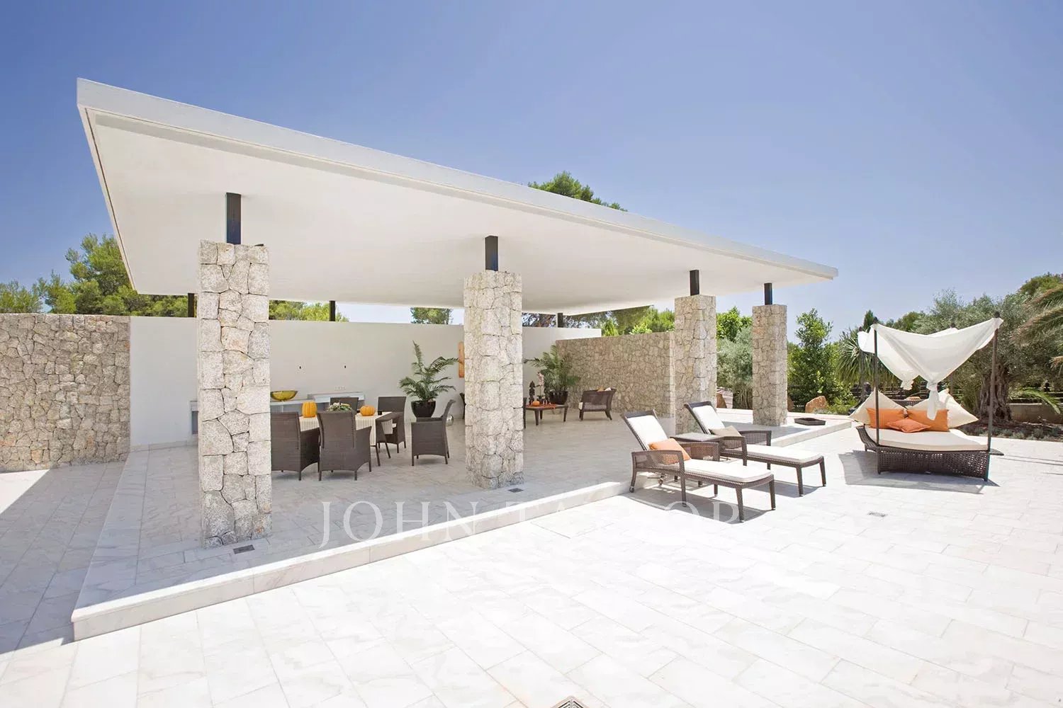Los exteriores completan la magia. La piscina climatizada, las terrazas soleadas y un lounge de verano con barbacoa crean un escenario perfecto para disfrutar largas veladas mediterráneas, celebraciones especiales o momentos de calma absoluta. Todo en esta villa está pensado para quien valora la belleza, la privacidad y el diseño atemporal.