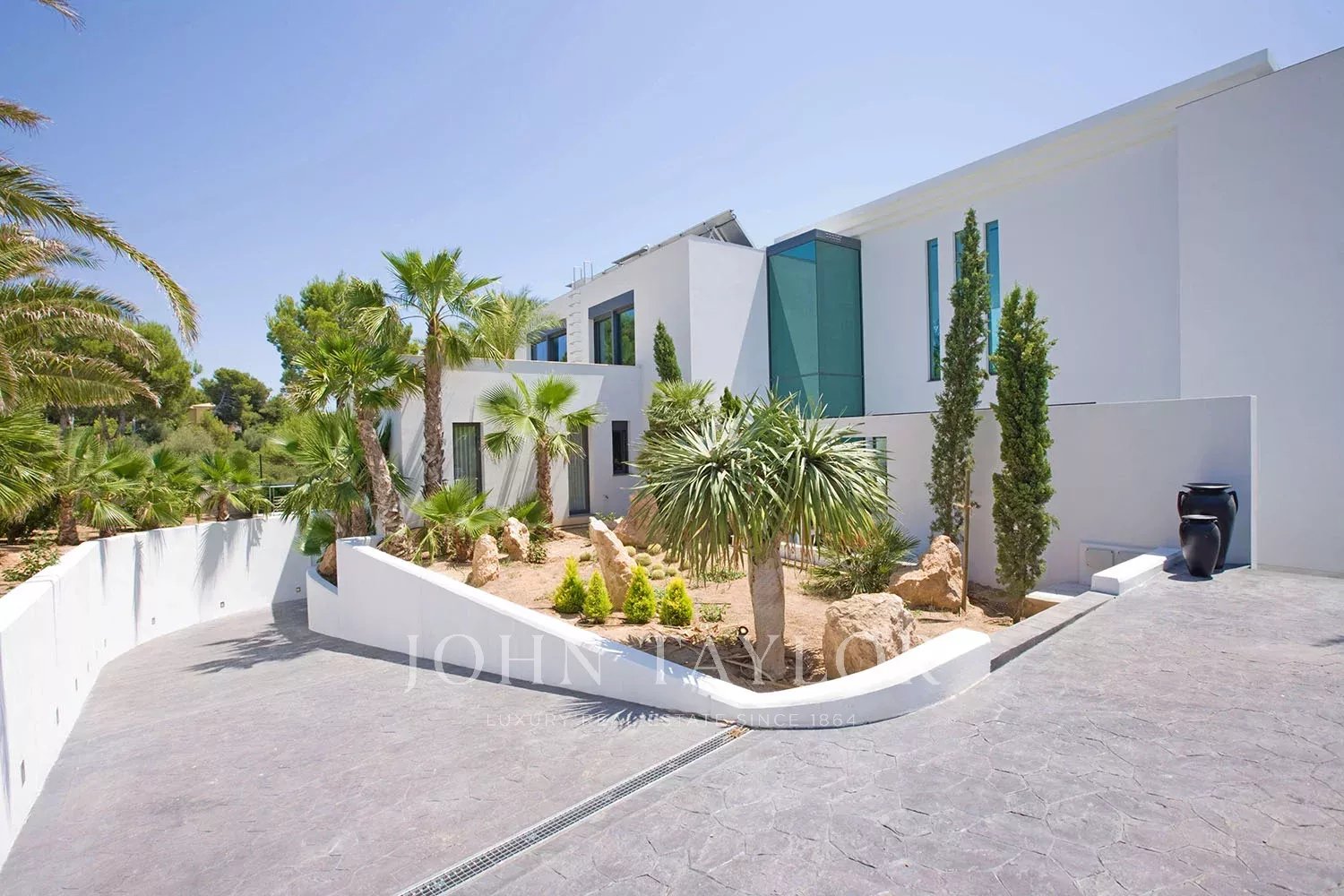 En uno de los rincones más codiciados y tranquilos del suroeste de Mallorca se alza esta villa de diseño especial, una propiedad que parece creada para quienes buscan algo más que una casa: un refugio donde la luz, la arquitectura y el entorno se funden en una experiencia de vida única. Su orientación sur permite que cada estancia respire claridad y serenidad, mientras el entorno —entre puertos deportivos de prestigio, campos de golf y playas de agua turquesa— aporta esa sensación de libertad que solo ofrece el Mediterráneo.
