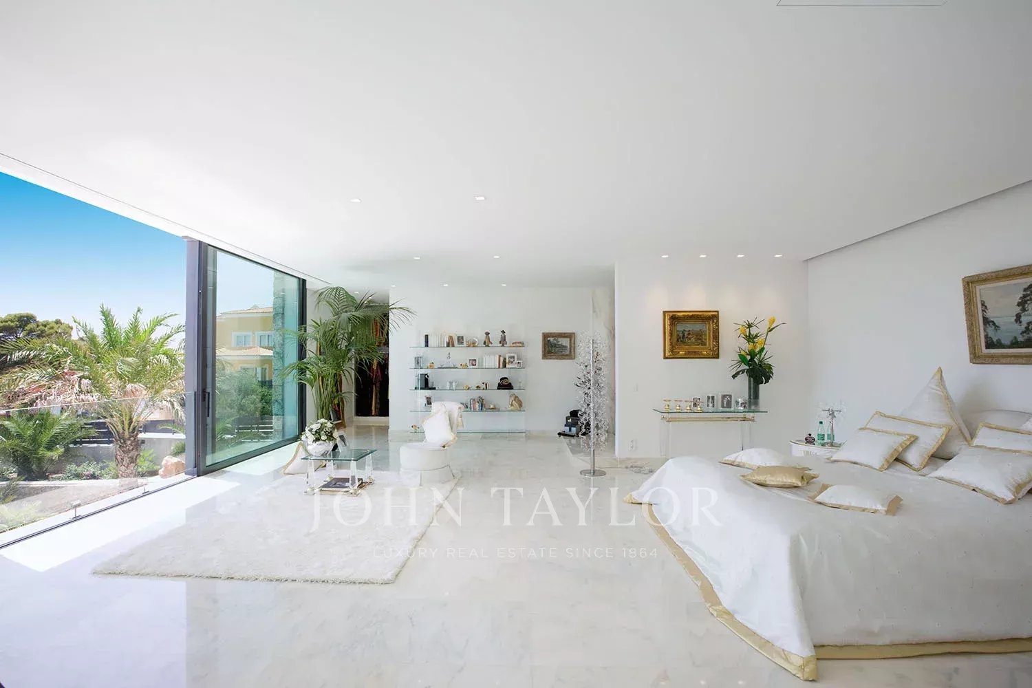 La planta superior es un espacio para detener el tiempo. Una elegante zona de estar invita a descansar mientras el azul del mar se insinúa en el horizonte. Las dos suites principales son auténticos refugios de calma, cada una con baño privado y vestidor, pensados para empezar y terminar el día envueltos en bienestar. Una zona chill-out completa este nivel, un rincón versátil que puede convertirse en un dormitorio adicional o conservarse como un lugar íntimo donde relajarse y desconectar.