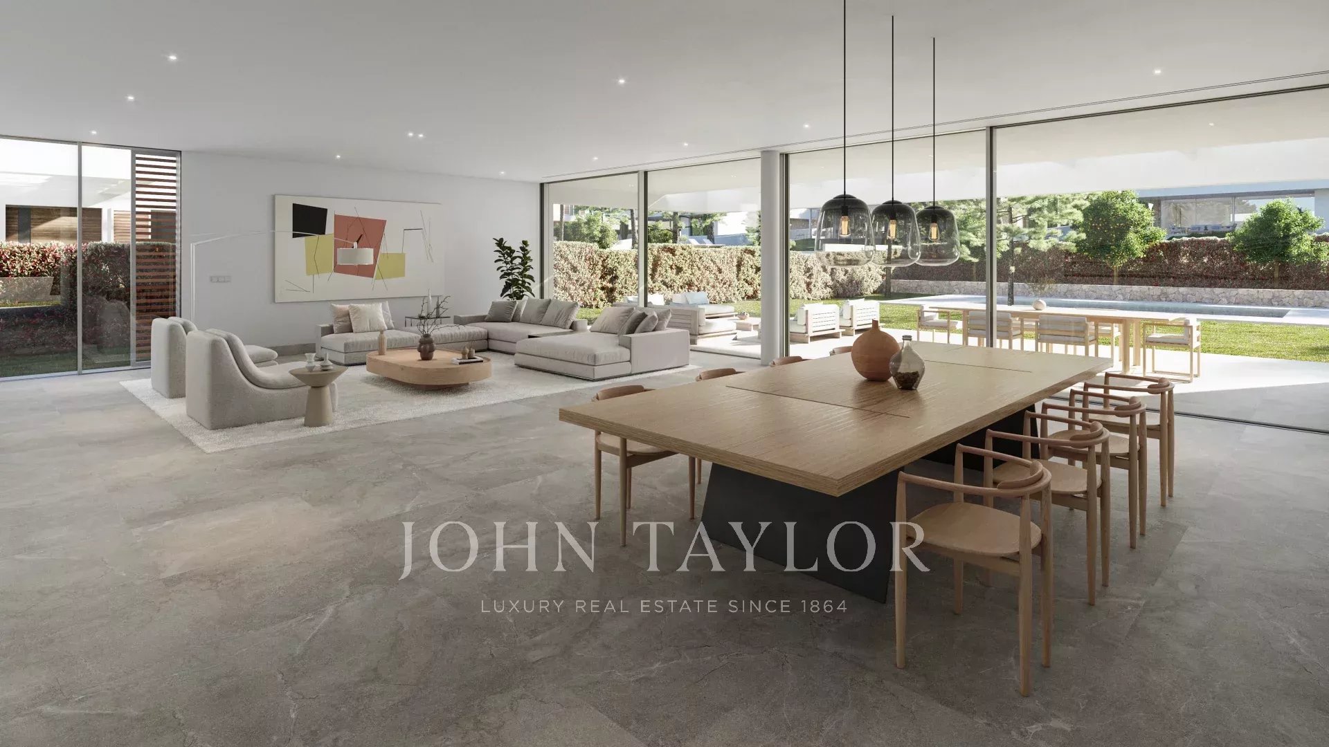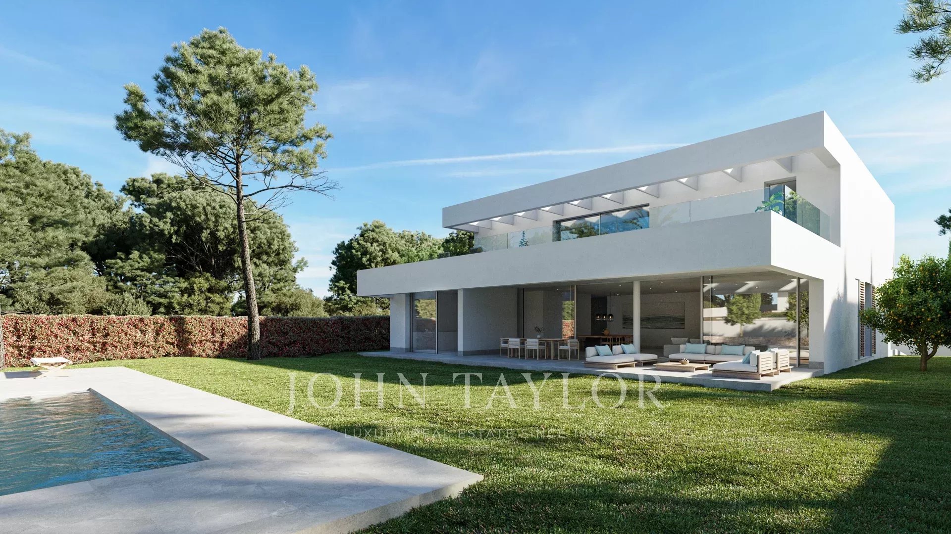 Lujosa casa de nueva construcción en Sol de Mallorca. En invierno 2022 se inició la construcción de esta villa de lujo de estilo moderno en la tranquila urbanización de Sol de Mallorca cerca del mar y del puerto pintoresco de Portals Vells. La propiedad destacará por sus espacios generosos y su luminosidad. El solar llano permite el máximo aprovechamiento del terreno y proporciona una sinergia excelente entre el interior de la vivienda y la vida en el exterior en las amplias terrazas, zona de la piscina y el jardín. En la planta baja la casa ofrece un gran salón comedor con cocina abierta, un aseo de invitados, la coladuría, un dormitorio con baño en suite y un garaje para 2 coches. En la planta superior hay un segundo salón y 4 dormitorios, cada uno con sus armarios empotrados y su propio baño. La fecha de entrega de esta maravillosa villa será en verano 2025.