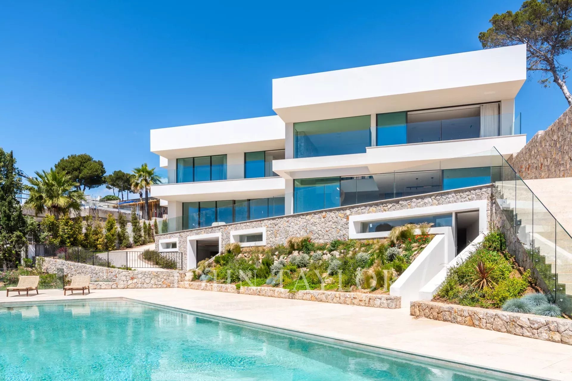 ¡Experimente el epítome de la vida de puro lujo en esta extraordinaria villa de nueva construcción en la tranquila zona residencial de Sol de Mallorca! ¡Adéntrese en esta obra maestra costera, que ofrece un estilo de vida sin igual! Esta impresionante residencia con un diseño impecable en primera línea que presume de unas inigualables vistas al mar redefine las propiedades costeras de lujo en Mallorca. Con más de 1000 m2 de superficie construida en una parcela de 2142 m2 esta increíble casa ofrece 3 plantas conectadas por un ascensor. Al entrar en el vestíbulo de la planta superior le da la bienvenida una impresionante vista del mar Mediterráneo. En este nivel se encuentra la magnífica suite principal con 2 vestidores y un sofisticado baño de planta abierta. Cada mañana se despertará con los continuos cambios de color del mar a sus pies. En esta planta también hay 3 dormitorios más, cada uno con su propio cuarto de baño. Bajando una hermosa escalera se llega a la sala de estar principal, completamente inundada de luz, conectada y espaciosa, pero al mismo tiempo diseñada para ofrecer espacios claramente separados para diferentes momentos, ya sea para una acogedora velada junto a la chimenea, una cena formal, una animada fiesta de barbacoa con familiares y amigos o simplemente para relajarse en la terraza. El sótano de la casa ofrece un garaje para al menos 7 coches y además unos espacios enormes, que pueden dedicarse a una sala de fitness, un cine en casa o una sala de juegos para niños. Numerosos porches y terrazas abiertas para disfrutar del sol alrededor de la impresionante piscina infinita completan este inmueble único en su clase. ¿Listo para elevar su experiencia vital a nuevas cotas y convertir este estilo de vida inigualable en el suyo? ¡Póngase en contacto con nosotros hoy mismo para hacer realidad este sueño!