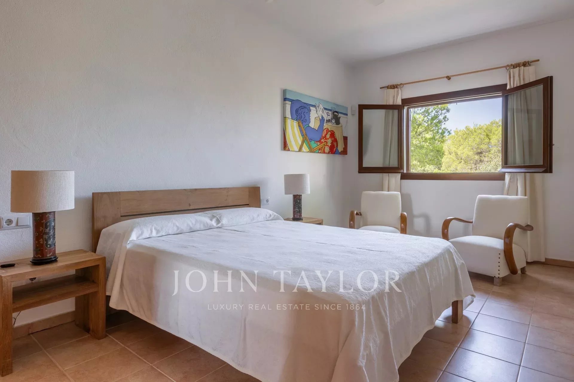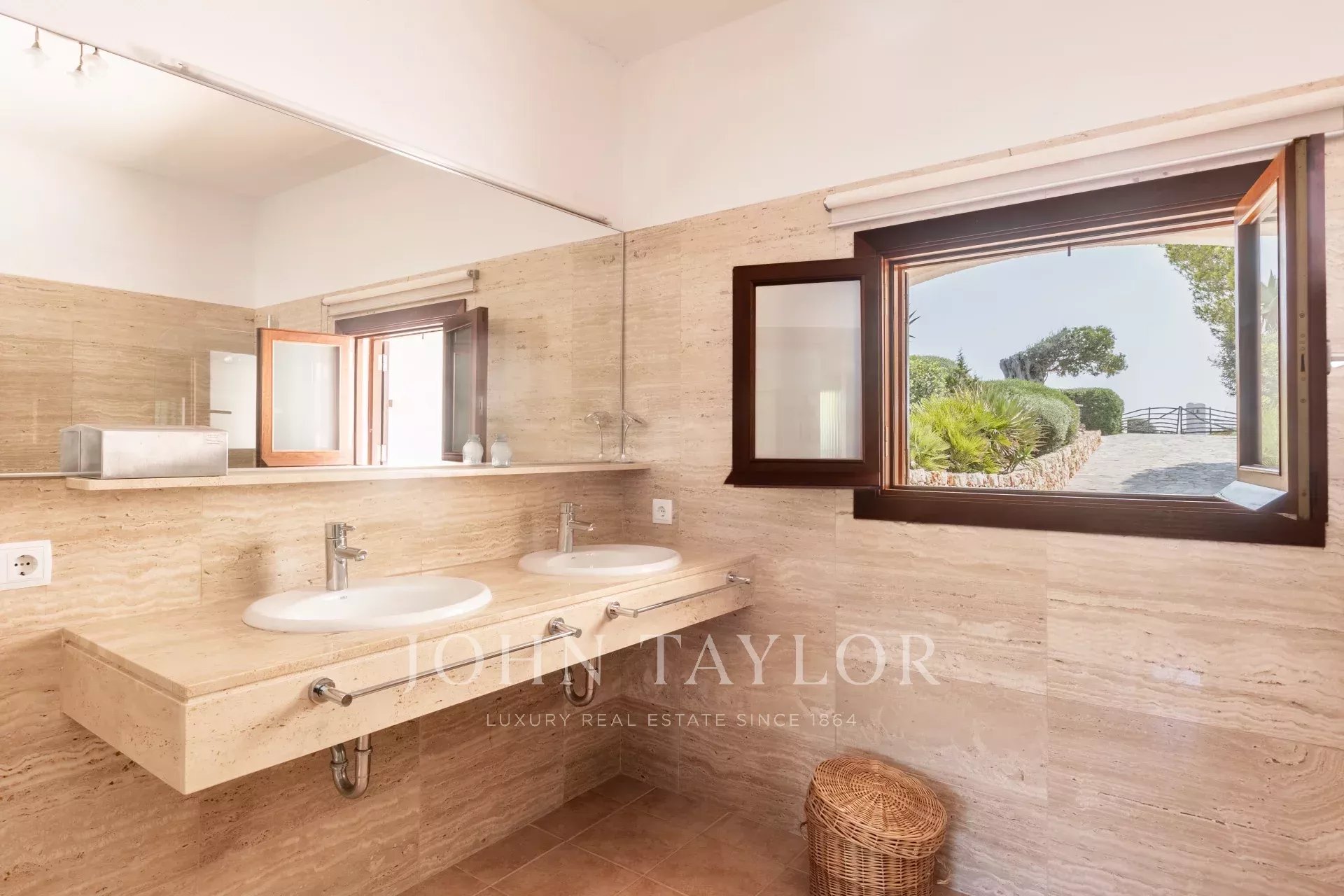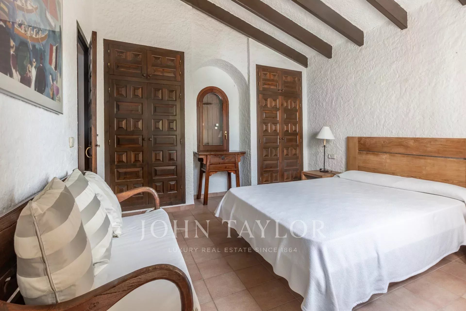 La casa principal tiene un amplio hall de entrada que conduce al comedor y la sala de estar que gozan de una magnífica vista al mar. La cocina grande y funcional da a un lavadero y una terraza cubierta. Tres dormitorios amueblados de calidad con baños en suite completan esta planta. Arriba, el dormitorio principal de aproximadamente 60m2 dispone de un baño con jacuzzi y ducha italiana, un amplio vestidor, dos terrazas con impresionantes vistas y acceso a la azotea con vistas a 360 grados.