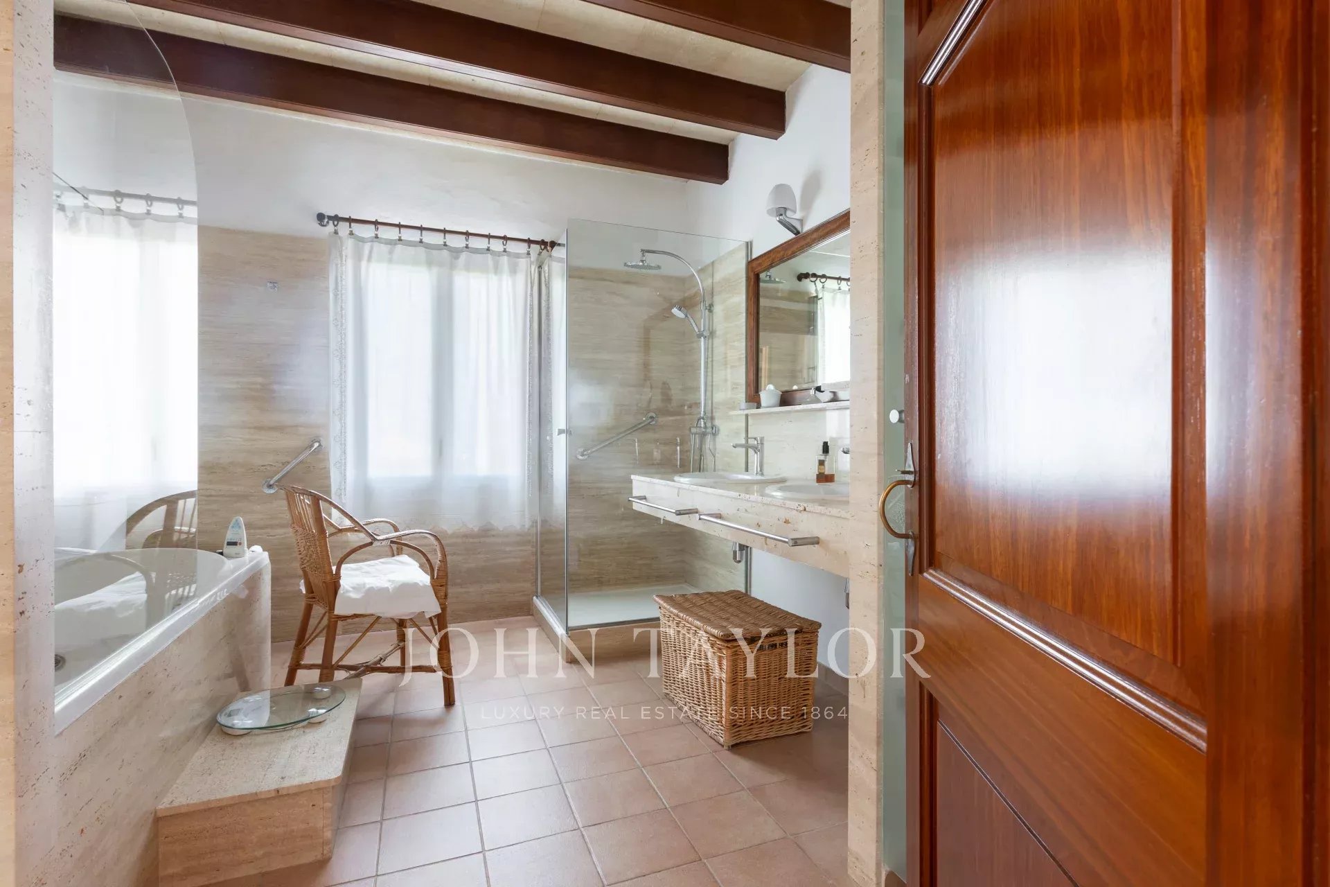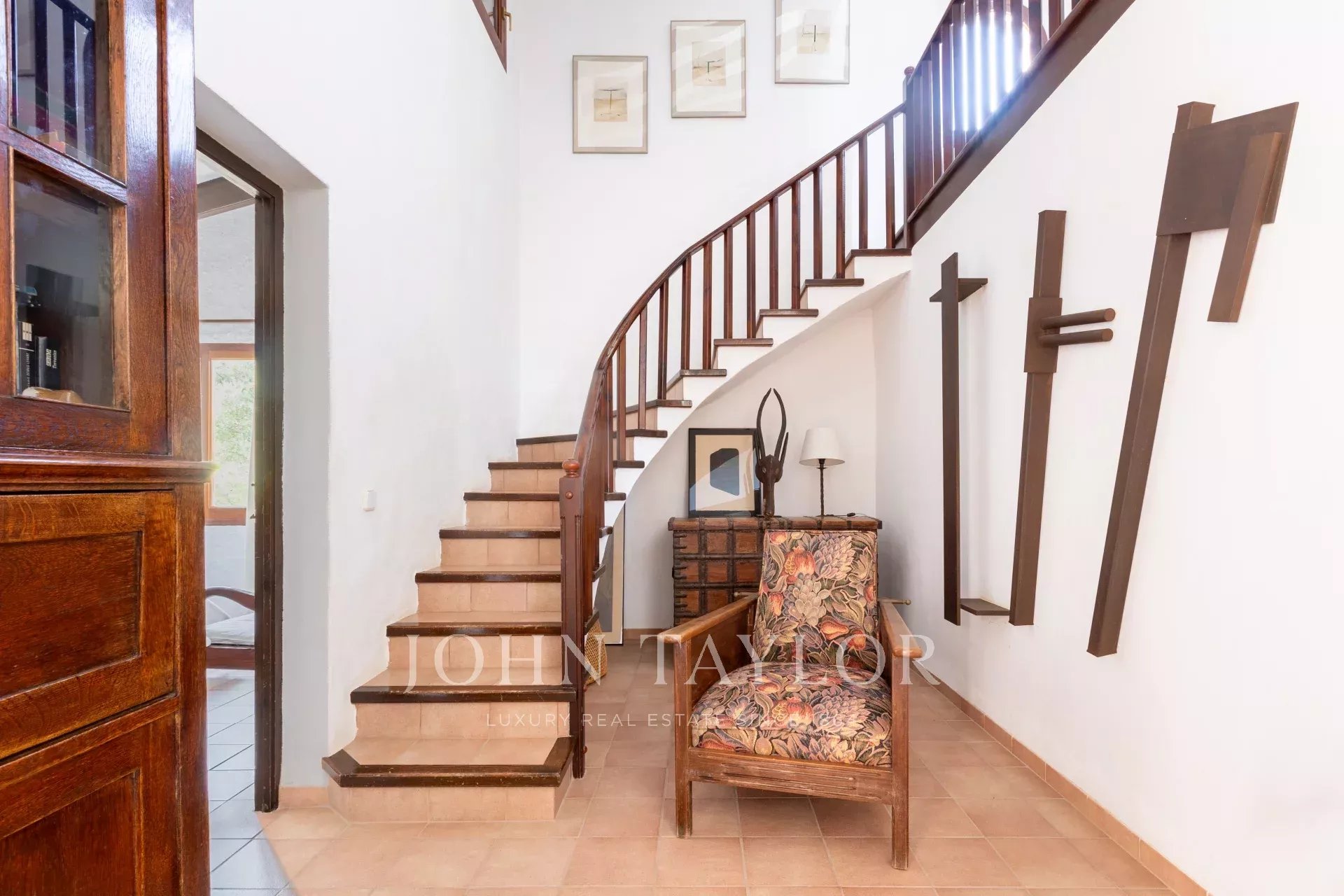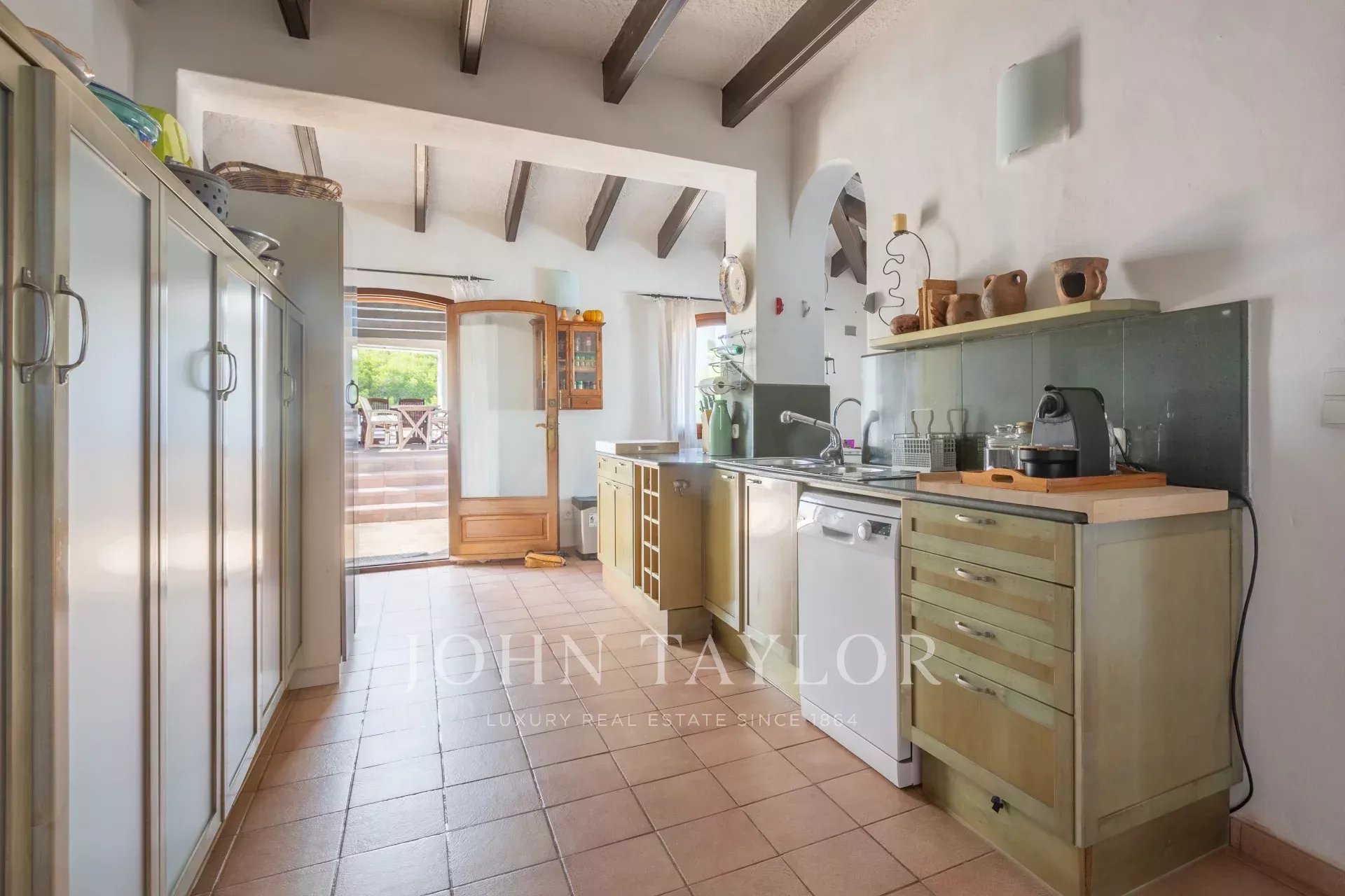 La casa principal tiene un amplio hall de entrada que conduce al comedor y la sala de estar que gozan de una magnífica vista al mar. La cocina grande y funcional da a un lavadero y una terraza cubierta. Tres dormitorios amueblados de calidad con baños en suite completan esta planta. Arriba, el dormitorio principal de aproximadamente 60m2 dispone de un baño con jacuzzi y ducha italiana, un amplio vestidor, dos terrazas con impresionantes vistas y acceso a la azotea con vistas a 360 grados.