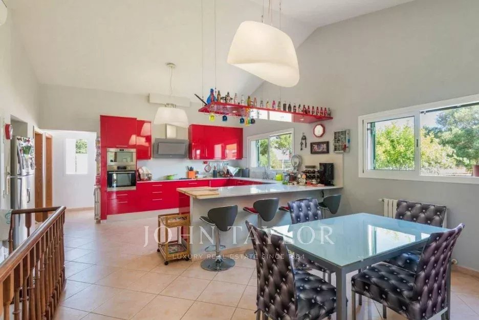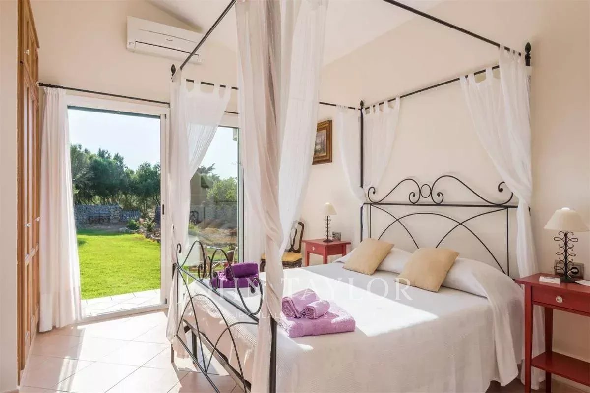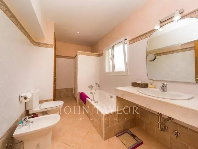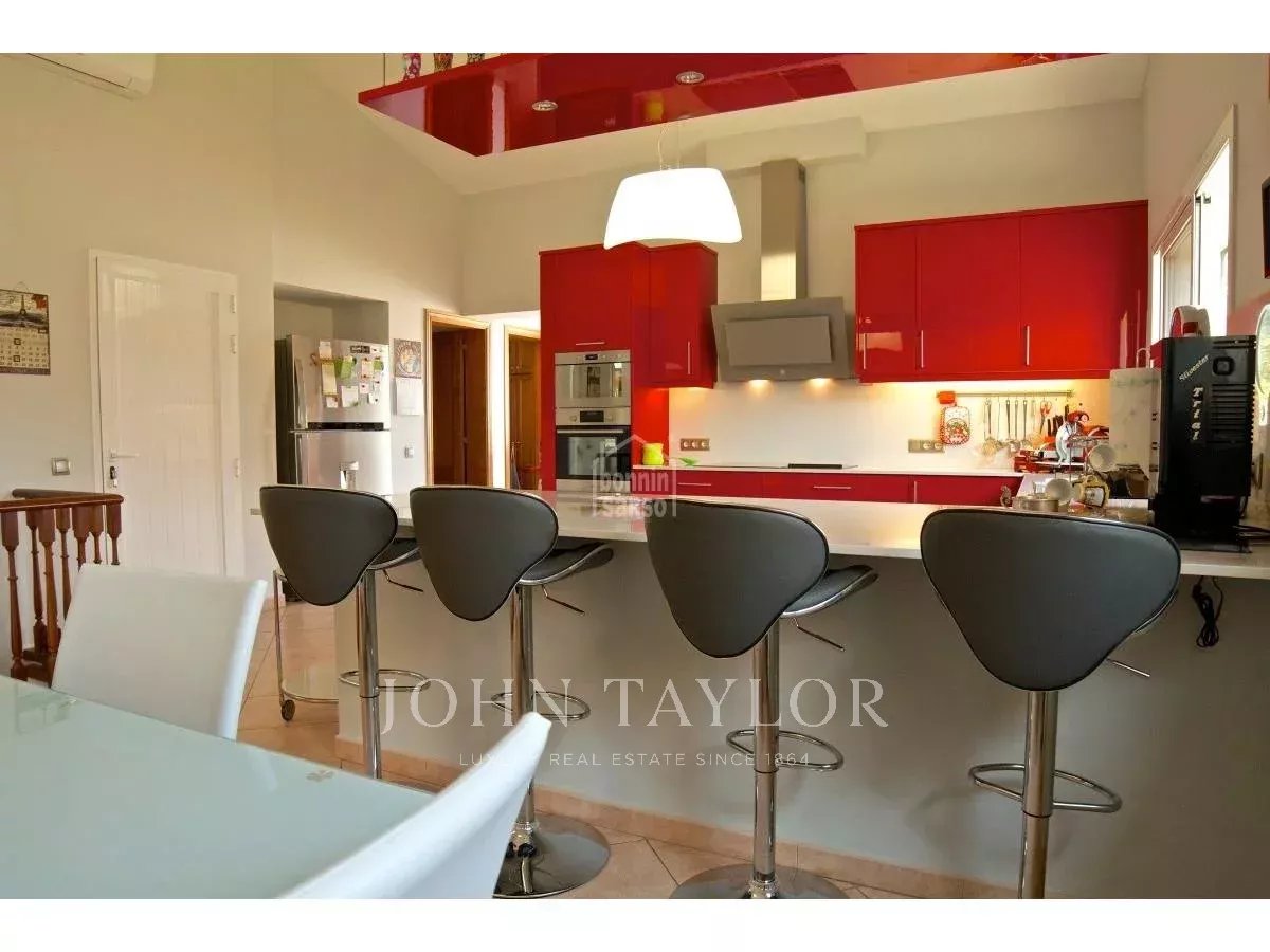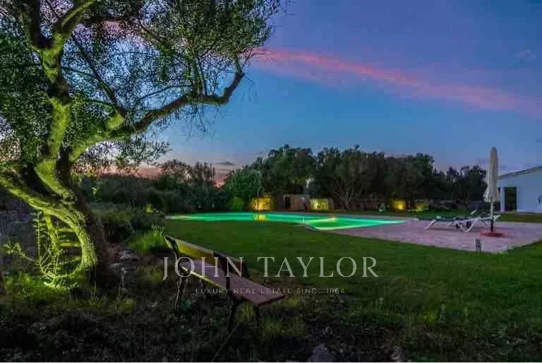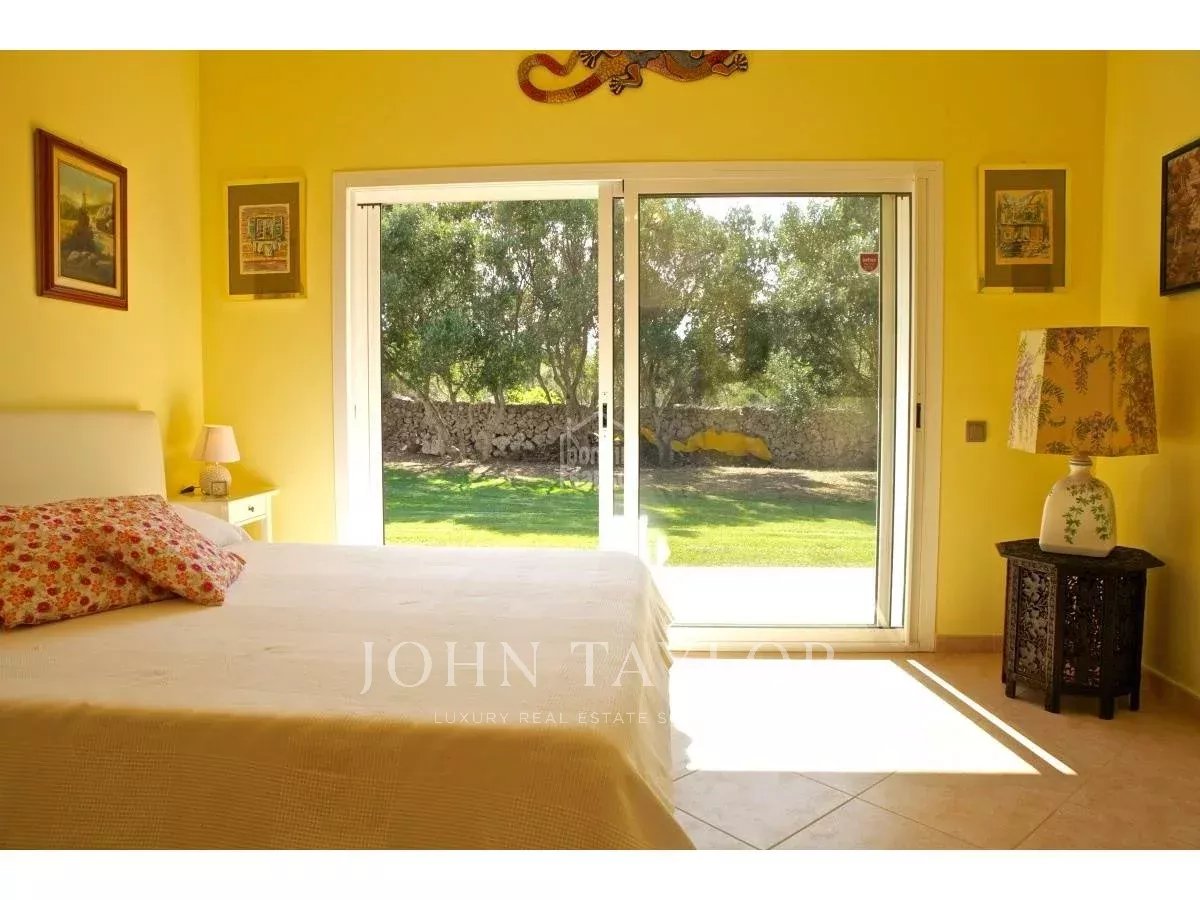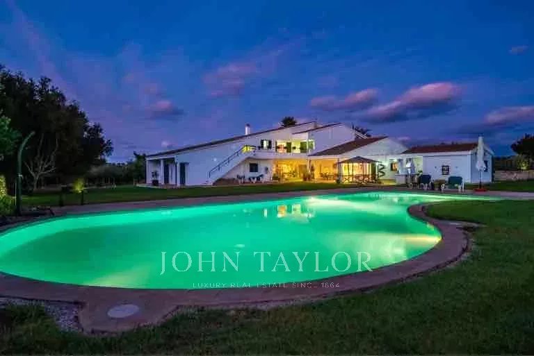 Esta espectacular casa tiene un estilo atemporal, con espacios amplios, luminosos y abiertos. Se encuentra en Trebeluger, cerca de los pueblos de Sant Lluis y Es Castell y de las playas de la costa sur, totalmente inmersa en el campo; en plena naturaleza menorquina. Rodeada de una parcela de 19.535 m2 que la mantiene fuera de la vista, la propiedad ofrece un total de siete dormitorios dobles, todos con armarios empotrados, cuatro de ellos en suite, seis baños, un aseo de invitados, un gran salón con chimenea, un amplio comedor y una espaciosa cocina con despensa y bodega. Dos master suites en la primera planta ofrecen espectaculares vistas del Talaiot Trebalúger. La propiedad tiene un anexo con dormitorio y baño para el personal y un amplio garaje para cuatro coches.