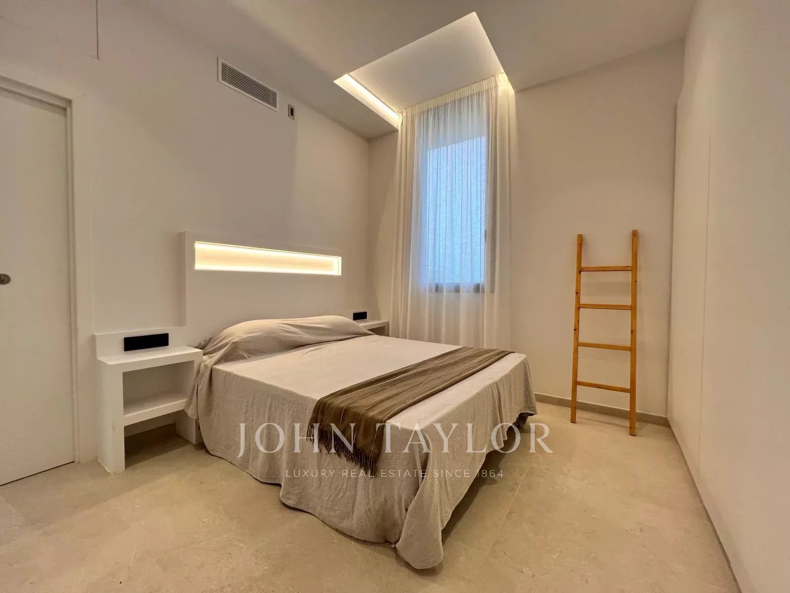 En la planta superior, que goza de unas vistas espectaculares, encontramos el salón y la cocina abierta con 70 m2 y con ventanales de suelo a techo en la zona de estar, de unos 3 metros y medio de altura, y ventanas de más de media altura que se abren hacia la bocana del puerto y la fortaleza de La Mola. Dispone de un amplio cuarto dormitorio más un baño completo con ducha. Toda la carpintería exterior es a medida y con grosor de seguridad y antibalas y marca Technal.