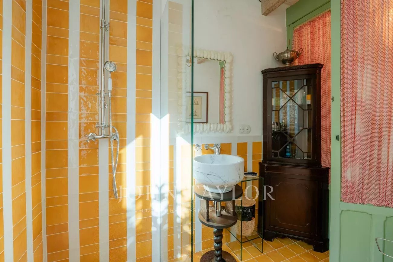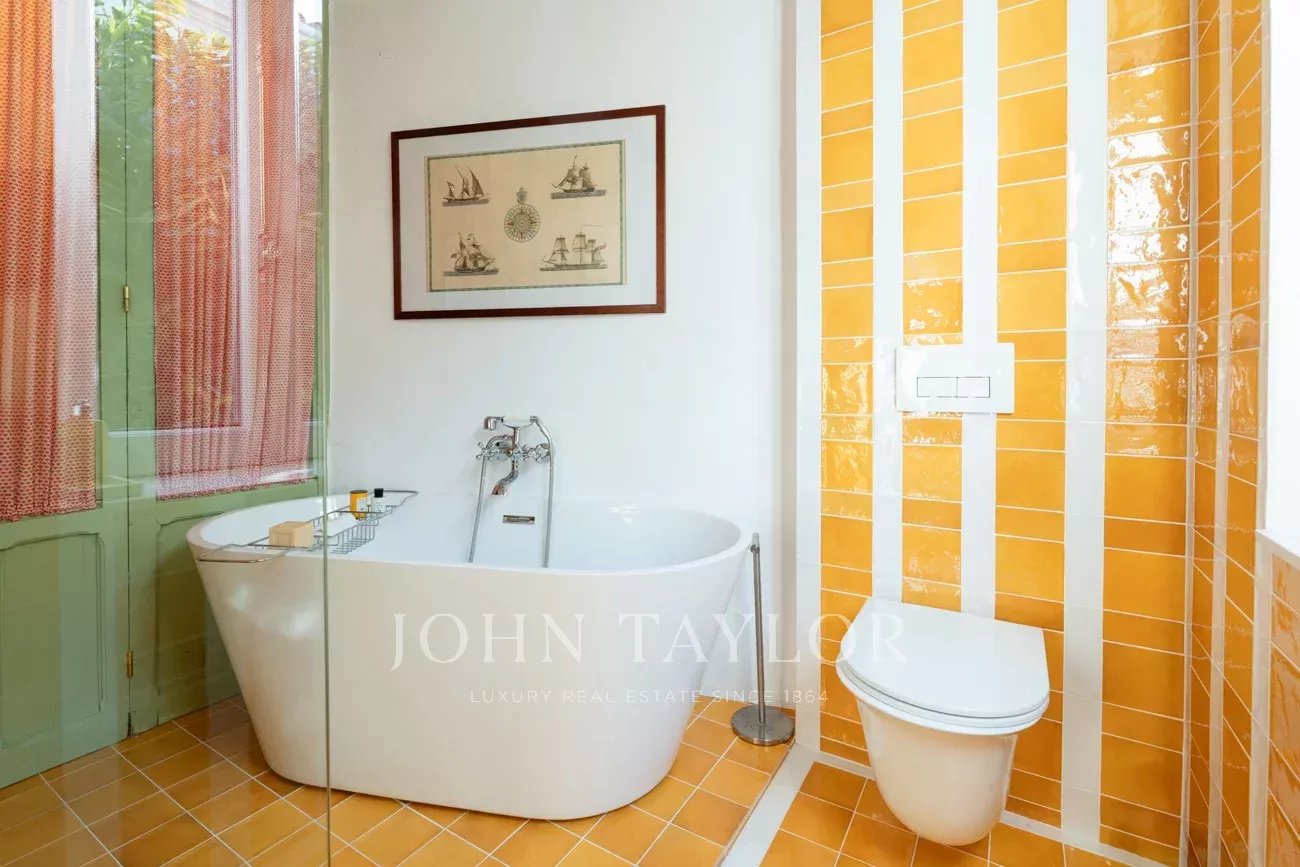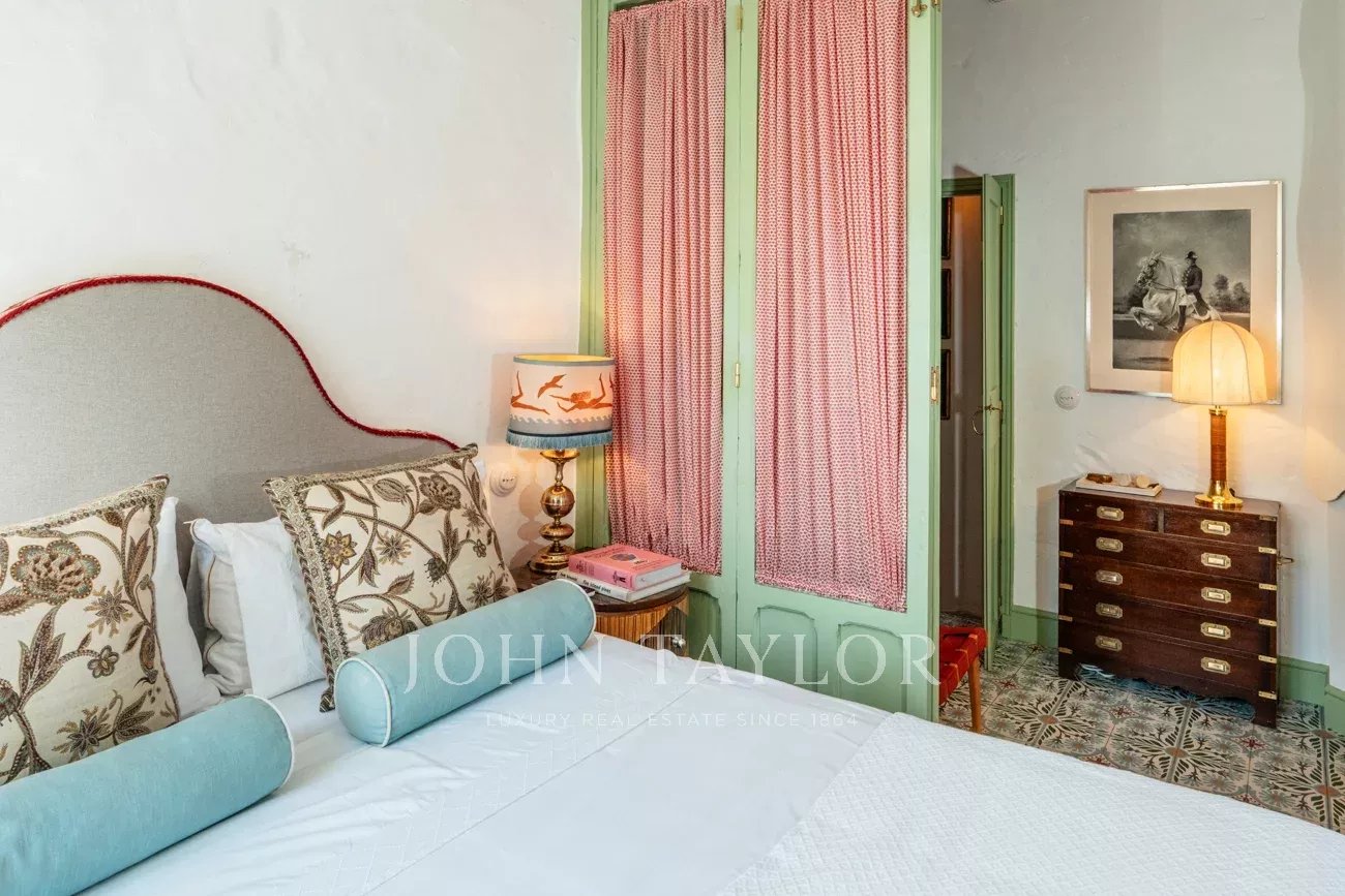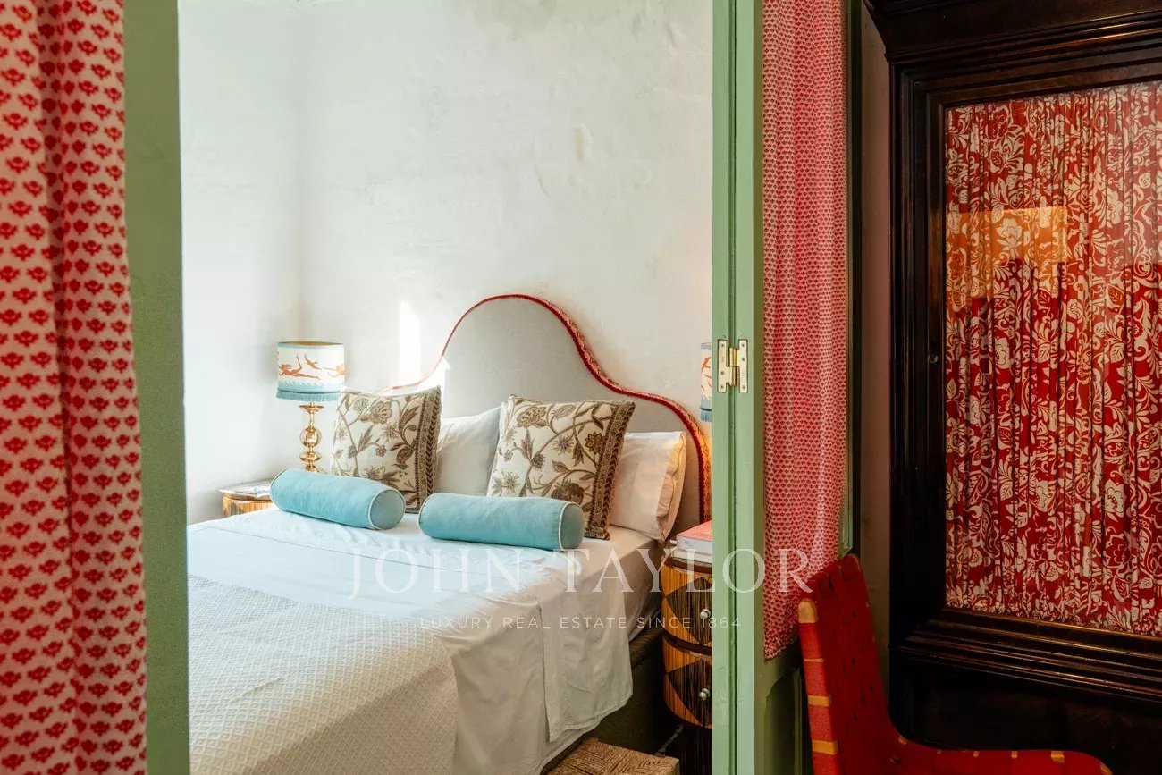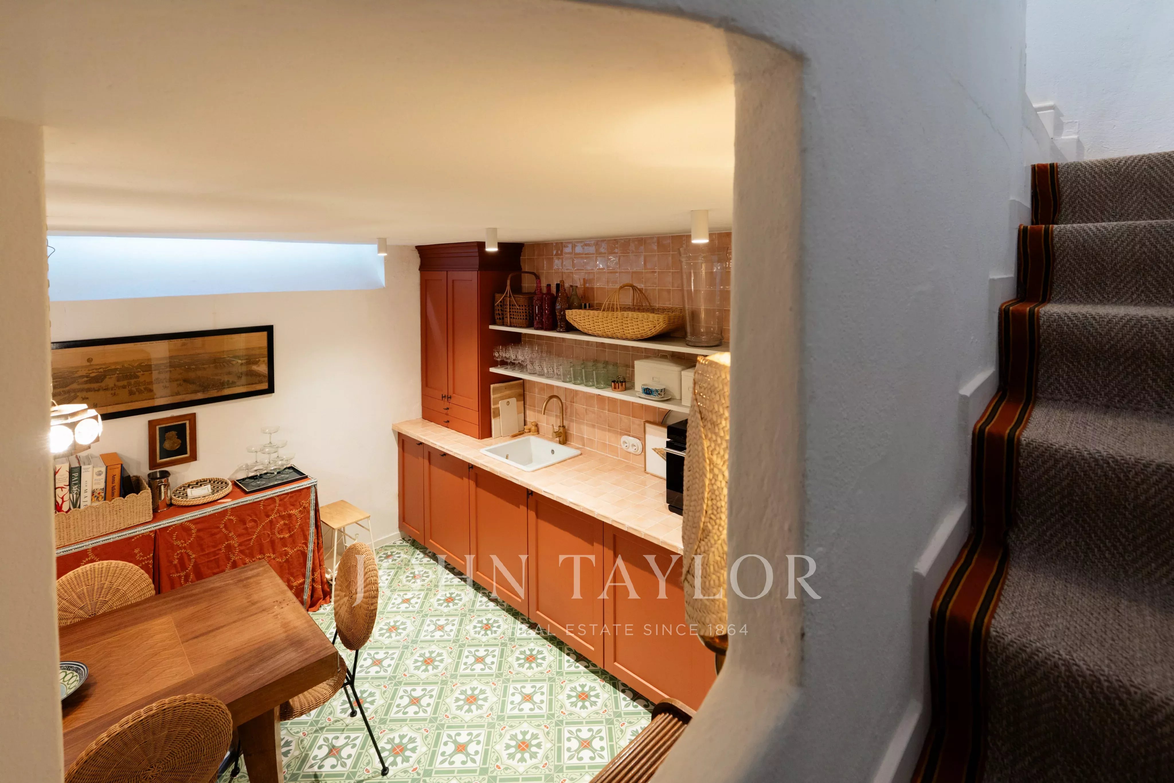 La vivienda ha sido cuidadosamente restaurada por el arquitecto e interiorista Jean Porsche, manteniendo el carácter original y combinándolo con un estilo personal refinado. Antigüedades conviven armoniosamente con mobiliario moderno y piezas de arte seleccionadas, mientras que libros, revistas y objetos personales aportan calidez y autenticidad. Cada espacio equilibra confort, funcionalidad y estética, con un cuidado excepcional por el detalle.