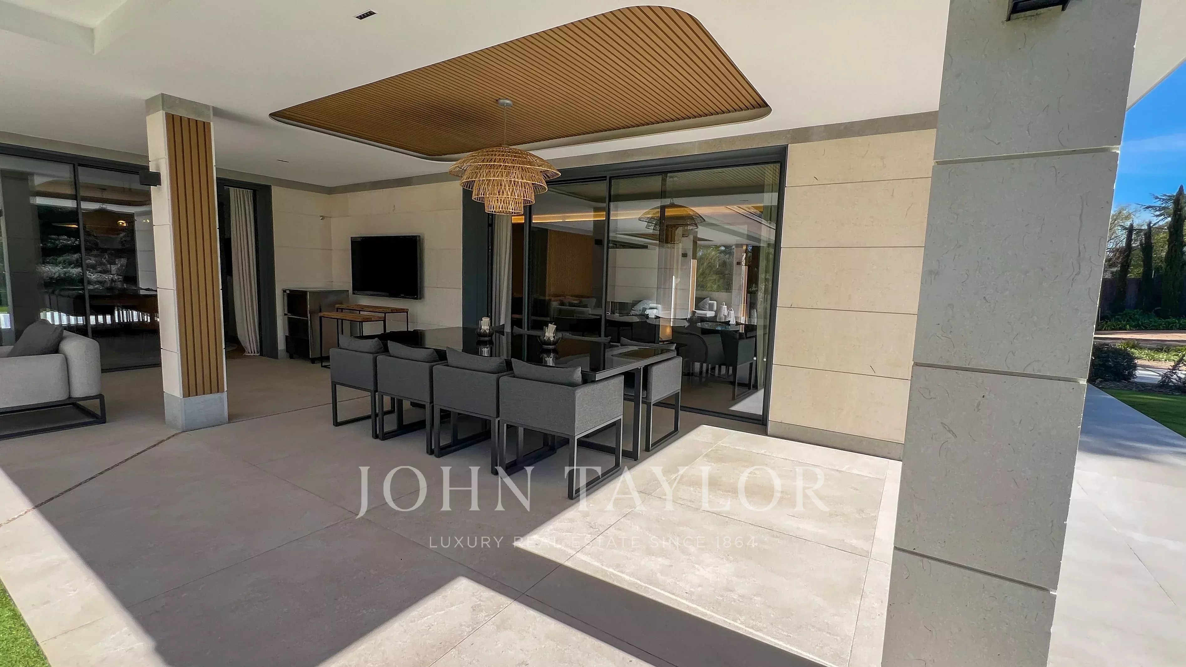 Ubicada en una de las arterias más representativas de La Moraleja, este espectacular chalet de reciente reforma se asienta sobre una magnífica parcela de aproximadamente 2.800 m², ofreciendo cerca de 1.000 m² de superficie interior y más de 100 m² de terrazas cubiertas.