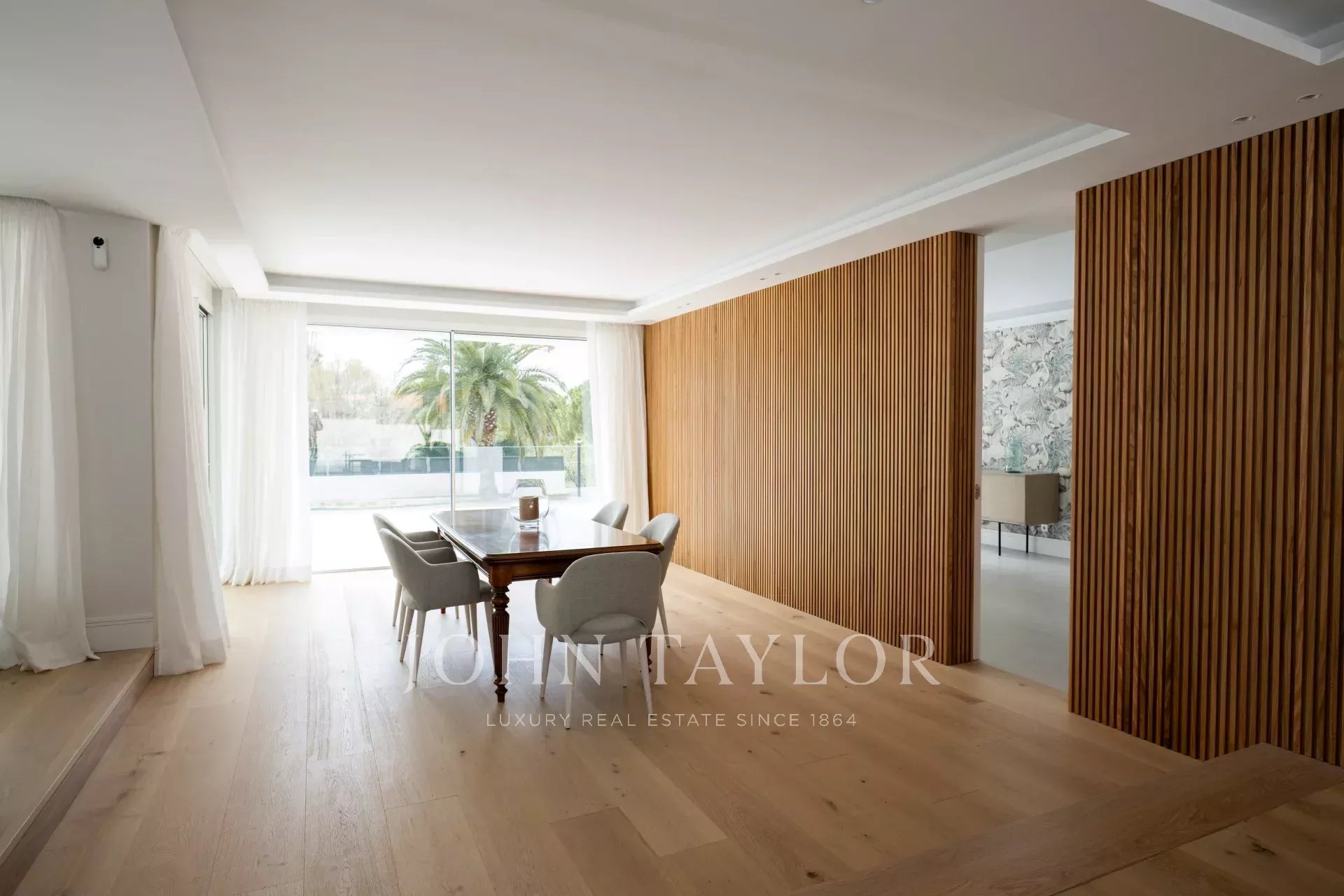 Cabe destacar que toda la vivienda está salpicada de detalles de alto lujo, como las impresionantes puertas de suelo a techo de todas las estancias, los preciosos tiradores de las mismas, el sistema de sonido Bowers&Wilkins que recorre tanto el interior como el exterior del inmueble, los vidrios con elección de privacidad (transparentes u opacos, según decida el cliente), el ascensor que recorre todos los niveles o la iluminación tanto exterior como interior.