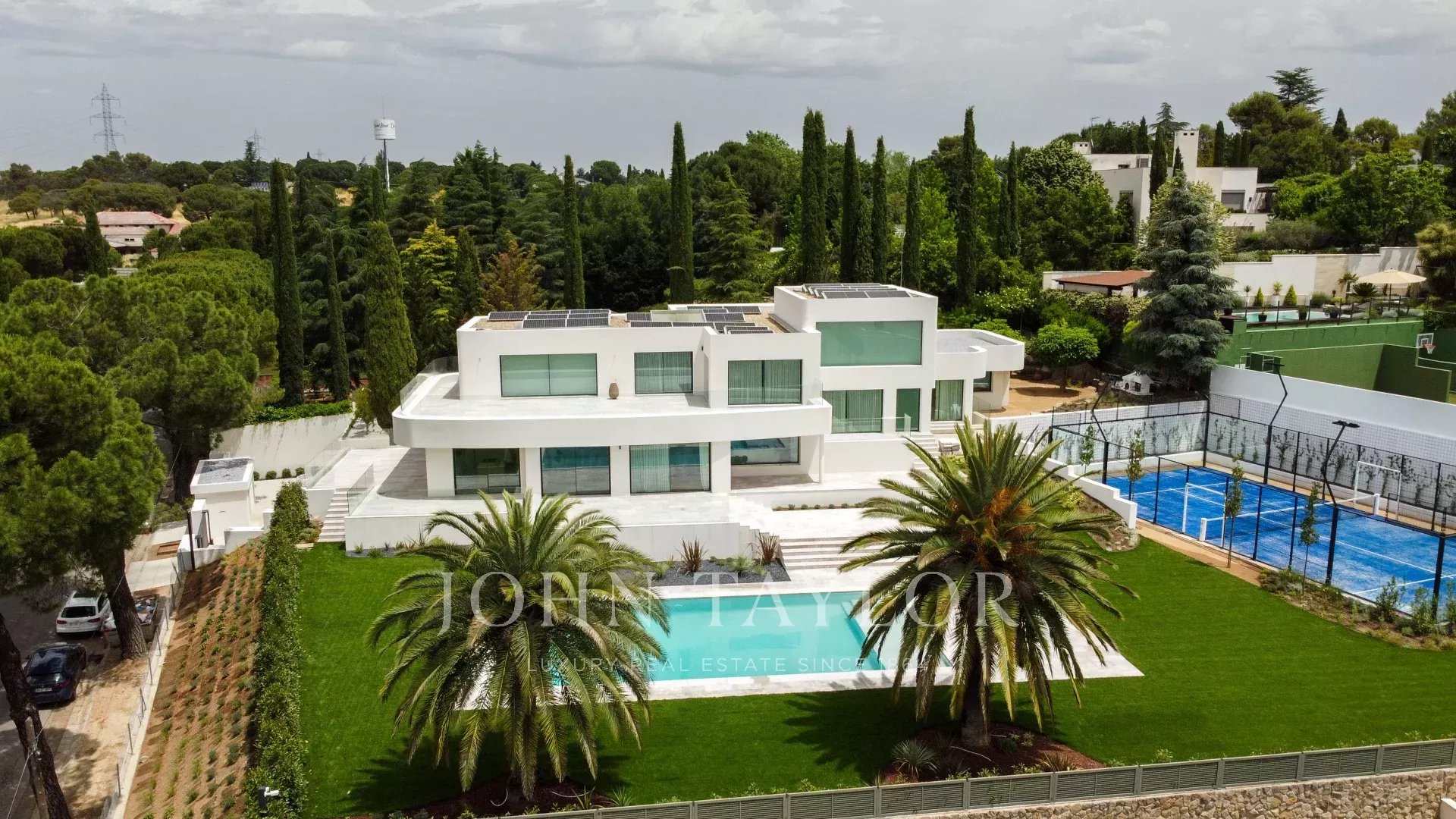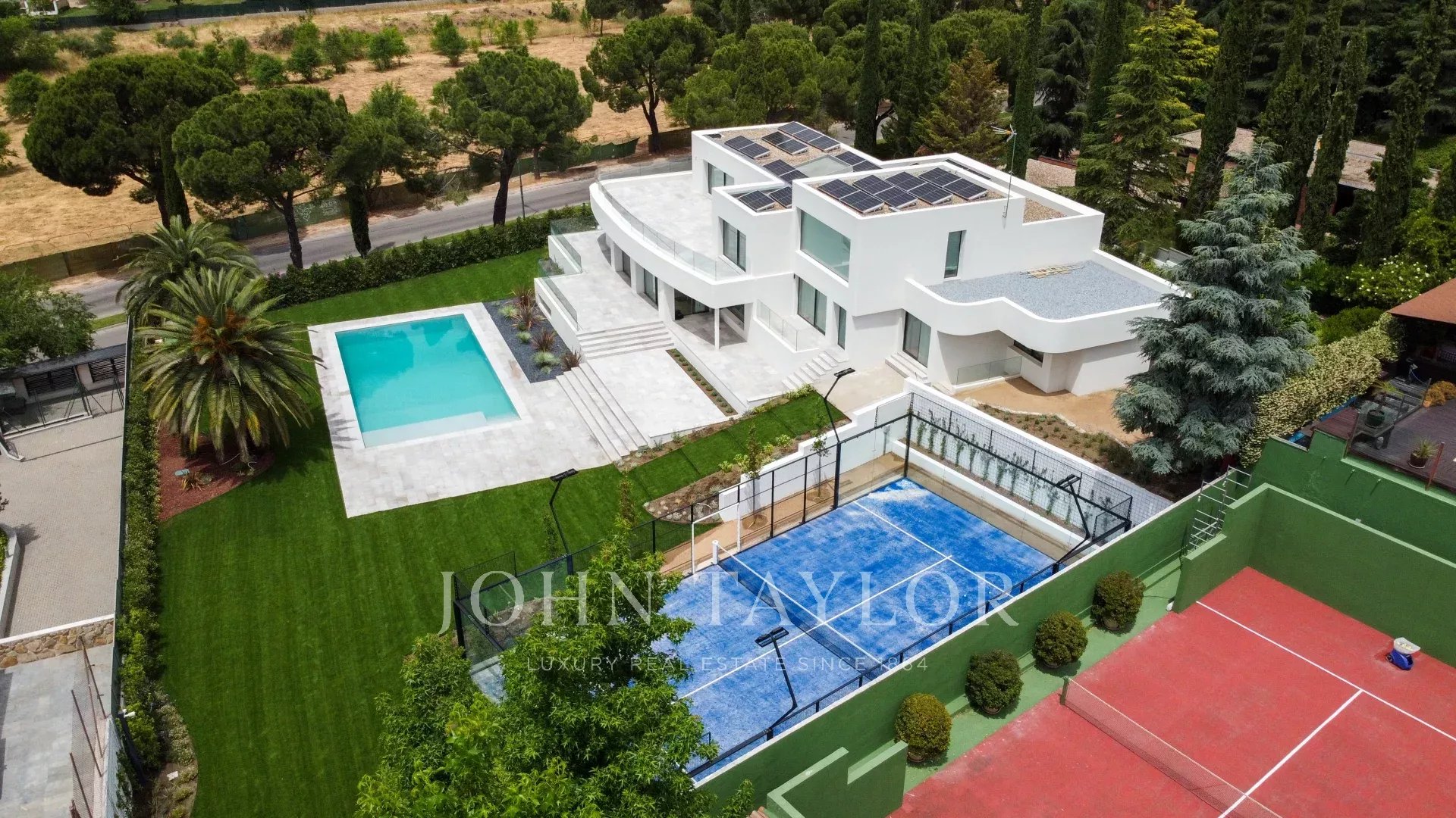 El exterior de la vivienda está presidido por una preciosa piscina de agua salada, amplias zonas de jardín, una zona destinada a la cocina al aire libre (barbacoa y horno) y una pista de pádel profesional.