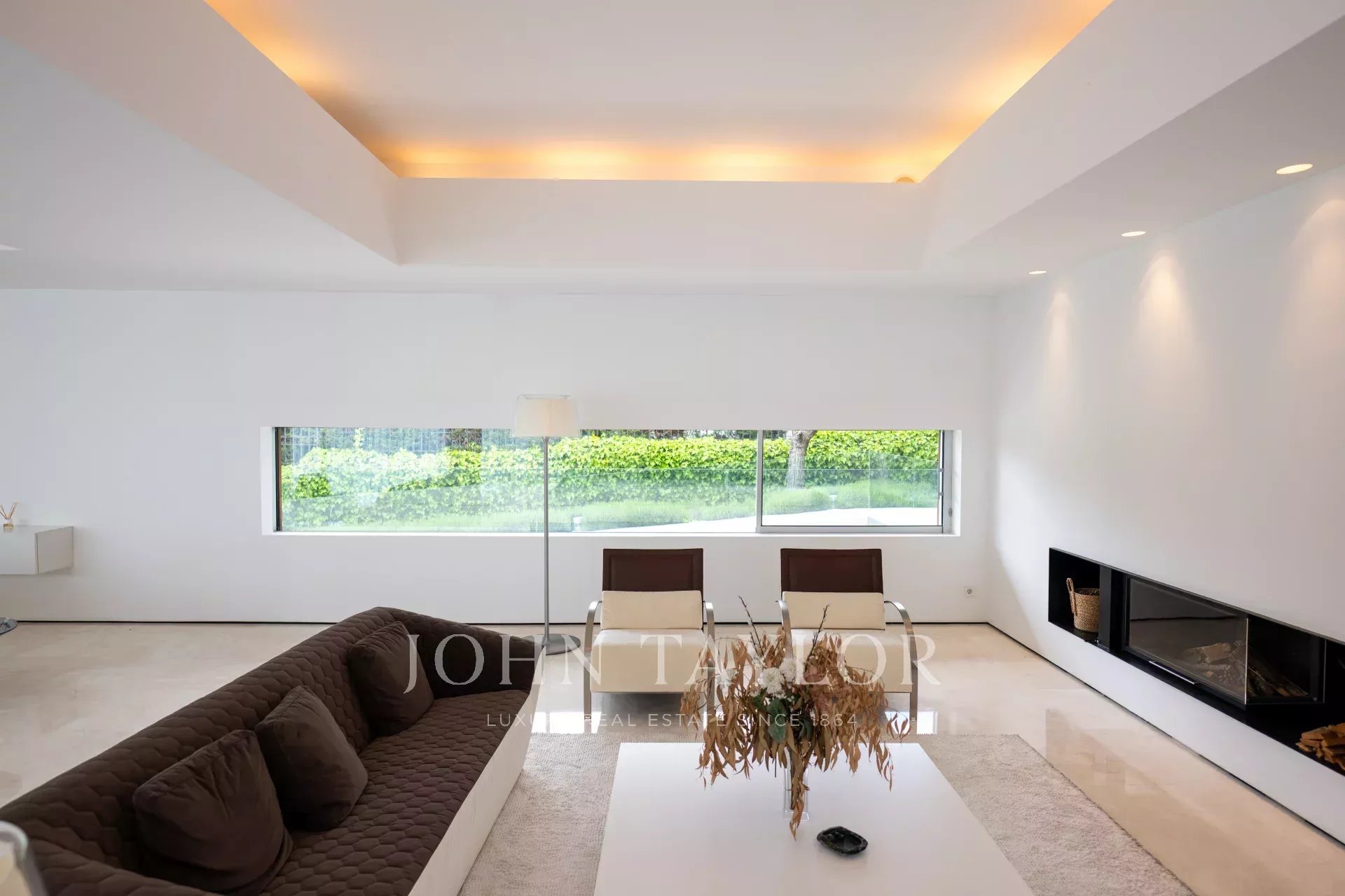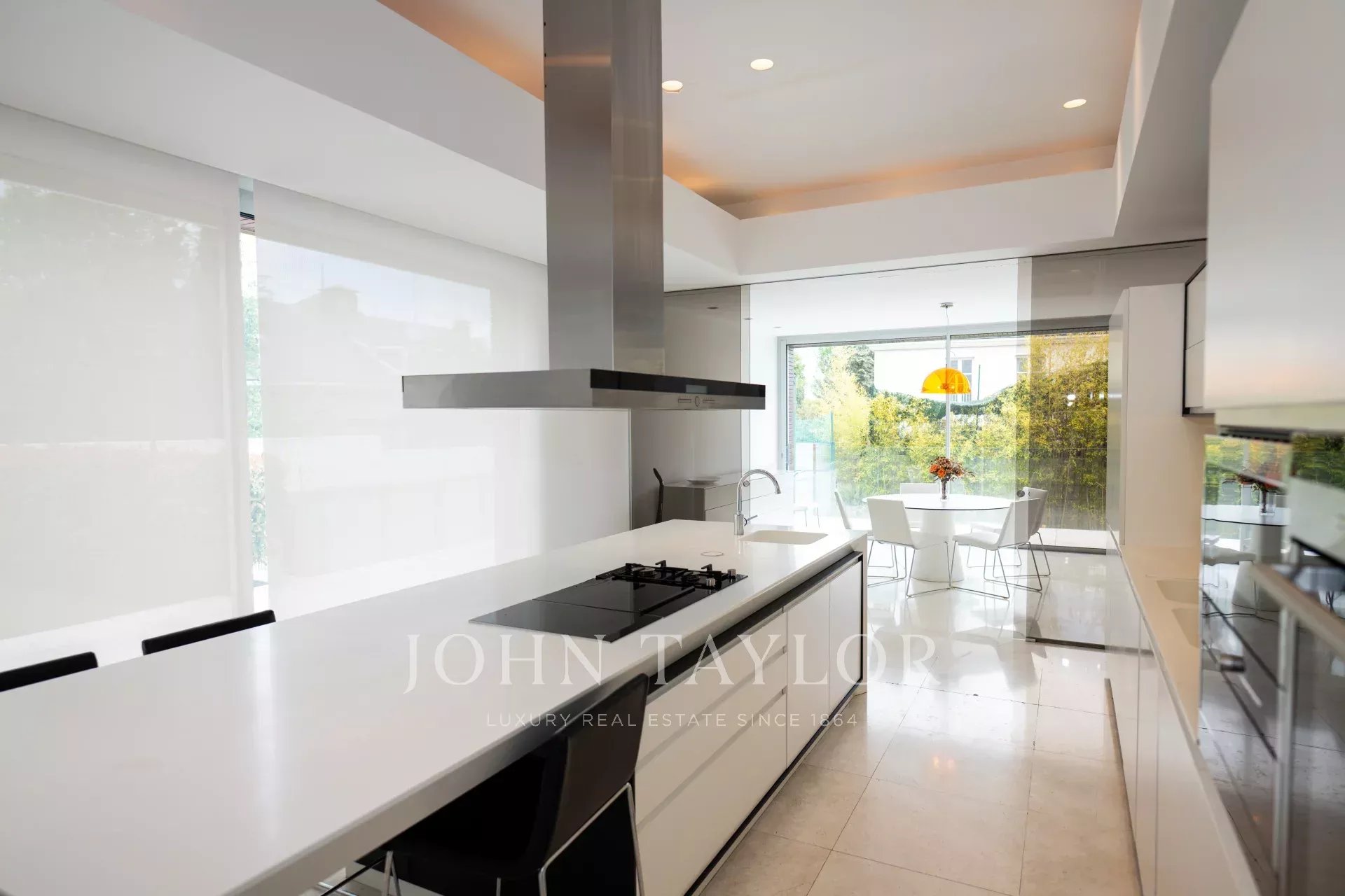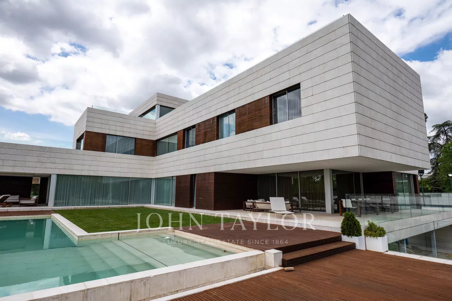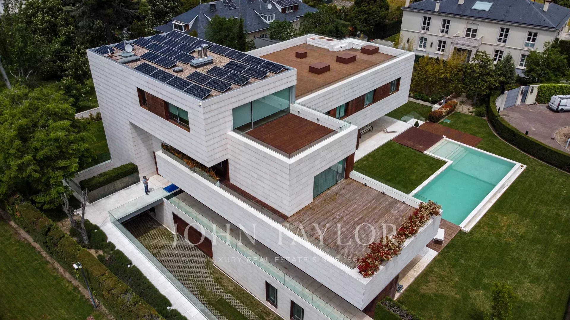 En una amplia parcela que garantiza privacidad y tranquilidad, esta vivienda se despliega en armonía con su entorno. Con líneas modernas y elegantes, sus espacios han sido concebidos para disfrutar de la luz, las vistas y el silencio. Desde los ventanales, se contempla la sierra madrileña, El Pardo, el Palacio de La Zarzuela y las emblemáticas Torres de Madrid. Una panorámica que cambia con las estaciones y regala momentos irrepetibles cada día.