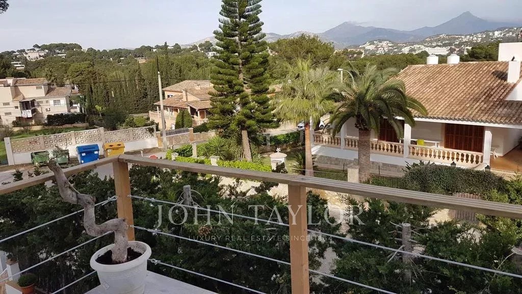 Este romántico chalet fue construido sobre una parcela de aprox. 1090 m2. Se ha reformado en el 2018 y se puede entrar a vivir. La superficie habitable de 175 m2 se distribuye en dos plantas ofreciendo, un salón-comedor muy amplio, lleno de luz con su chimenea, una cocina abierta amueblada y equipada con todos los electrodomésticos, 4 dormitorios, 3 cuartos de baños, uno de ellos en suite, un trastero y un lavadero. En la planta baja se tiene calefacción por suelo radiante eléctrico y adicionalmente calefacción central de gas, ventanas de aluminio de doble cristal en la planta baja, persianas de madera, armarios empotrados y suelos de baldosas porcelánicas. El gran jardín que rodea toda la casa ofrece un gran potencial de rediseño y dispone de terrazas cubiertas y descubiertas, zona de barbacoa y riego automático. Aquí existe la posibilidad de la construcción de una piscina. La ubicación del chalet permite ir andando a la playa y al centro de Santa Ponsa.