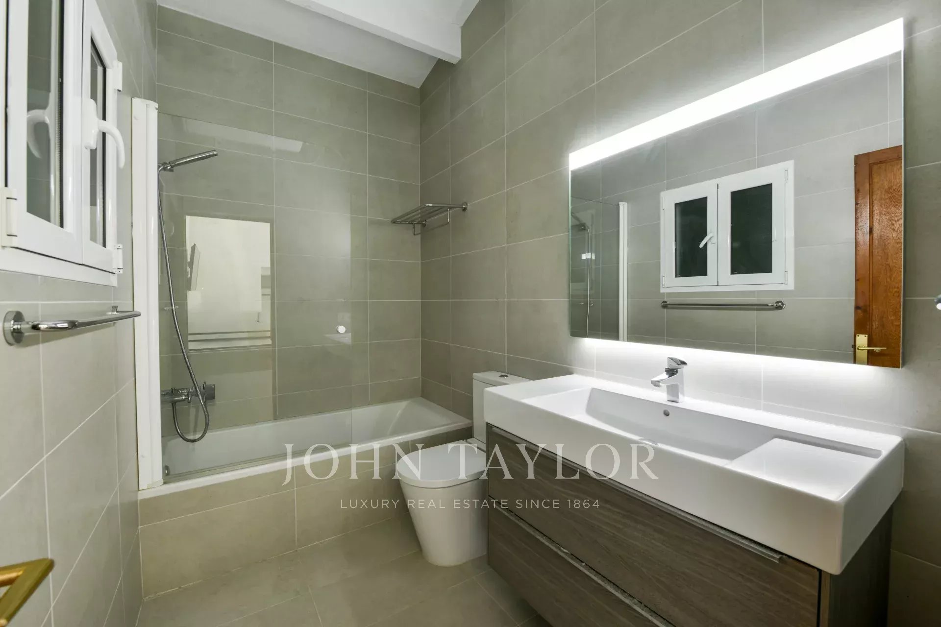 En la planta superior, un generoso espacio diáfano actualmente utilizado como dormitorio puede adaptarse como segunda sala de estar, zona de juegos o estudio, y da acceso a otros dos dormitorios más pequeños, perfectos para invitados o como despacho.