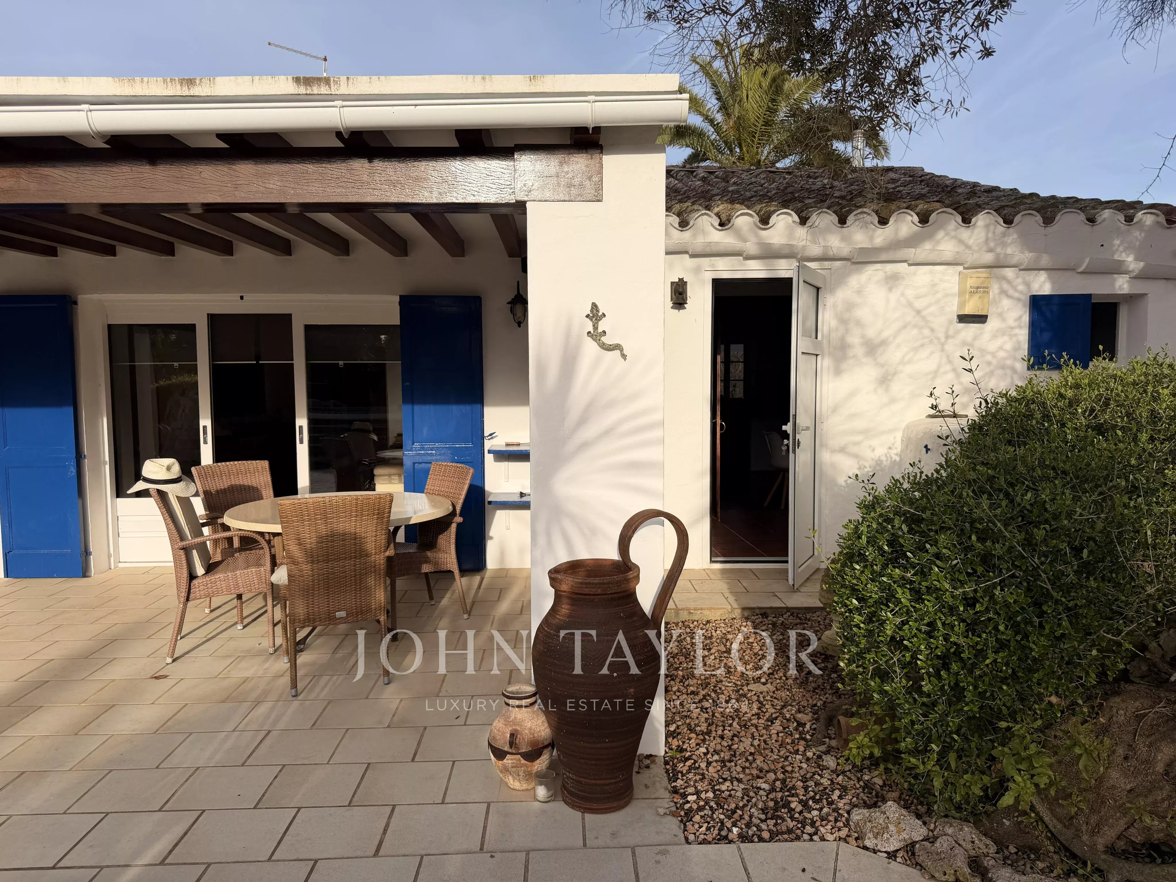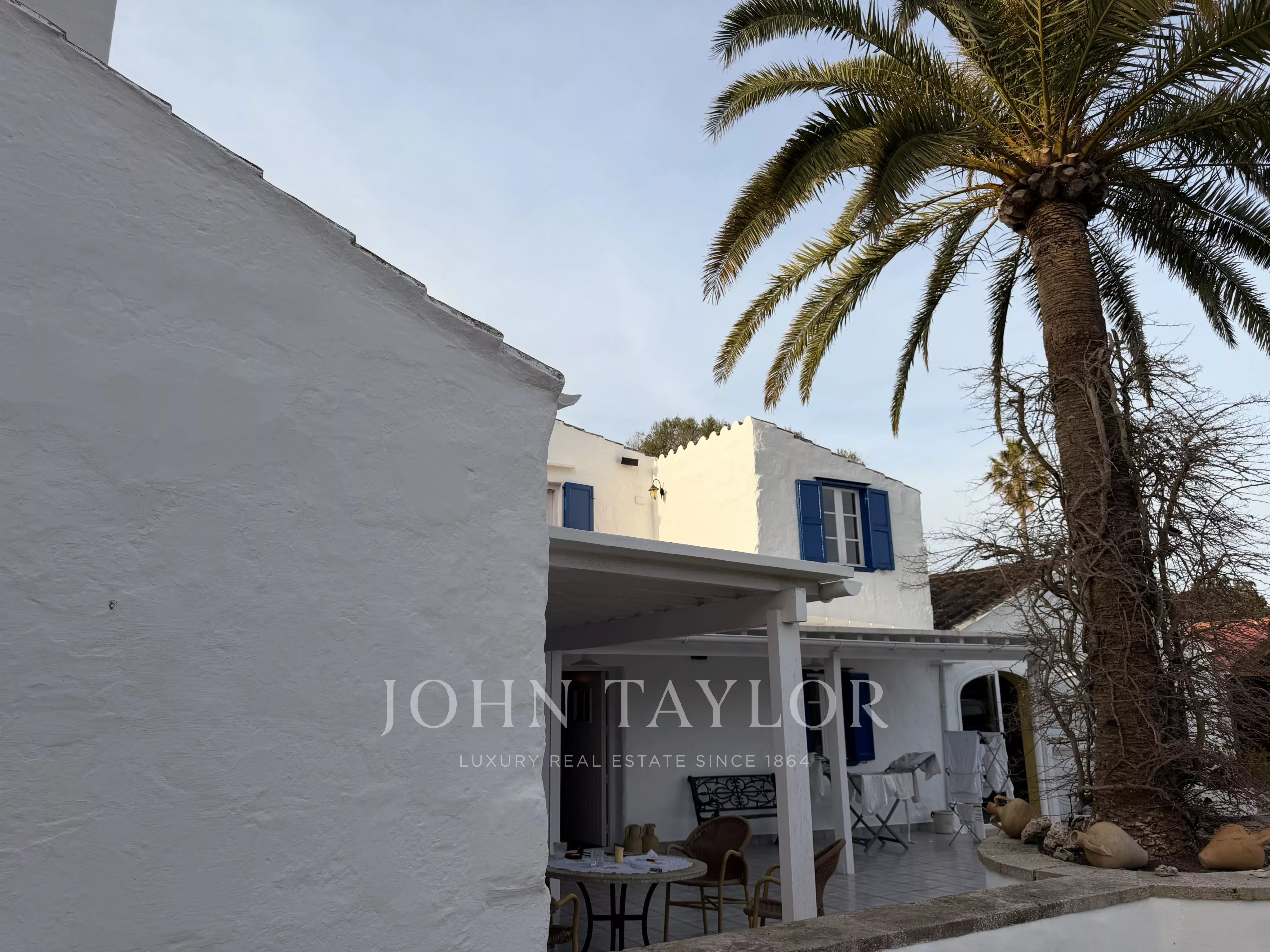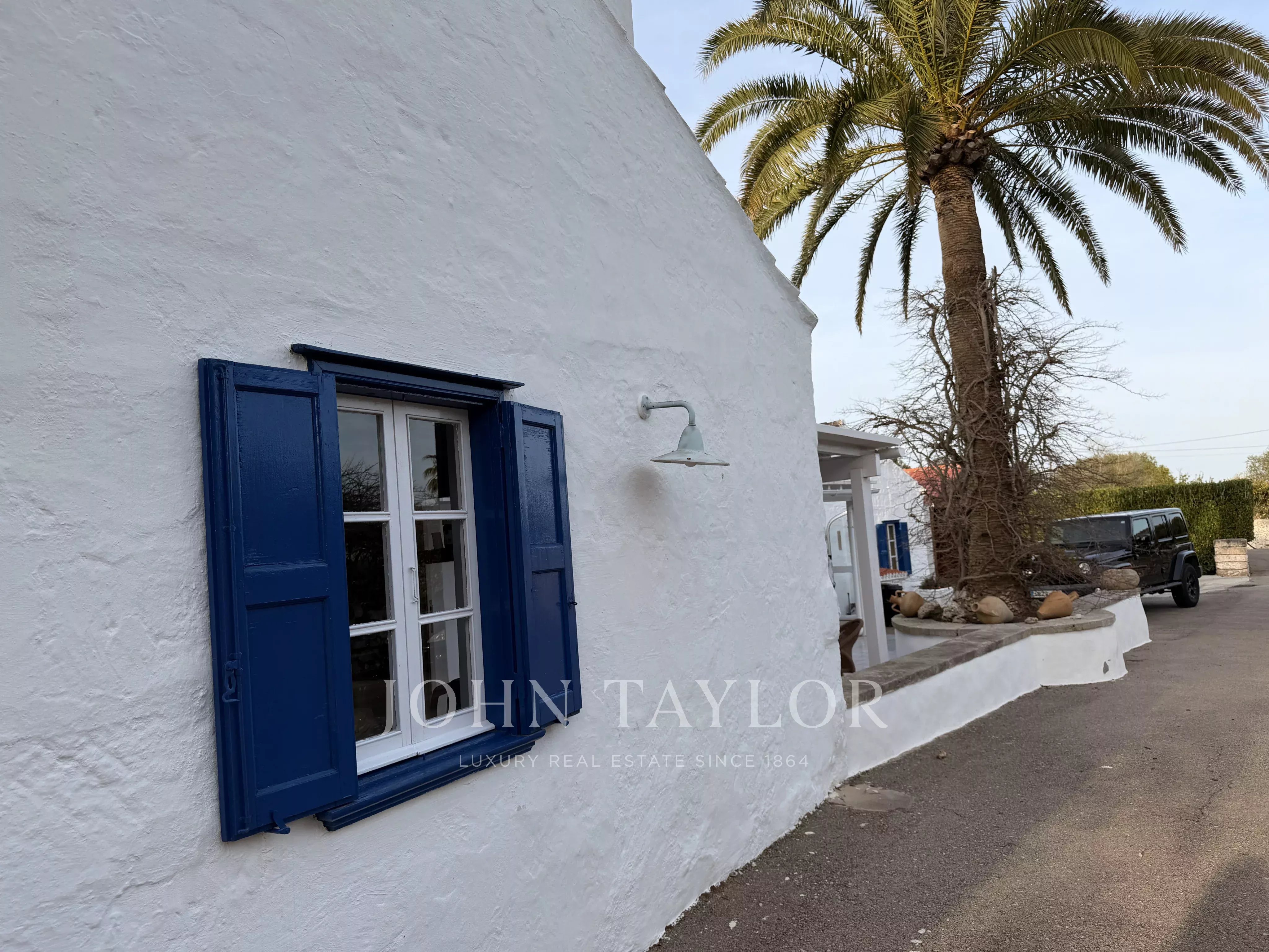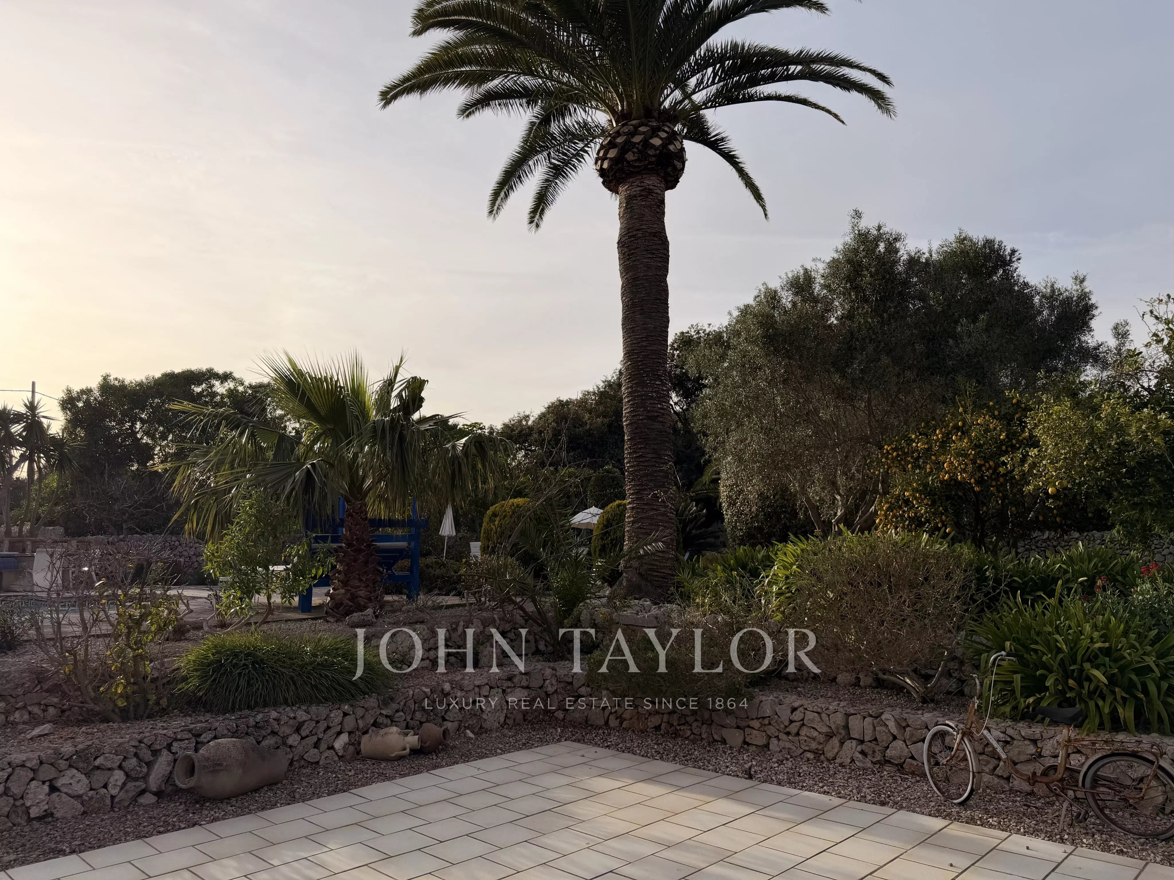 Esta elegante propiedad menorquina, ubicada en Trepucó, con 370 m² construidos entre la vivienda principal y su anexo independiente, se asienta sobre una amplia parcela de 14.156 m² que incluye terrenos agrarios adyacentes y una magnífica piscina privada.