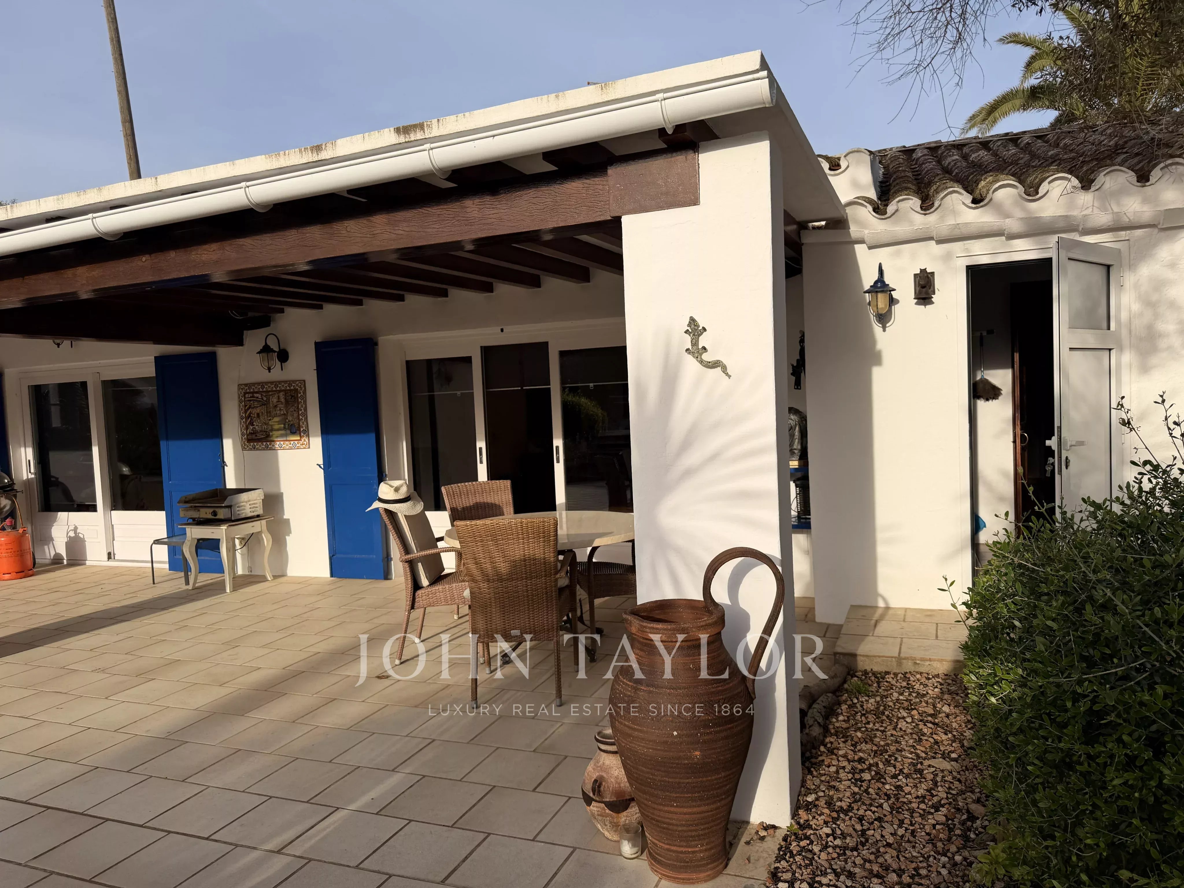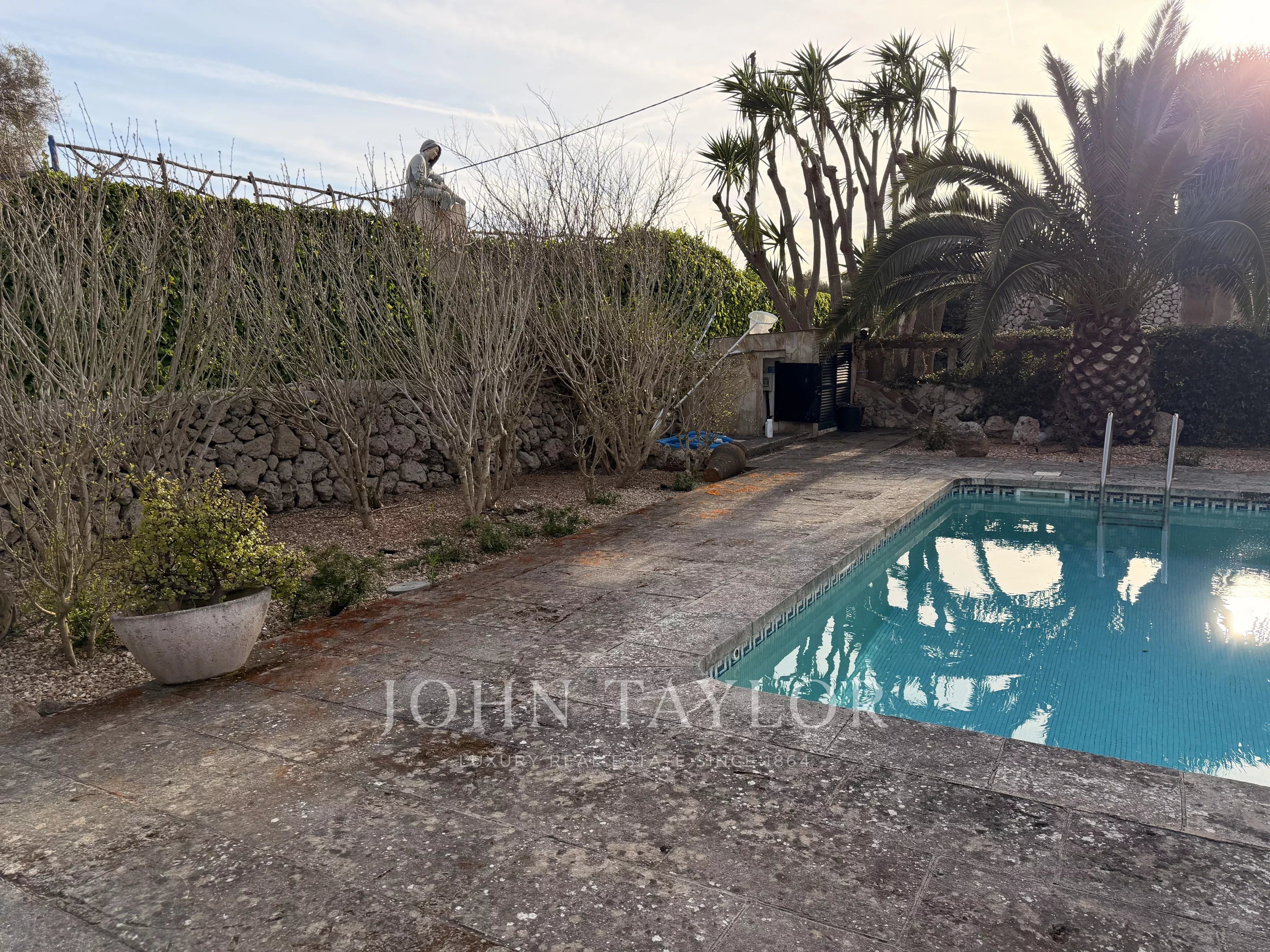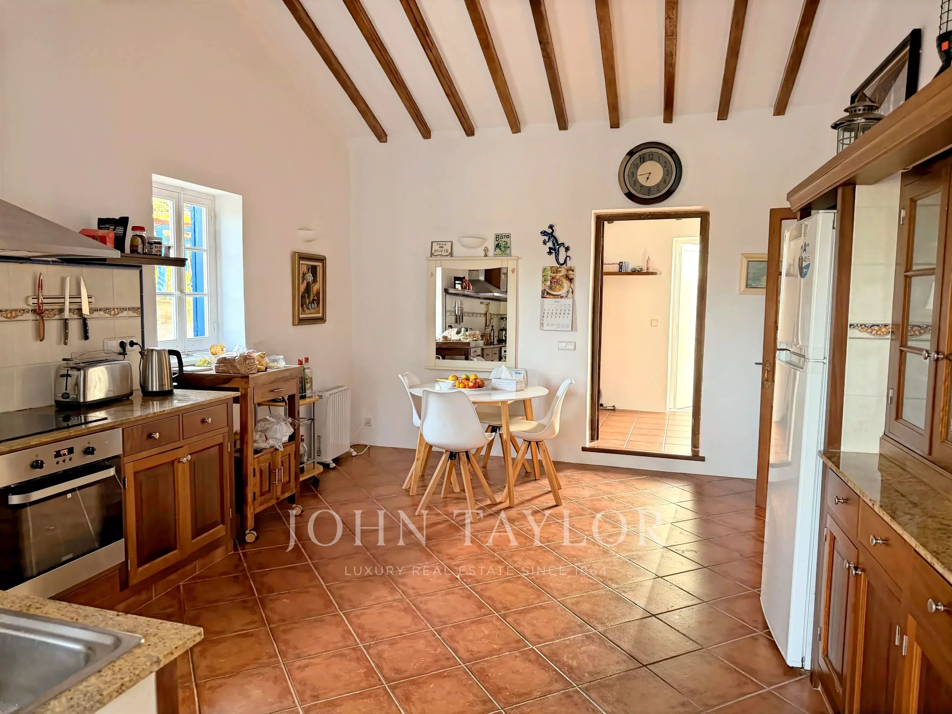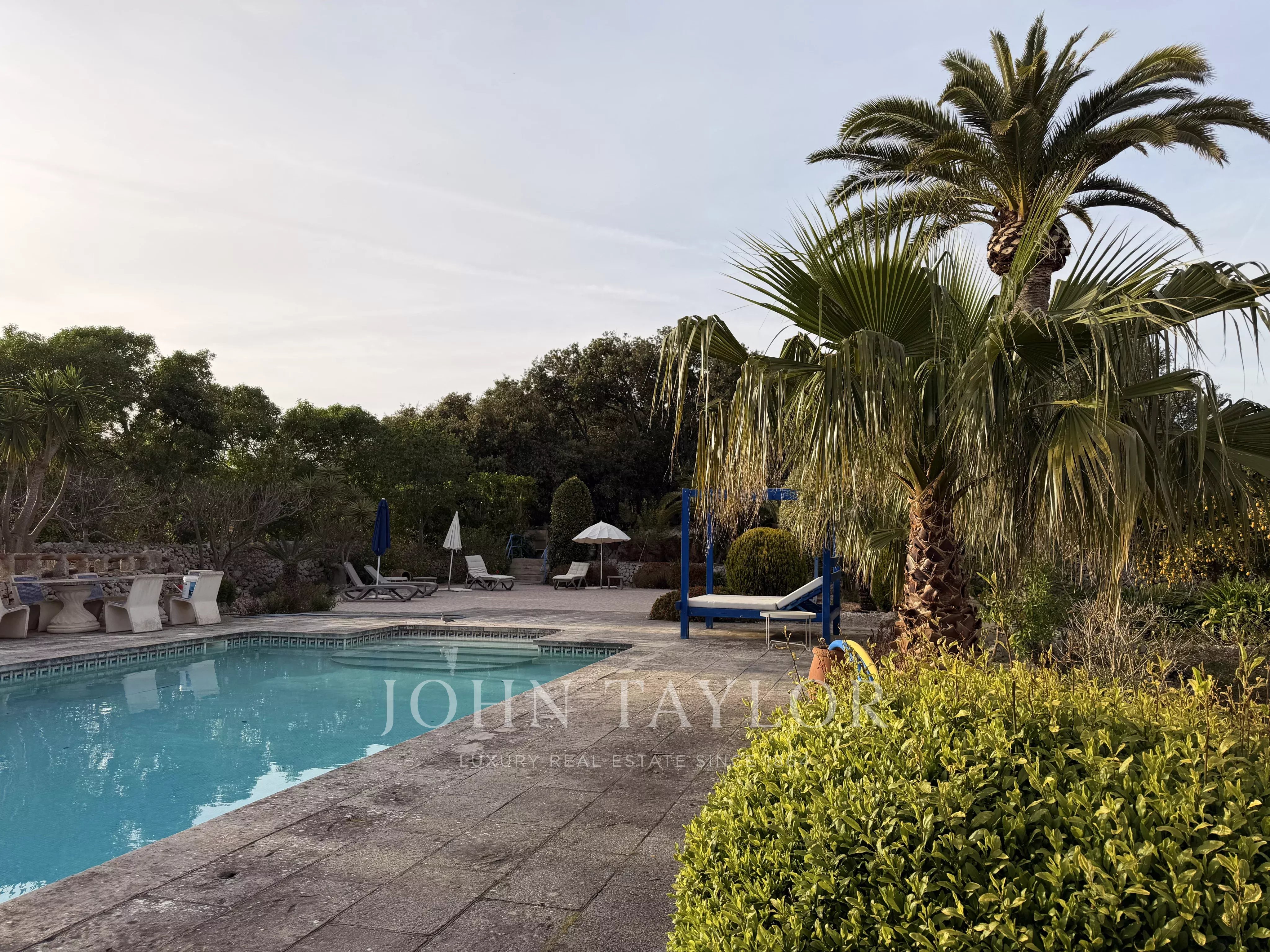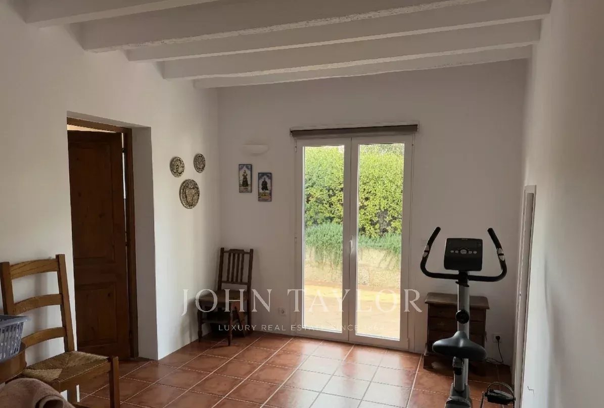Esta elegante propiedad menorquina, ubicada en Trepucó, con 370 m² construidos entre la vivienda principal y su anexo independiente, se asienta sobre una amplia parcela de 14.156 m² que incluye terrenos agrarios adyacentes y una magnífica piscina privada.