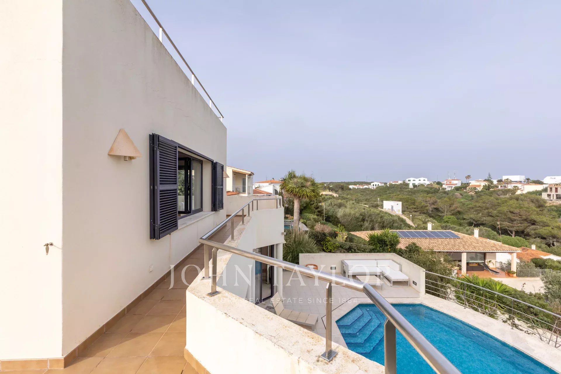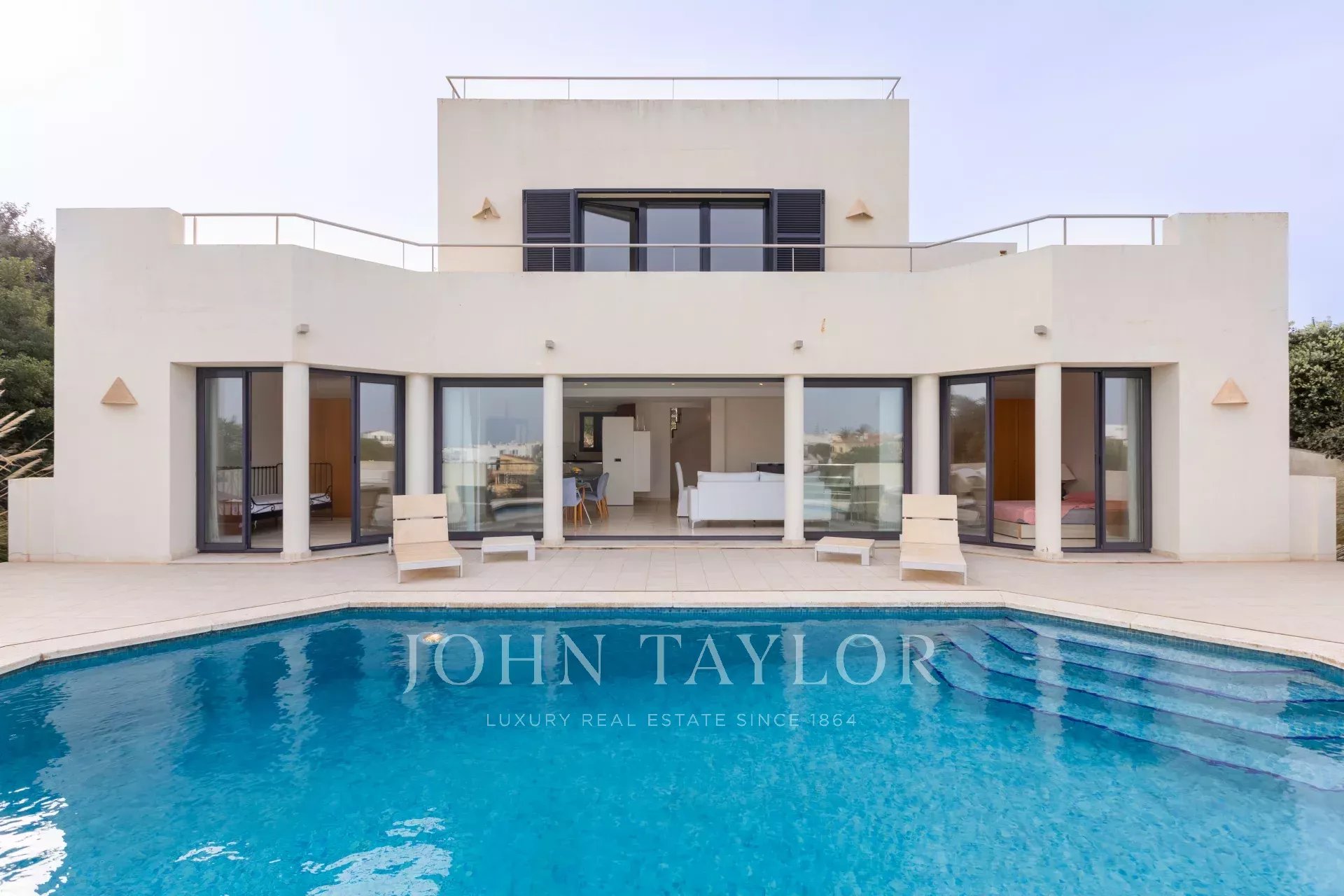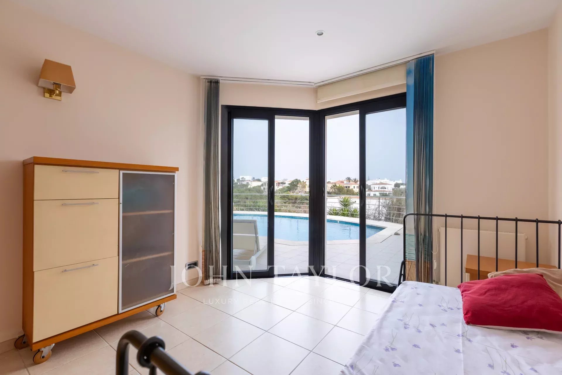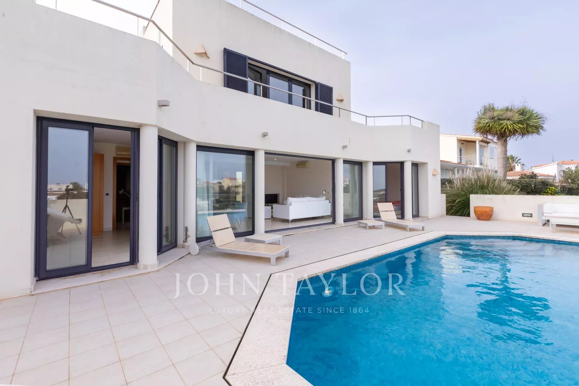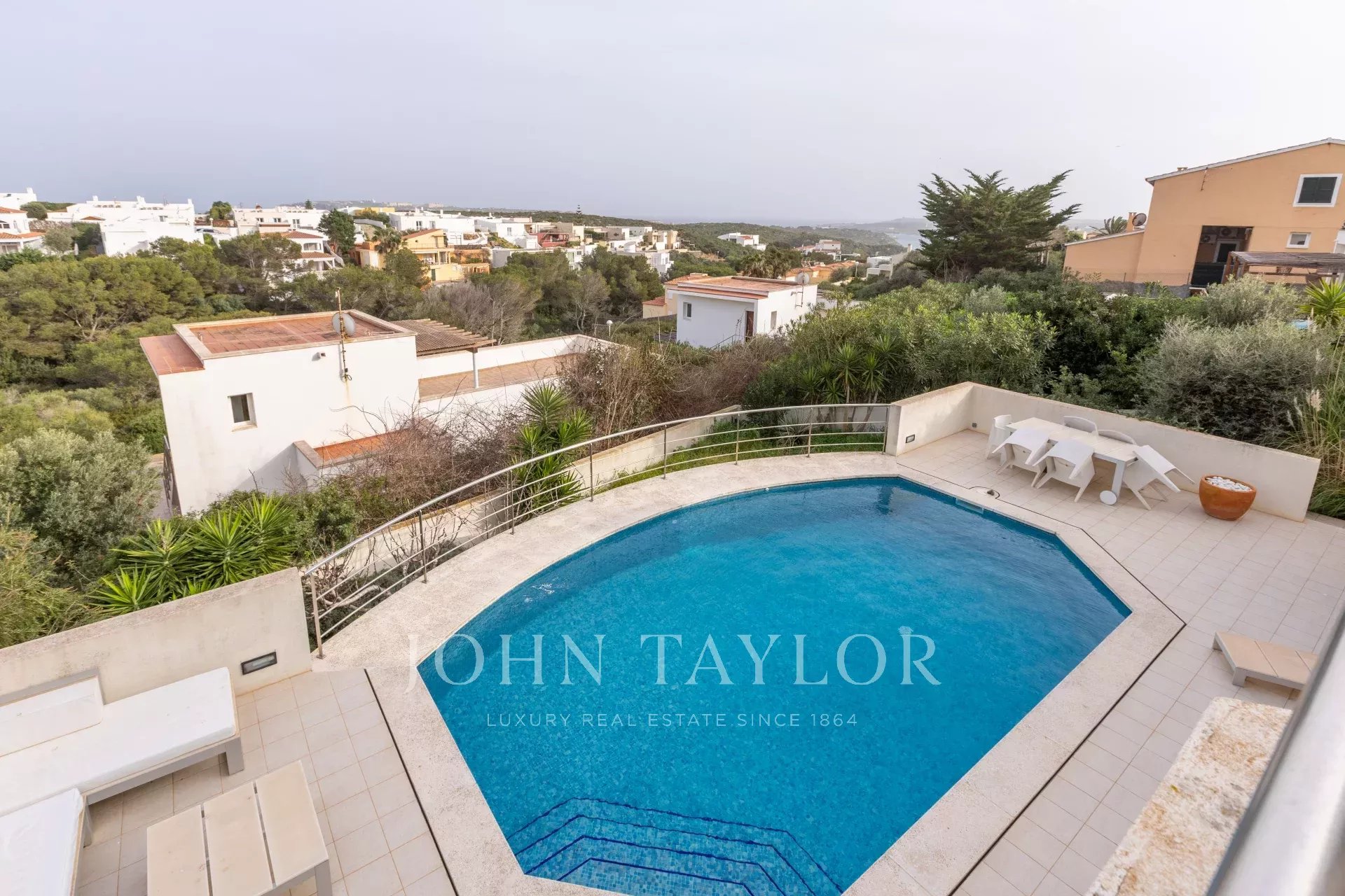 Ubicada en la prestigiosa urbanización de Cala Llonga, una de las zonas más exclusivas de Menorca, esta espectacular villa independiente ofrece privacidad, luminosidad y unas impresionantes vistas al mar desde todas sus terrazas, destacando la entrada de la ría y, desde la planta superior, la ciudad de Mahón.