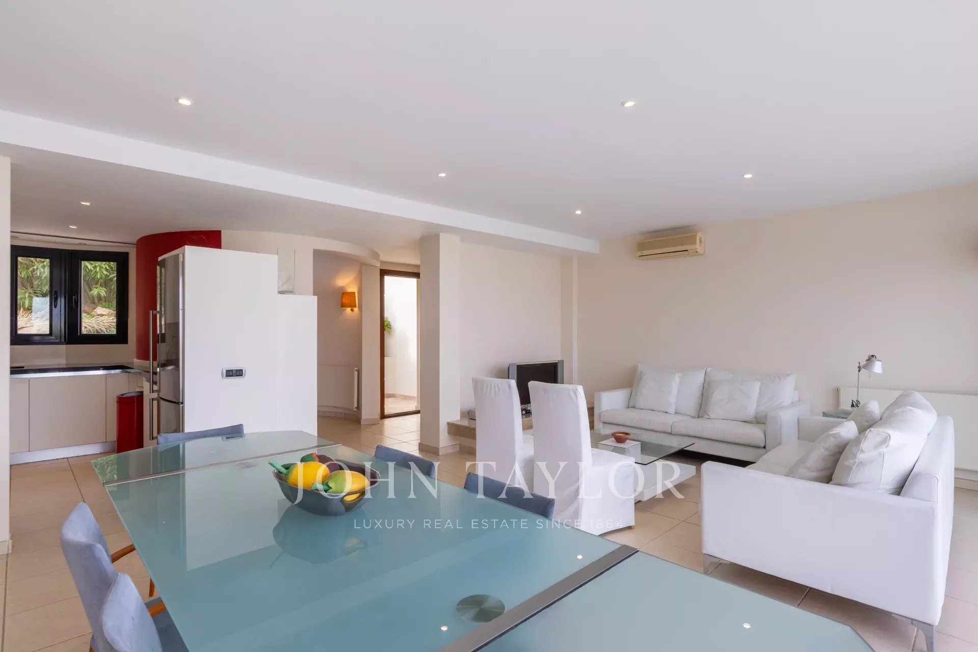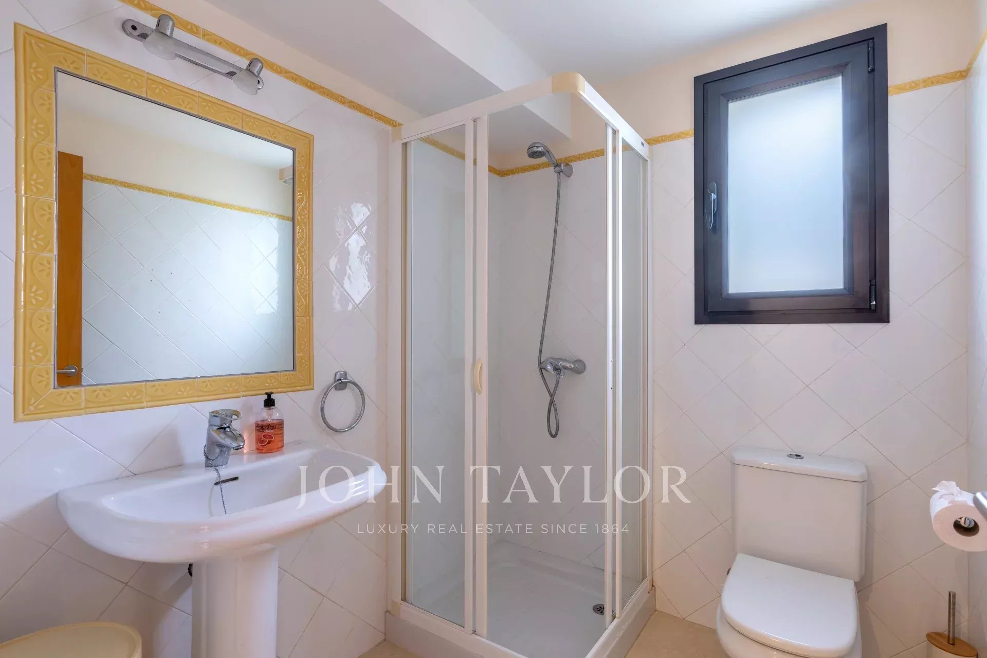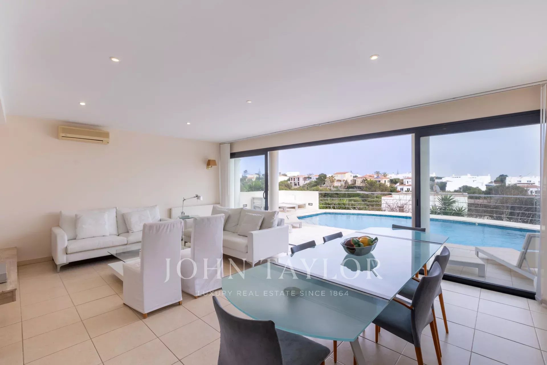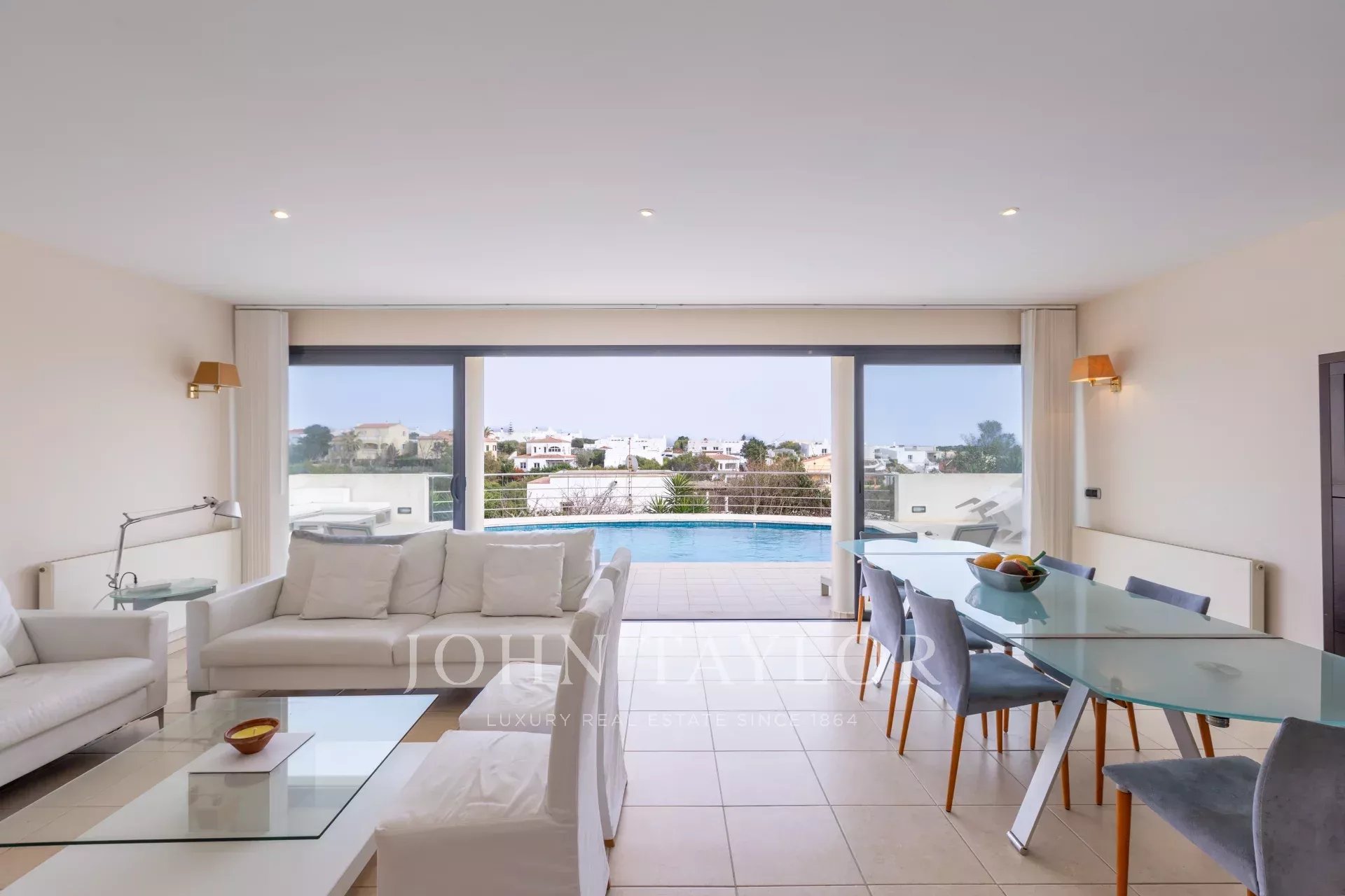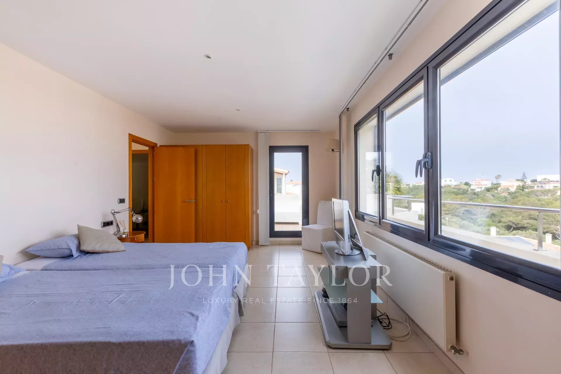 Ubicada en la prestigiosa urbanización de Cala Llonga, una de las zonas más exclusivas de Menorca, esta espectacular villa independiente ofrece privacidad, luminosidad y unas impresionantes vistas al mar desde todas sus terrazas, destacando la entrada de la ría y, desde la planta superior, la ciudad de Mahón.