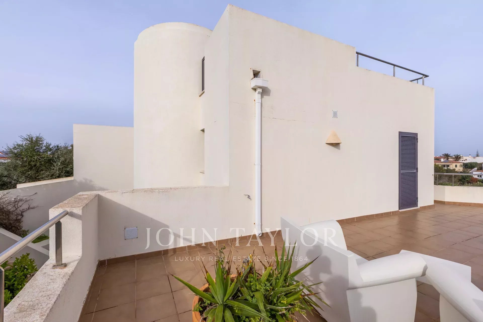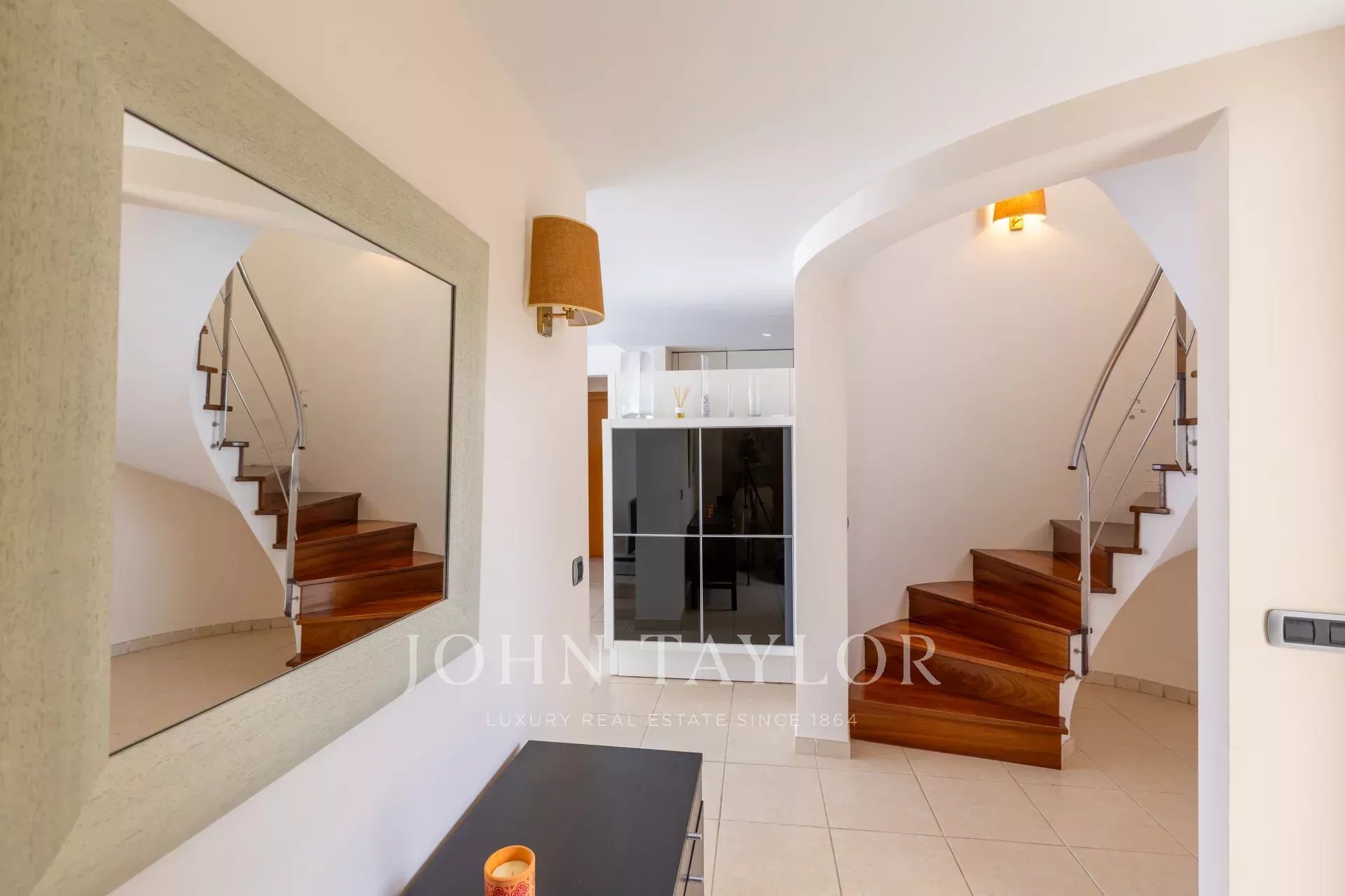 Una elegante escalera de caracol conduce a la planta superior, donde el dormitorio principal, amplio y exclusivo, se abre a una gran terraza con vistas privilegiadas.