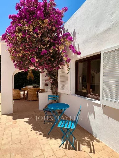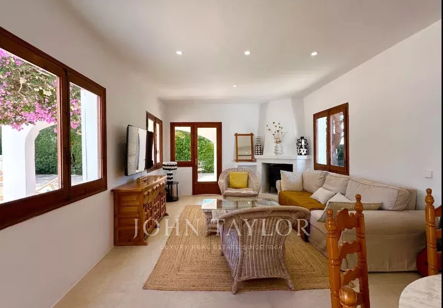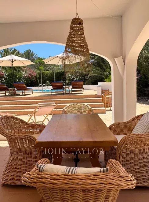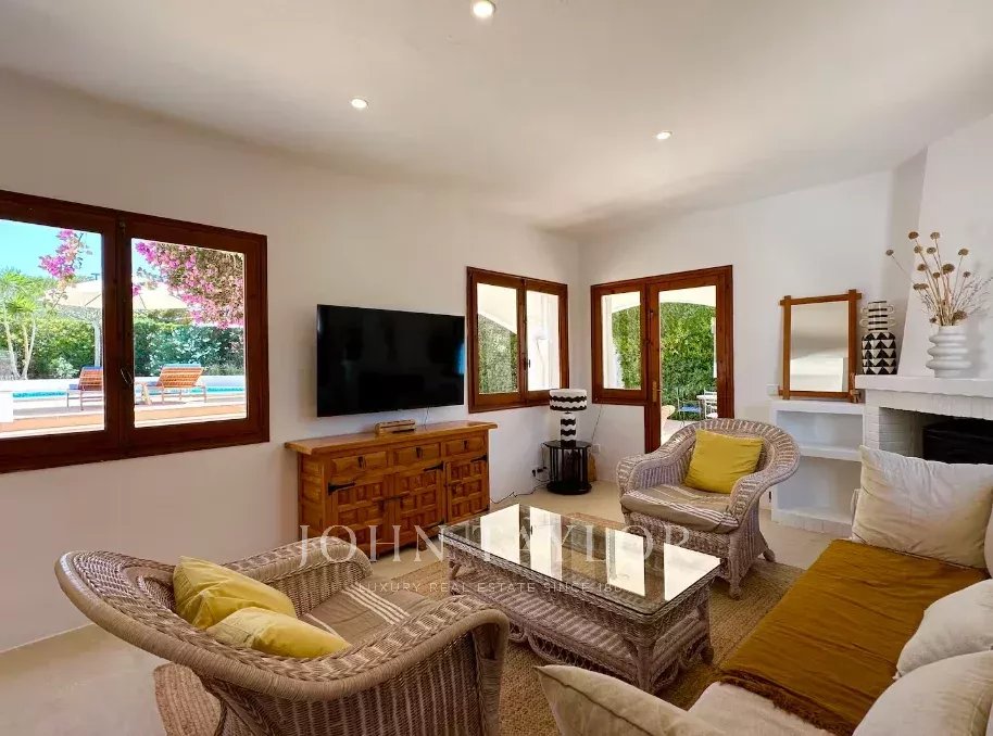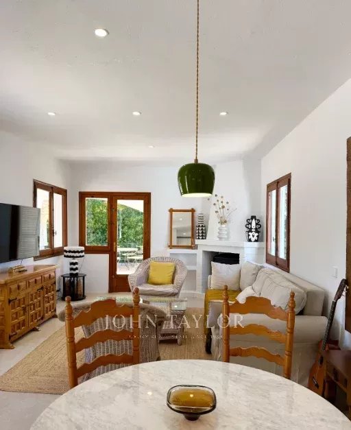 Ubicada a unos pocos minutos del pueblo de San Climent, esta propiedad con encanto cuenta con una entrada con puerta menorquina y aparcamiento exterior. La piscina, orientada al sur, disfruta del sol durante todo el día, rodeada de un jardín maduro de bajo mantenimiento que ofrece privacidad. En la parte trasera, se encuentra una terraza con barbacoa, un limonero y una zona cubierta para sombra, embellecida por buganvillas.