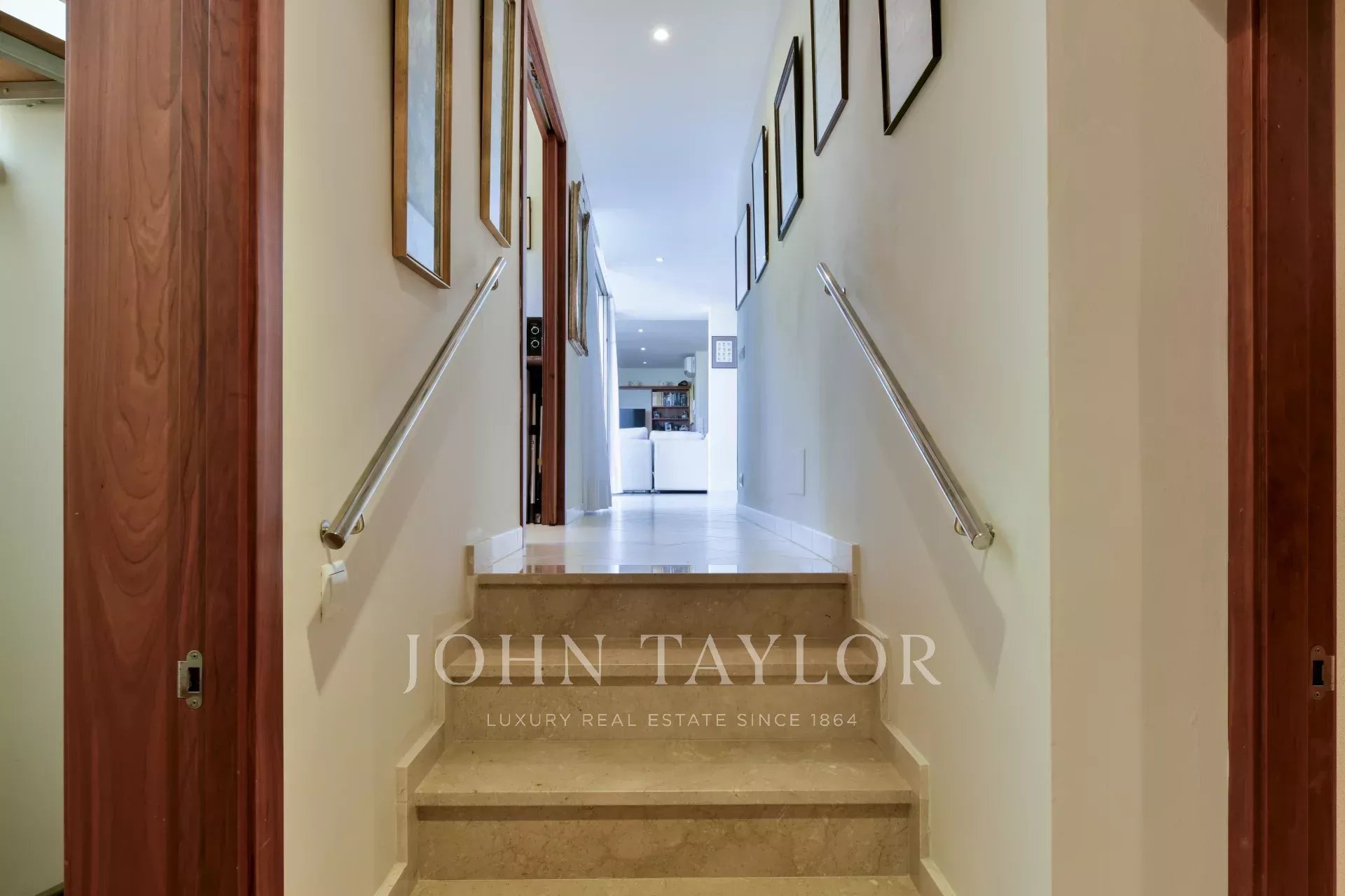 La planta inferior alberga un segundo salón de generosas dimensiones, con cocina auxiliar, espacio de oficina y la posibilidad de crear un dormitorio adicional. El sótano ofrece un gran potencial como gimnasio privado y cuenta ya con la preinstalación para una piscina interior. Un ascensor interior conecta todos los niveles, desde el garaje superior hasta las suites de invitados en la planta inferior.
