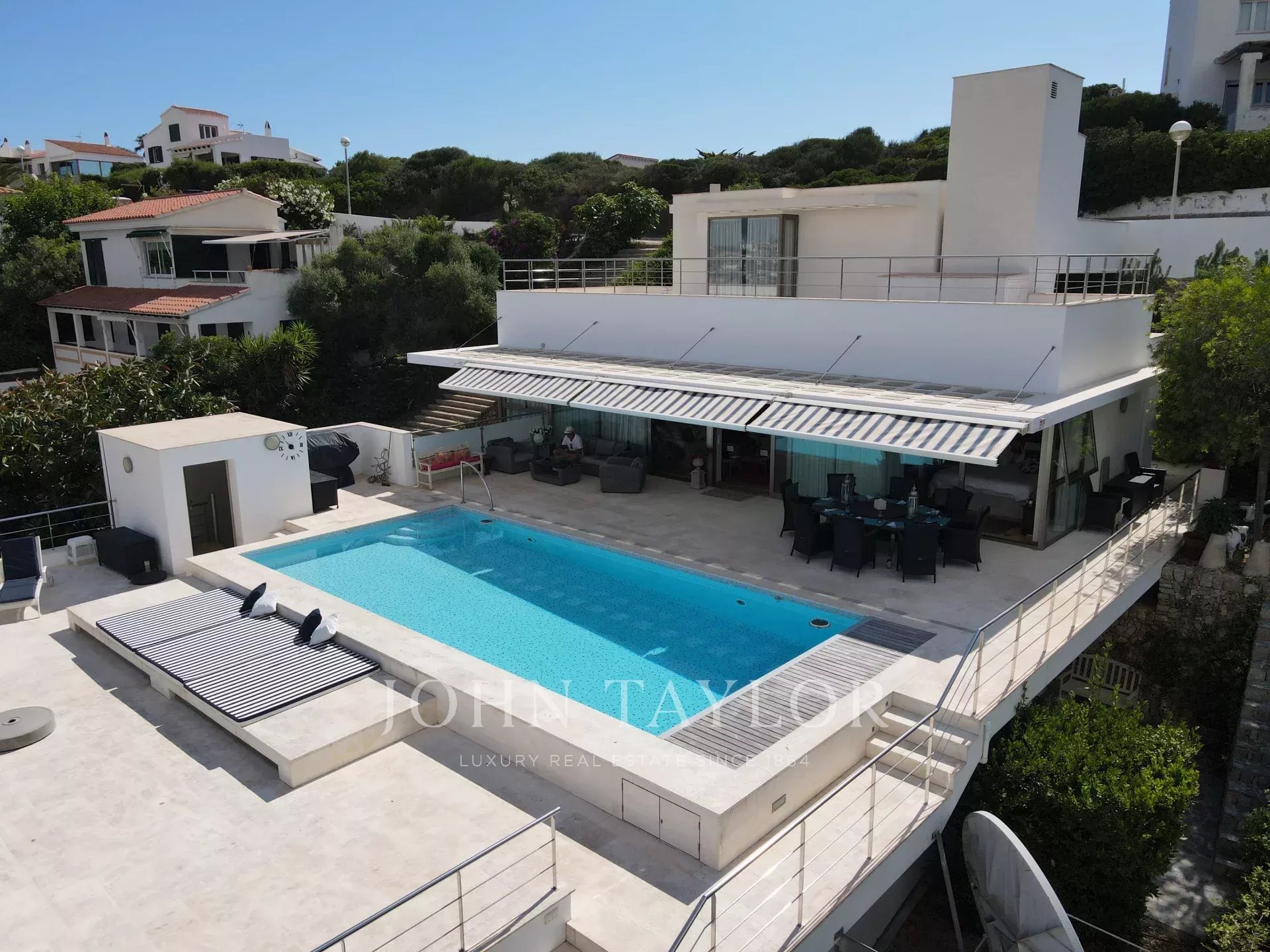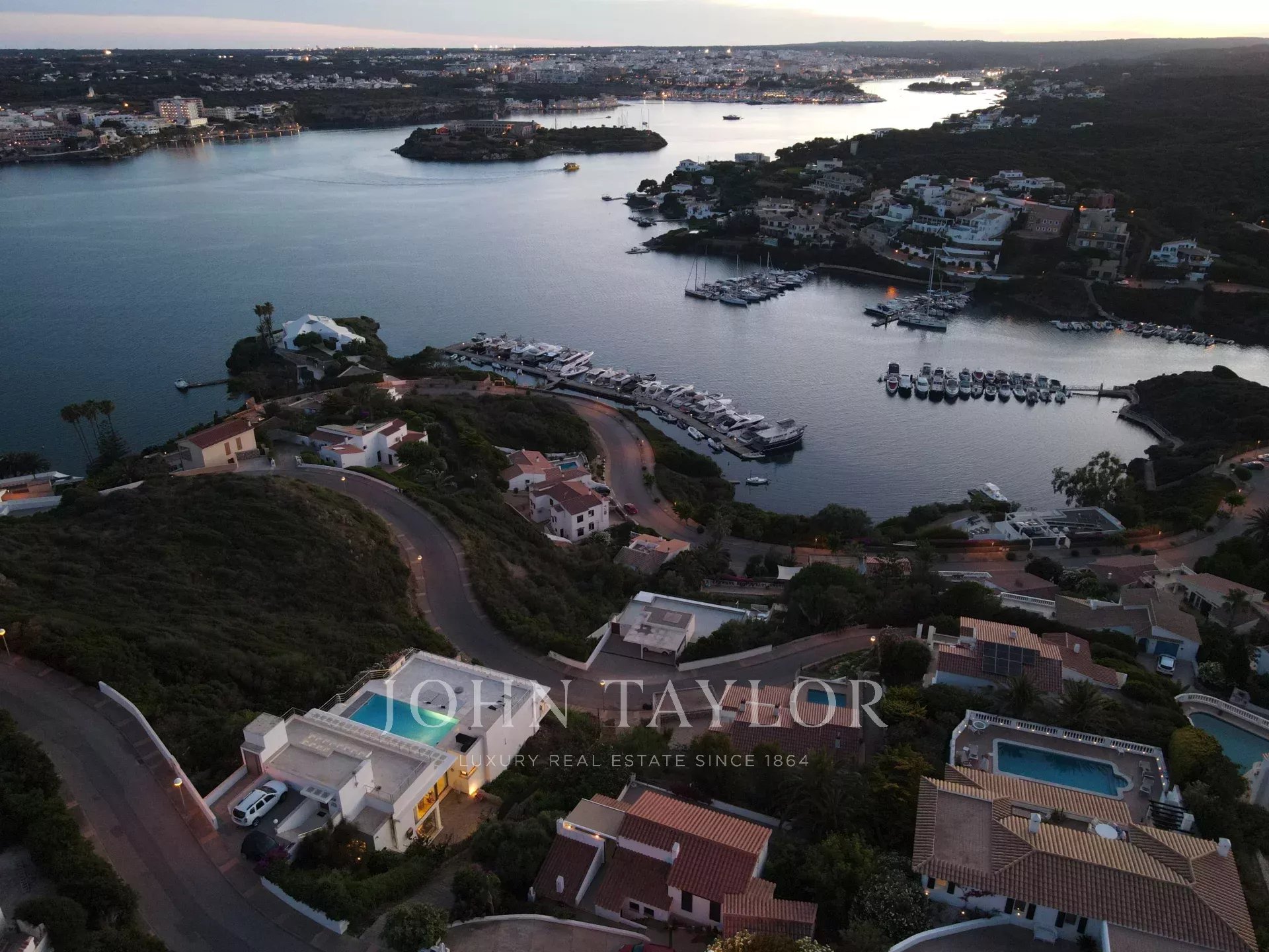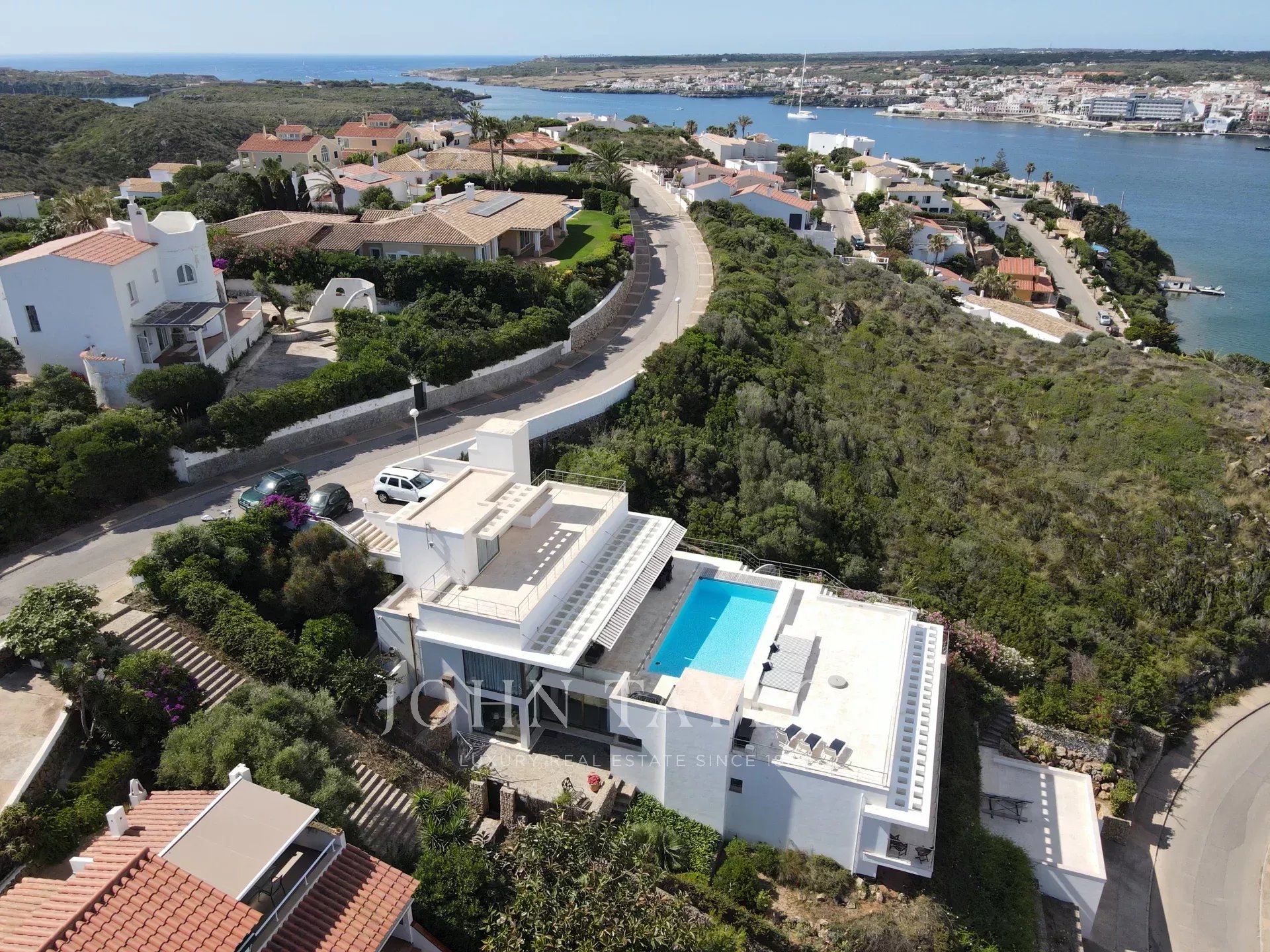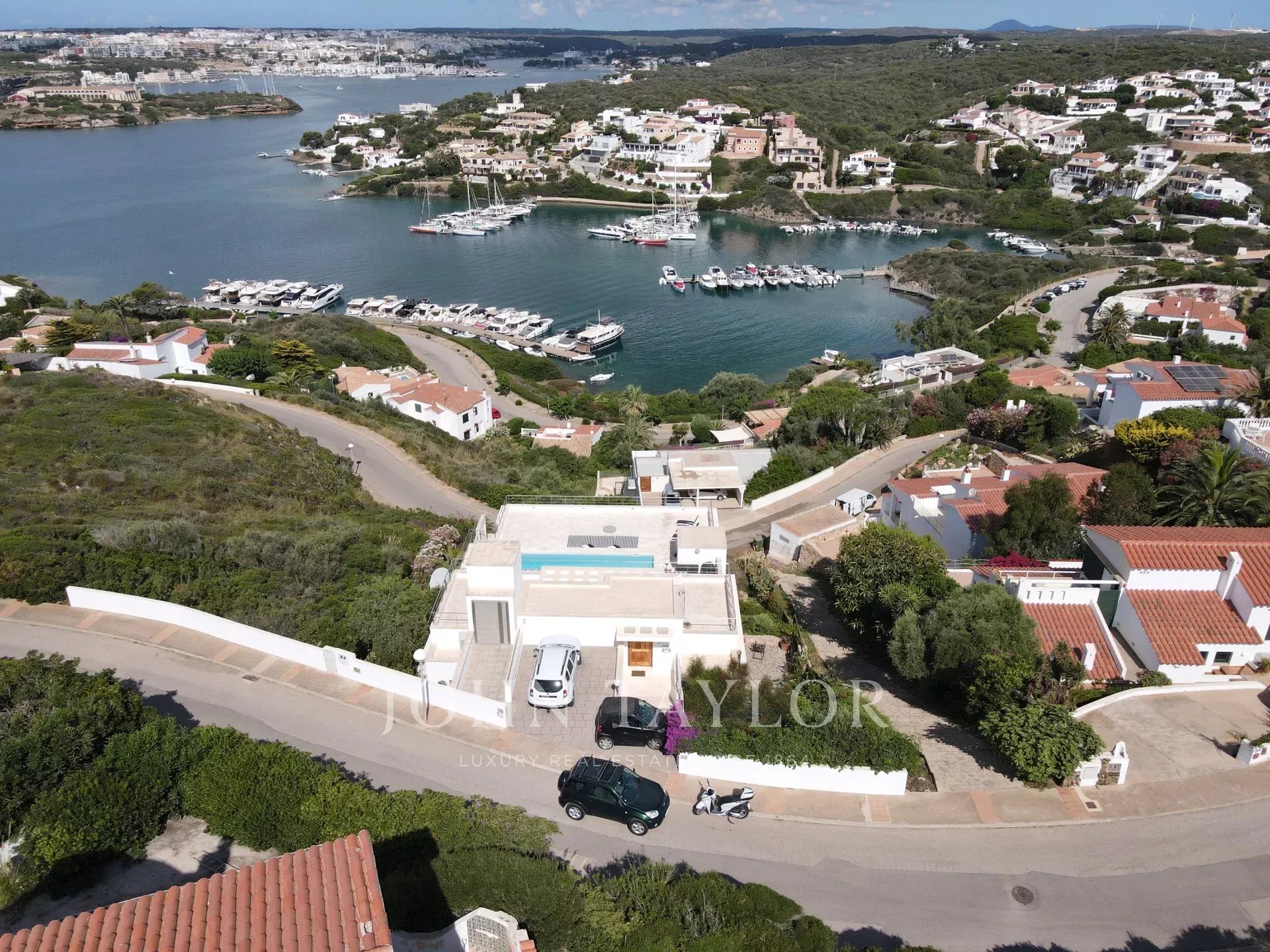 Situada en una de las zonas residenciales más exclusivas de la isla, esta propiedad se encuentra a tan solo 10 minutos de Mahón, 15 minutos del aeropuerto y muy cerca de la playa virgen de Cala Mesquida.