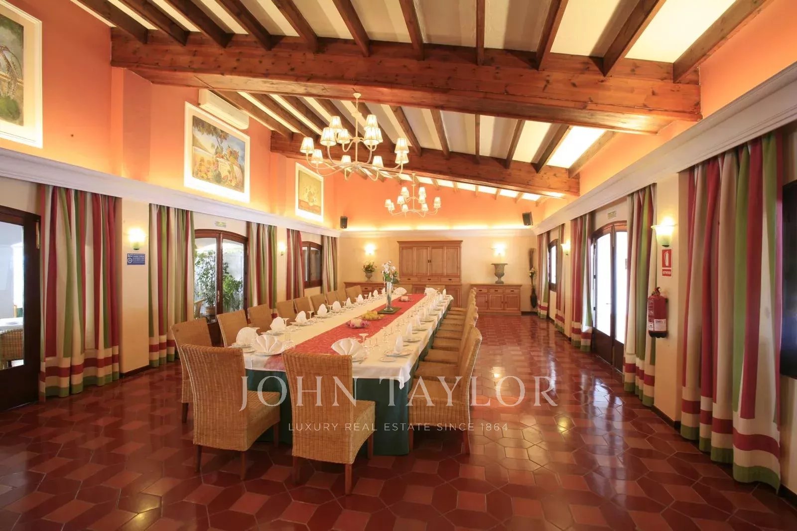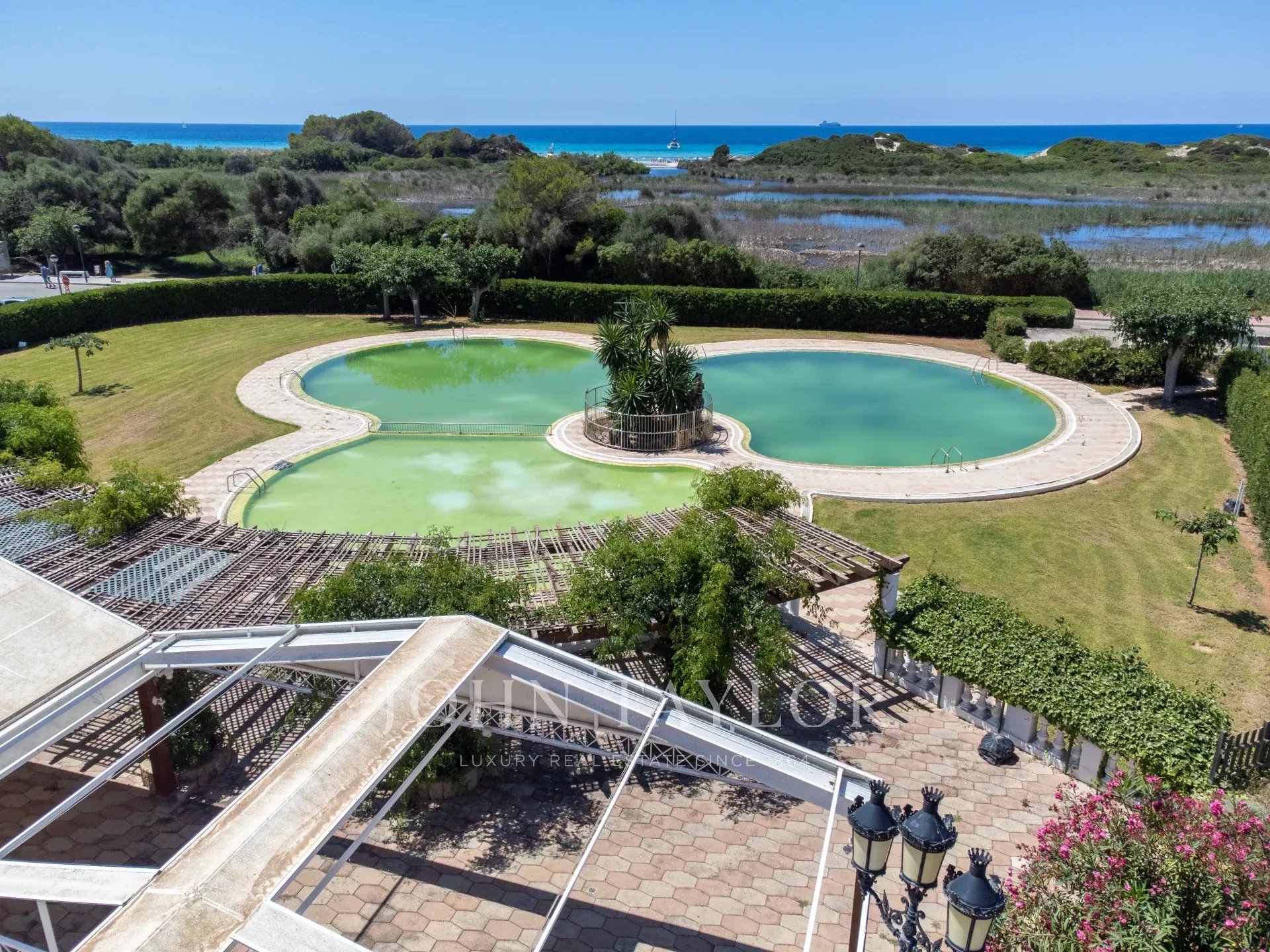 - Edificio principal : Restaurante, bar, cafetería y viviendas con una superficie construida de 1.771 m2 (dispone de dos viviendas, la principal para el gerente es una vivienda completa de tres dormitorios con vistas al mar y la segunda, dispone de siete dormitorios para empleados con dos cuartos de baño etc) y dispone de oficinas en el piso superior