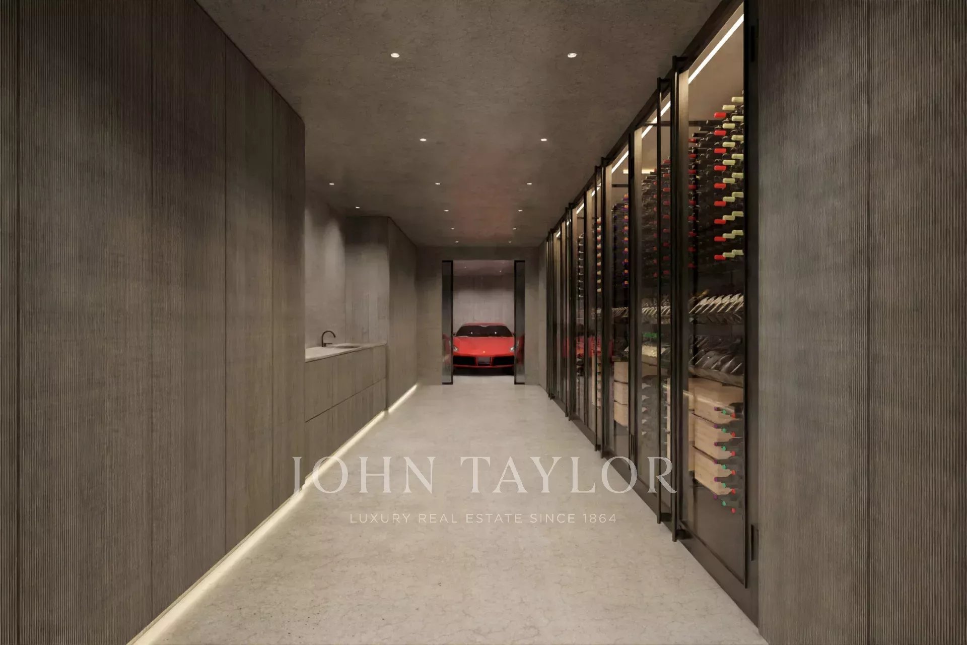 El sótano, con aproximadamente 320 m², incluye garaje para tres vehículos, una despensa, y una bodega. Este amplio espacio puede adaptarse a diferentes necesidades: desde un área de bienestar o una sala de cine privada, hasta un sexto dormitorio con baño en suite.