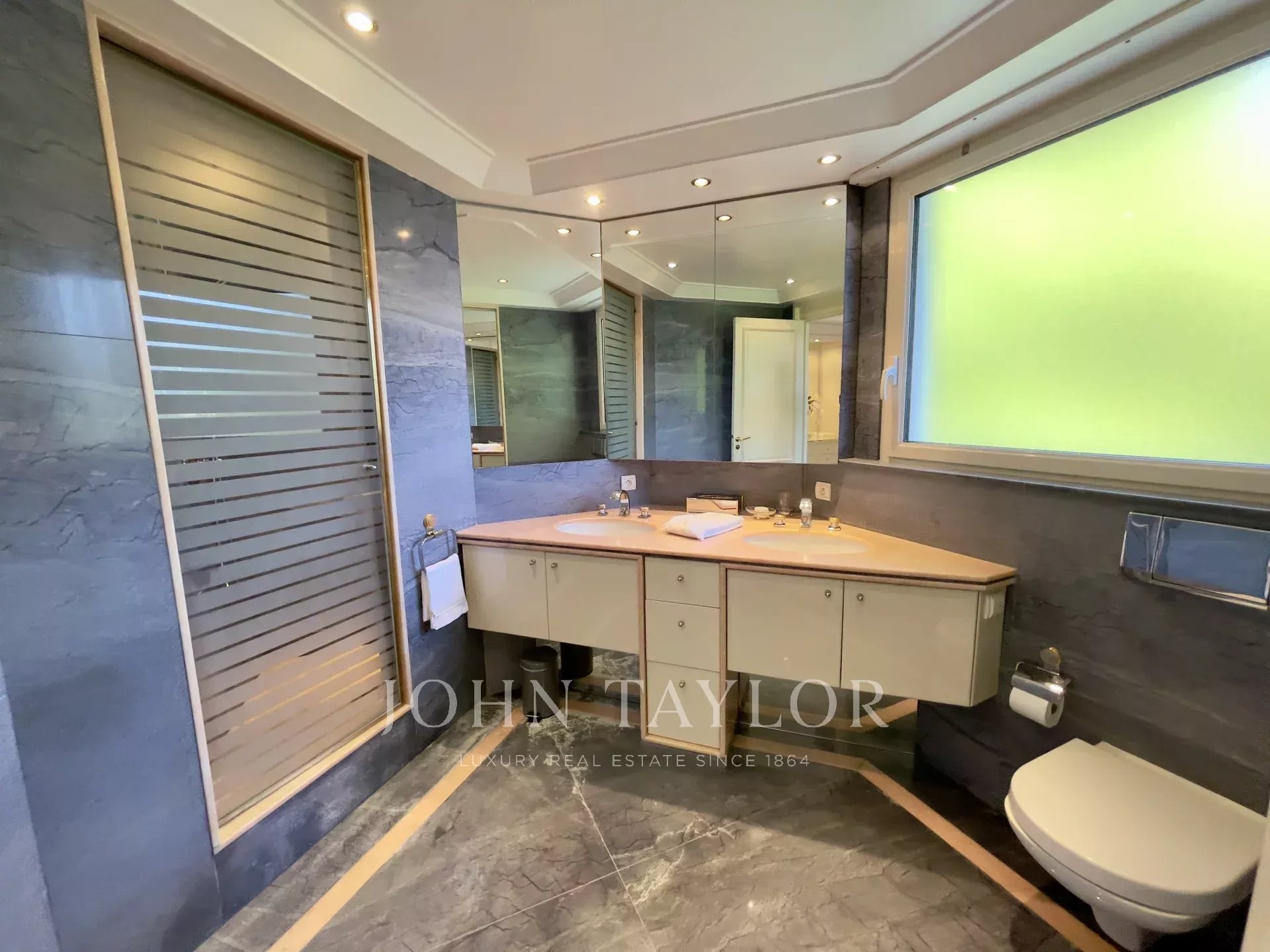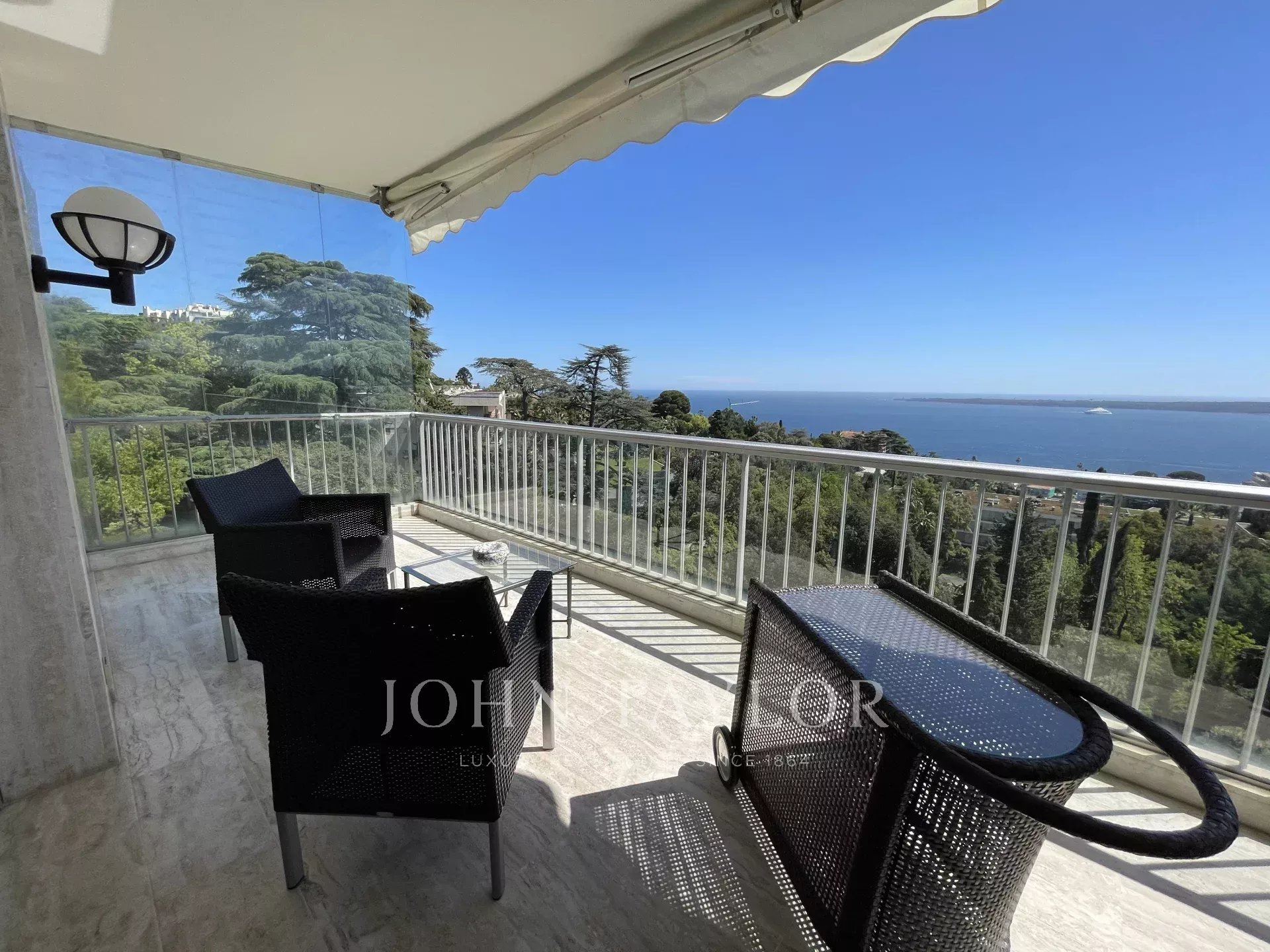 En el barrio de Californie, en una residencia de lujo con piscina, pista de tenis y parque catalogado, bonito piso climatizado con una superficie habitable de unos 151 m2, orientado al sur y que disfruta de vistas panorámicas al mar desde su terraza de 25 m2.