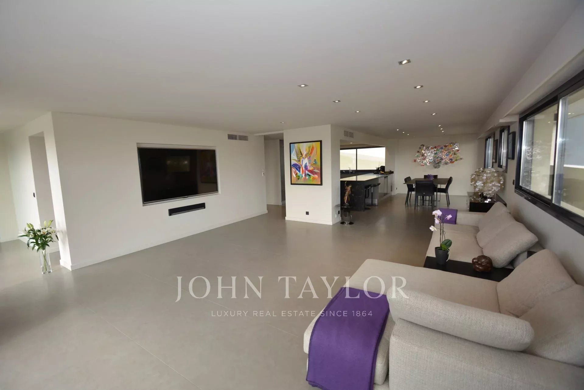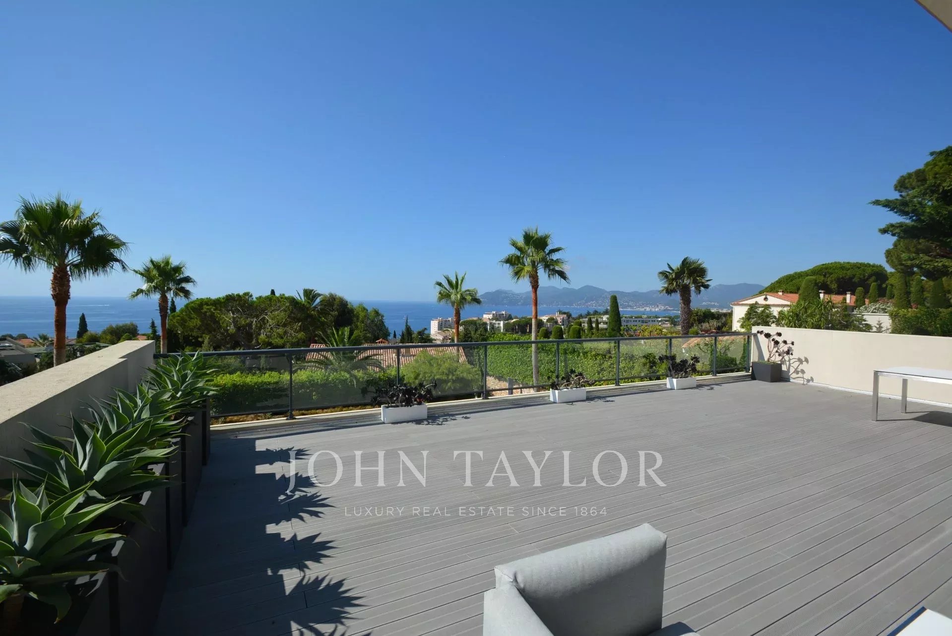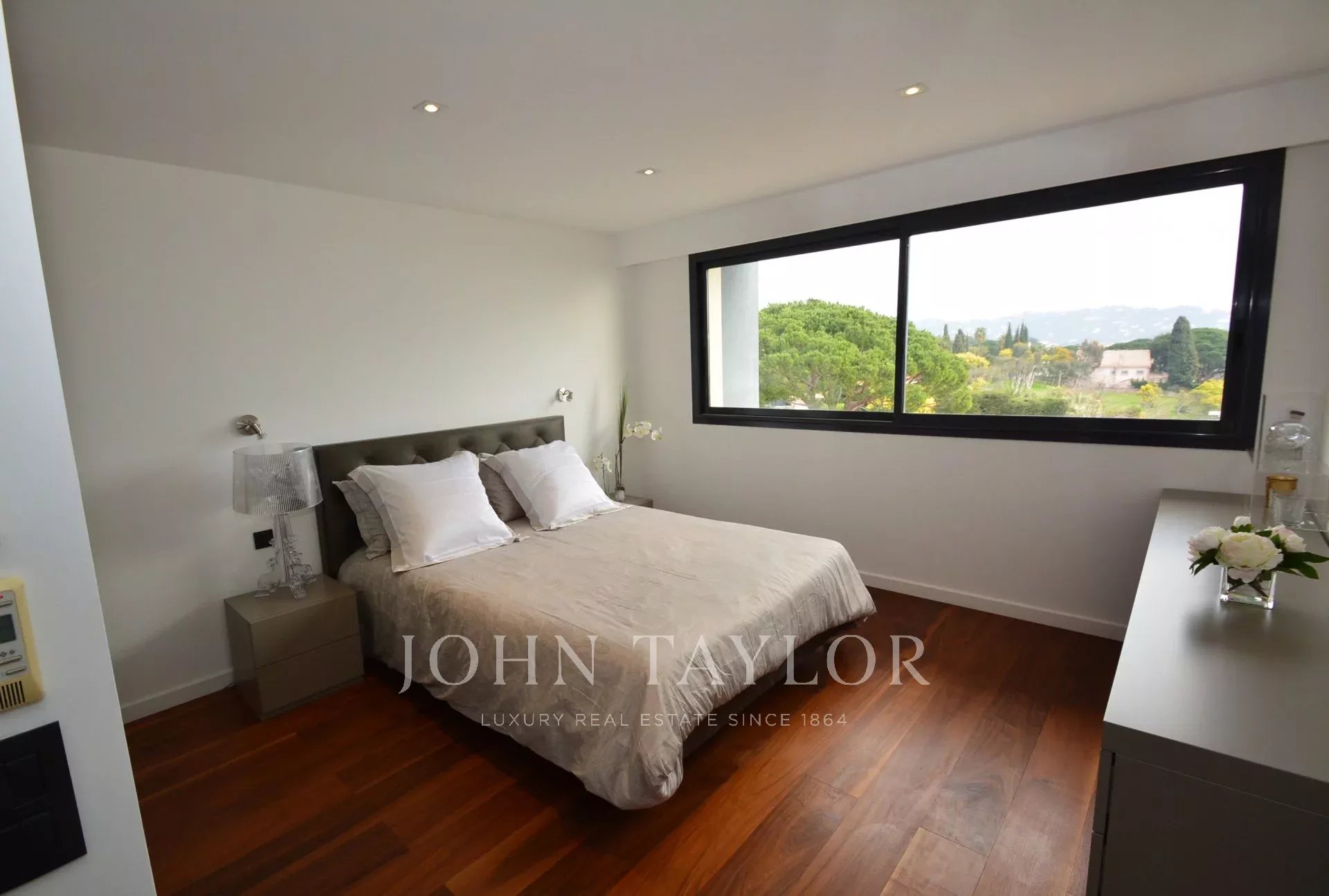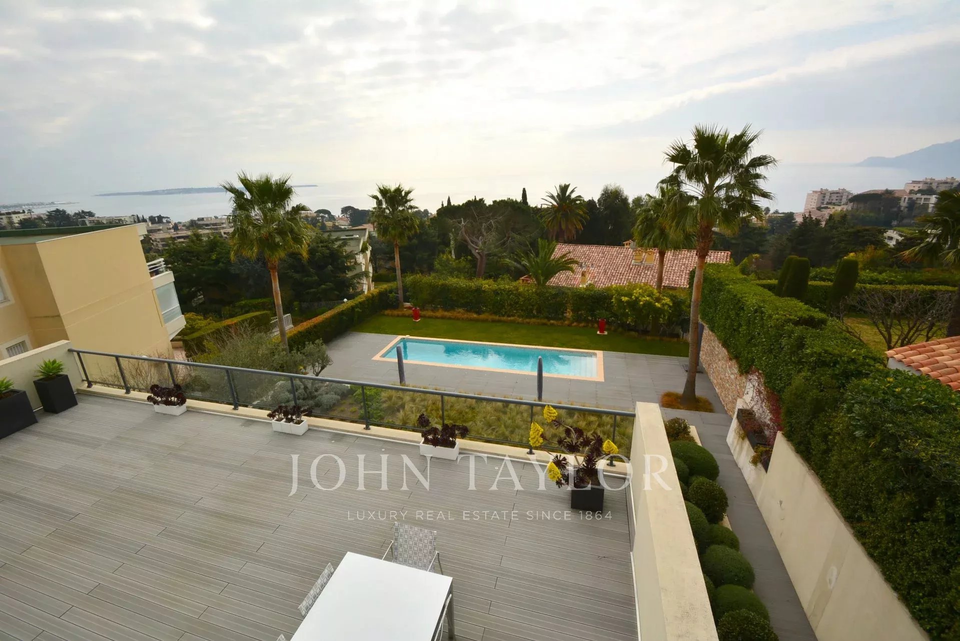 Barrio "CROIX DES GARDES", a diez minutos del centro de Cannes y del Palacio de Festivales, con una magnífica vista sobre la bahía de Cannes, las islas Lérins y el Estérel, piso totalmente climatizado en el último piso de una residencia de 3 pisos con jardín y piscina climatizada.