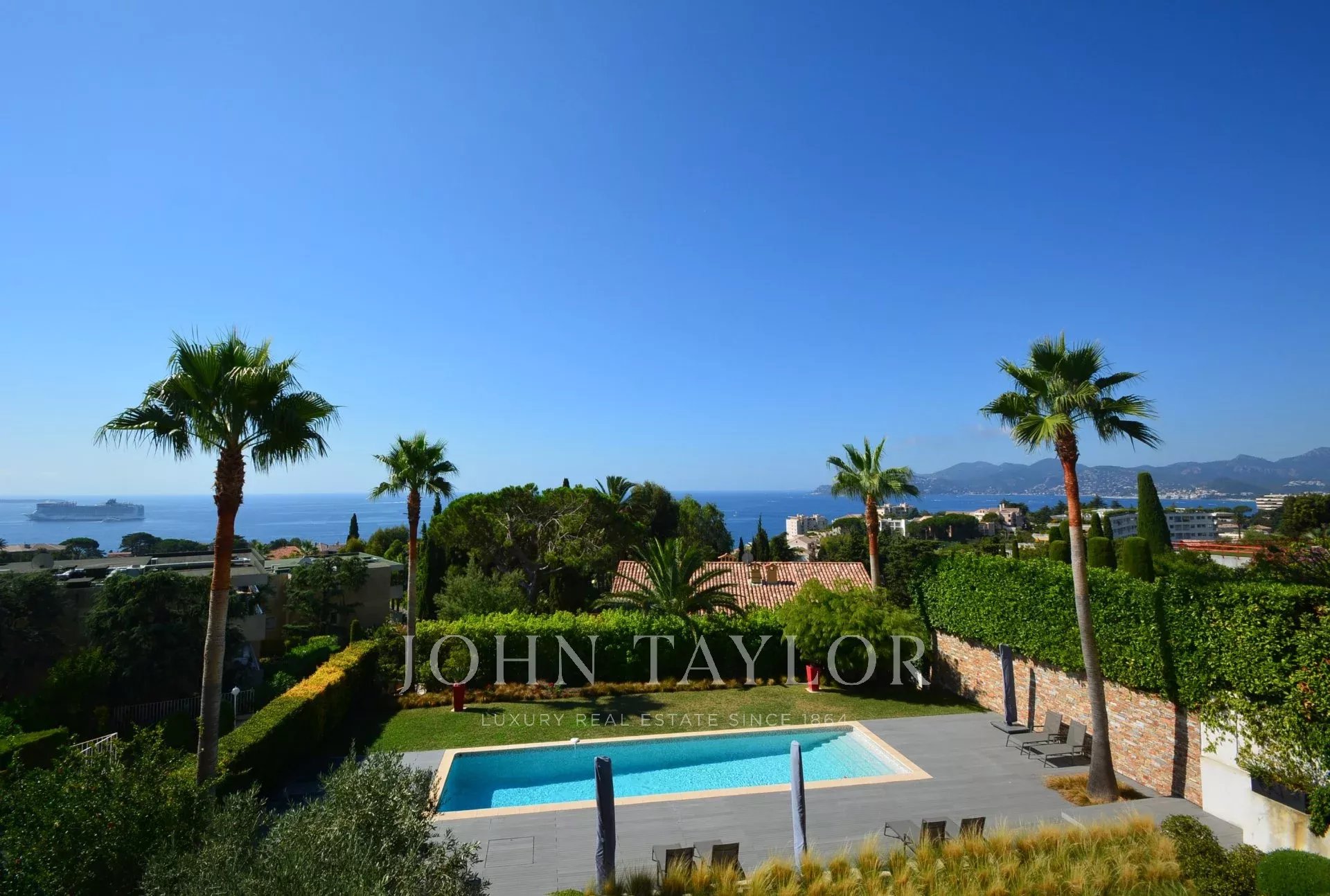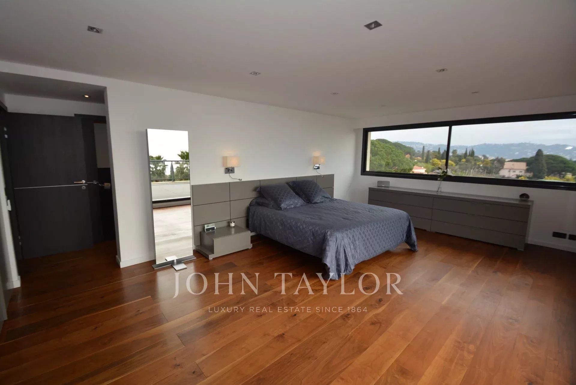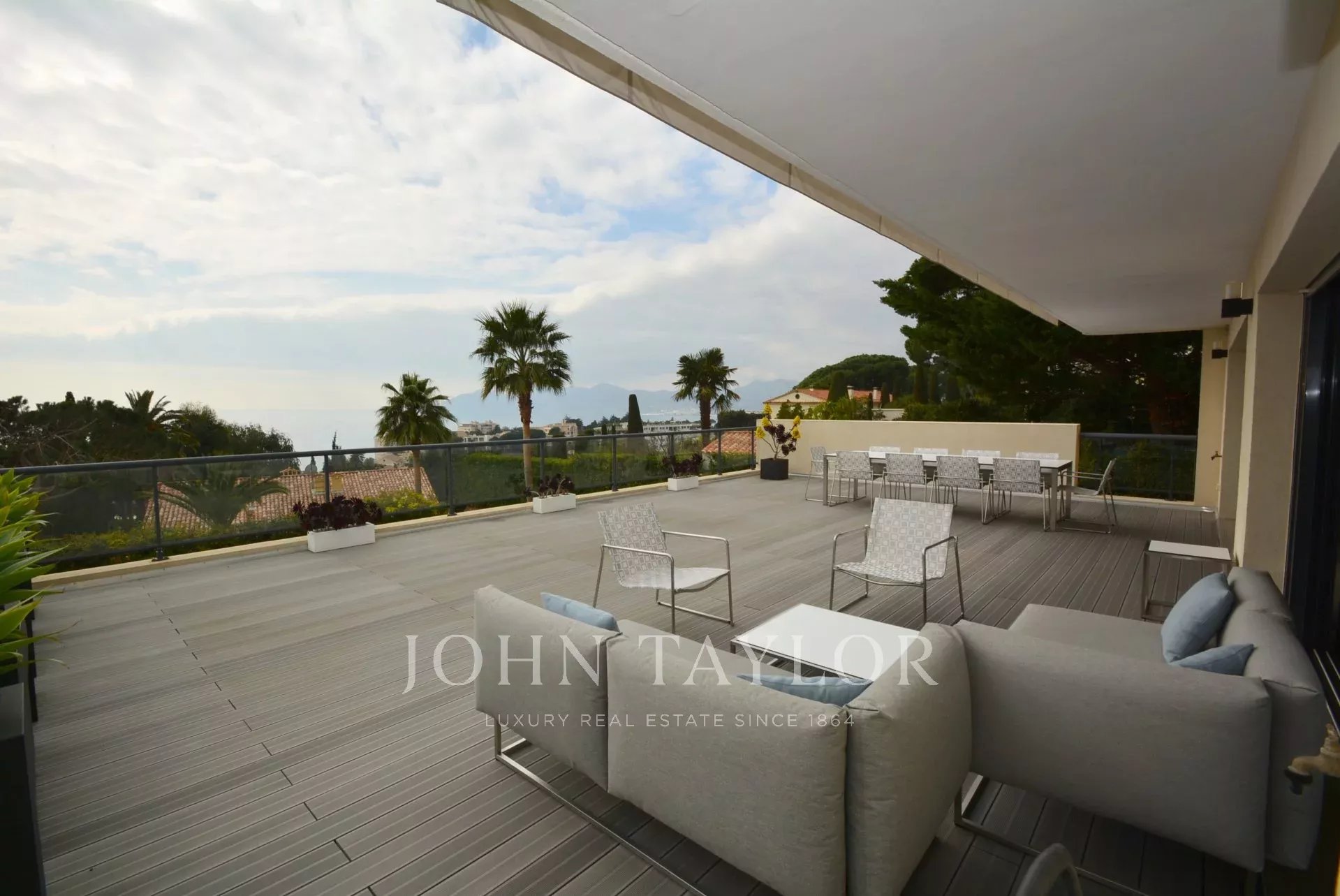 Barrio "CROIX DES GARDES", a diez minutos del centro de Cannes y del Palacio de Festivales, con una magnífica vista sobre la bahía de Cannes, las islas Lérins y el Estérel, piso totalmente climatizado en el último piso de una residencia de 3 pisos con jardín y piscina climatizada.